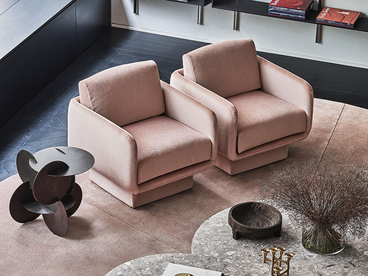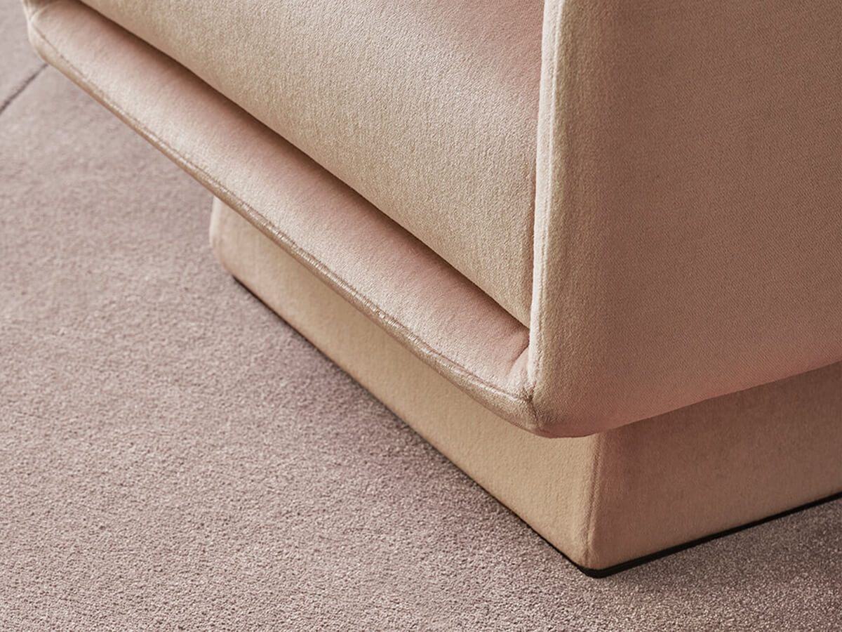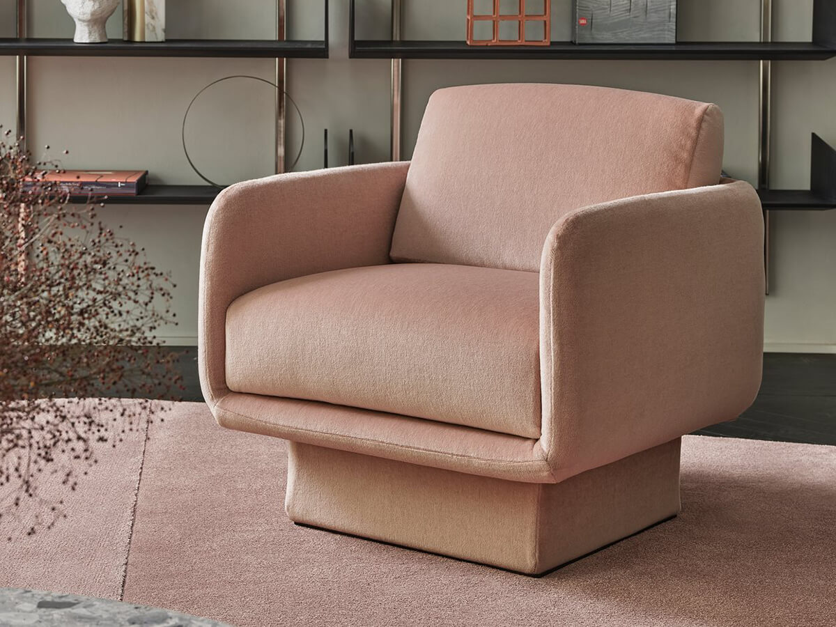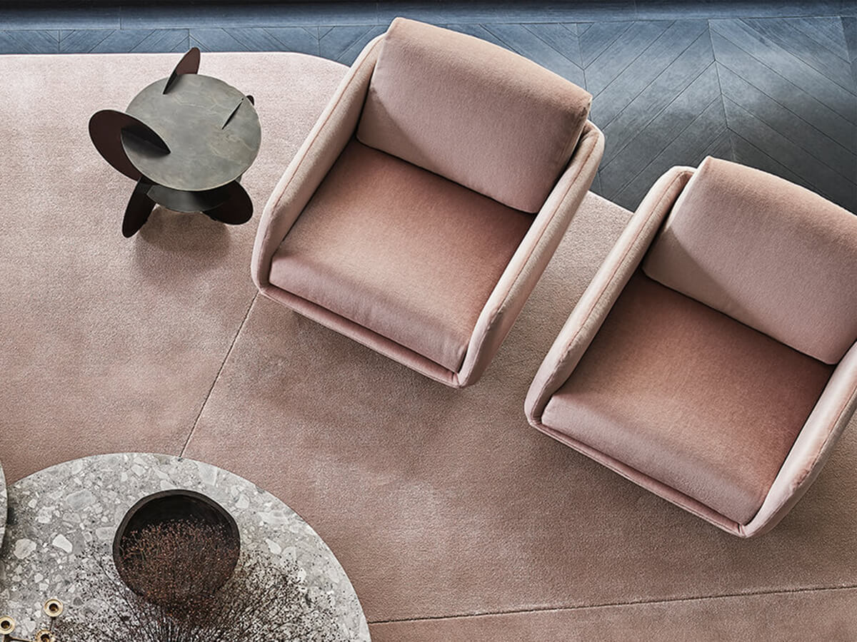 La poltrona Lilas di Gallotti&Radice è caratterizzata da proporzioni generose e da una seduta ampia e accogliente. Dal profilo geometrico e rigorosamente squadrato, ma ingentilito dall’assenza di spigoli e dalle rotondità dei profili, si propone come una seduta-passepartout adatta sia a signorili contesti domestici che a un uso contract in lounge e sale d’attesa. L’anima interna in legno è resa più soffice dall’imbottitura in poliuretano indeformabile e fibra di poliestere ignifughi, mentre per rendere più confortevoli la seduta e lo schienale viene usato del poliuretano a densità differenziate. Il rivestimento è completamente sfoderabile e ricopre l’intera poltroncina, basamento compreso. È realizzabile sia in tessuto che in pelle. La base può essere fissa oppure girevole, con un movimento con ritorno che arriva fino a 180°.