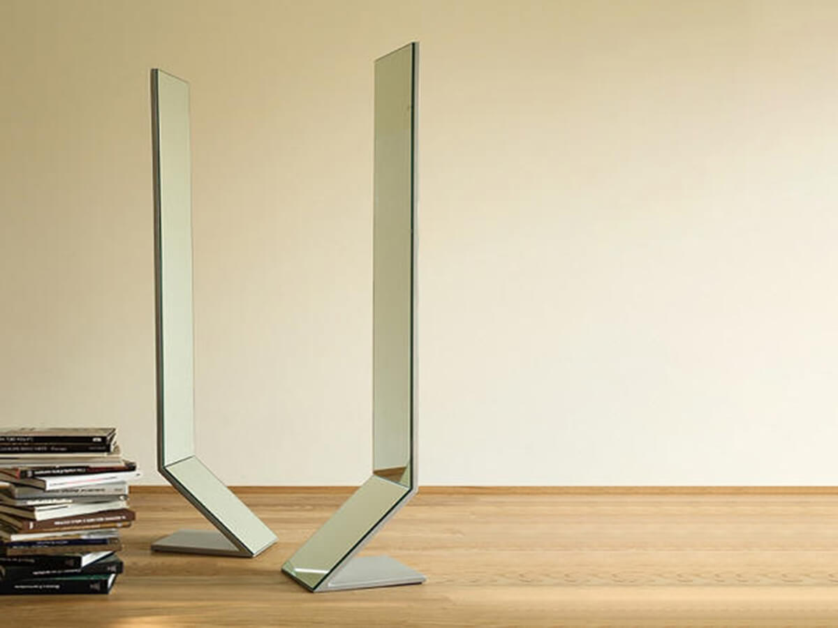 Zed è una specchiera da terra disegnata dal progettista italo-brasiliano Ricardo Bello Dias per Gallotti&Radice. Poggia su un’ingegnosa struttura autoportante in metallo piegato e verniciato nel colore Grigio Umbro. La superficie specchiante di Zed risulta quindi suddivisa in due lastre connesse da un angolo ottuso, una alta e perfettamente perpendicolare al pavimento, l’altra più piccola e agganciata obliquamente alla base. Lo specchio Zed assume così una forma plastica e imponente che ricorda alcune delle migliori creazioni della corrente artistica del De Stijl, come la celebre sedia Zig-Zag di Gerrit Thomas Rietveld, richiamata esplicitamente nella forma del sostegno.*Caratteristiche tecniche: specchio naturale con struttura in metallo verniciato grigio umbro