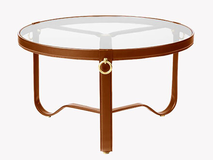 Il designer modernista Jacques Adnet progetta negli Anni ‘50 il tavolino Adnet, riproposto in chiave contemporanea da Gubi. Tre gambe in metallo, che si incontrano al centro del tavolino con un movimento morbido, sostengono un piano rotondo in vetro, disponibile in due dimensioni e caratterizzato da un bordo in pelle lavorata a mano ed arricchito con tre anelli in ottone dorato. Il design senza tempo e la cura dei particolari, uniti a materiali moderni e all’ottima fattura, aggiungono un valore distintivo a qualsiasi casa o spazio professionale.