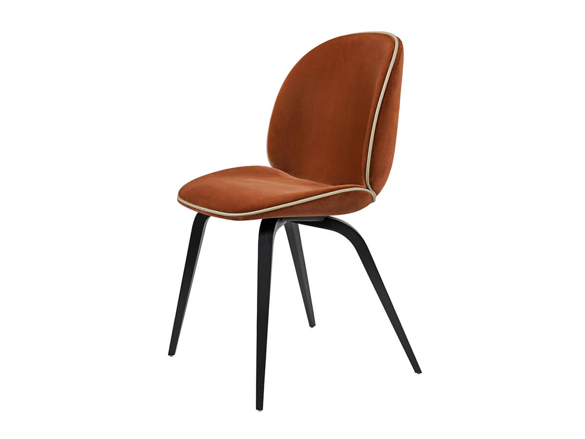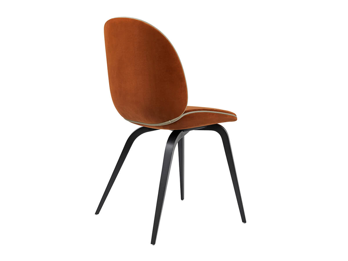 Dal genio artistico del duo Gamfratesi nasce Beetle, una sedia dal design fluido e accattivante, capace di attirarsi le simpatie di appassionati e non del genere per l’assoluta purezza delle forme. Beetle presenta una scocca interamente imbottita e rivestita in tessuto o pelle e base composta da gambe in metallo verniciato in diverse finiture. La bordatura è disponibile in diversi materiali, per meglio accostarsi alla gamma più che ricca di colorazioni a disposizione del cliente. La sedia si ispira al mondo dei coleotteri, richiamando nella forma l’apertura delle ali o il modo in cui questi insetti aprono le ali. Sedia e schienale sono separati, uniti da un raccordo in acciaio fresato nei due gusci.
