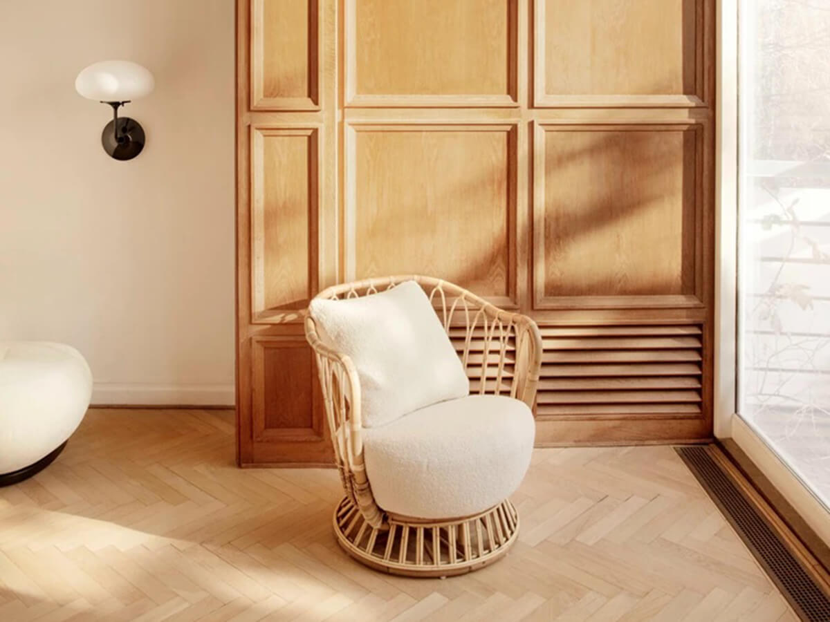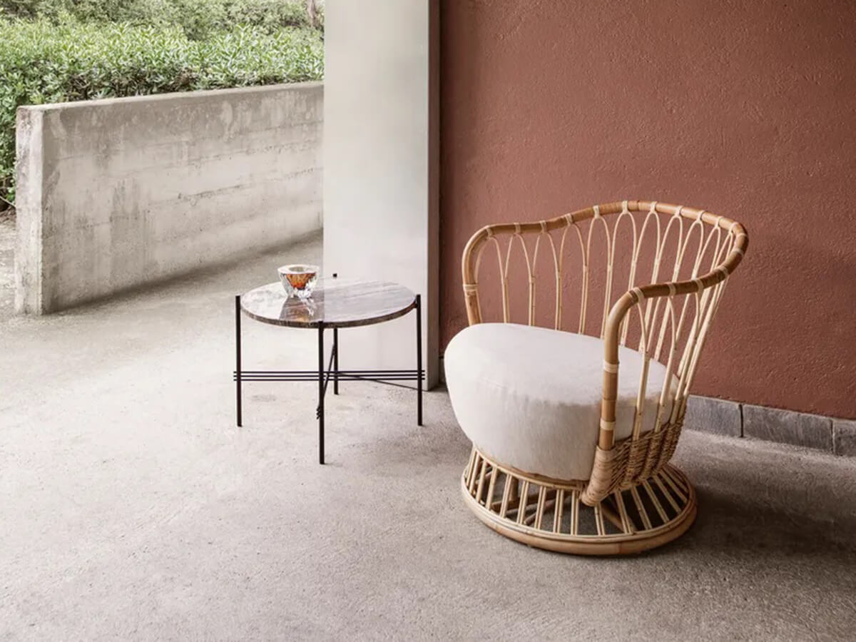 La poltrona Grace, progettata nel 1936 dalla designer Tove Kindt-Larsen e prodotta dal brand Gubi, è espressione del miglior design danese del secolo scorso. Una solida struttura in rattan con una base circolare sostiene una generosa seduta imbottita mentre lo schienale alto ed avvolgente è caratterizzato da una lavorazione a lunghi anelli di rattan con un motivo di intreccio alla base. Il comfort è assicurato da un comodo cuscino per lo schienale. L’aspetto vintage e il fascino senza tempo del materiale utilizzato, valorizzato dalla confezione artigianale, rendono la poltrona Grace facilmente inseribile in qualsiasi contesto sia in residenze private che in hotel di charme o anche in contesti lavorativi.