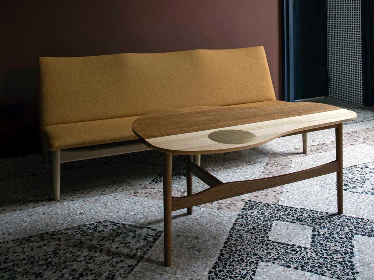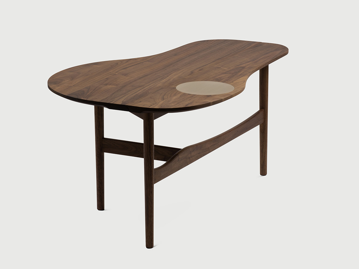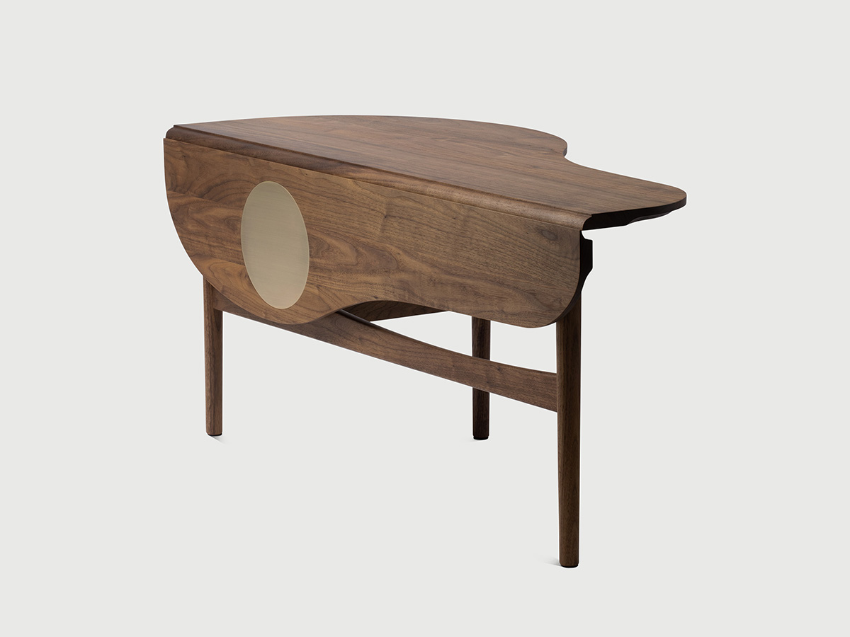 Il tavolino Butterfly di House of Finn Juhl è un complemento d’arredo dal tocco storico e retrò. Espressione di uno dei periodi più fecondi della creatività di Finn Juhl, quello in cui le sue creazioni dalle forme organiche e inusuali prendevano vita grazie al maestro ebanista Niels Vodder e contribuivano a stravolgere e innovare i canoni del design danese tradizionale, il tavolino Butterfly venne presentato nel 1949. Il piano, sagomato in una forma irregolare che ricorda quella di una farfalla, presenta su un lato un grande inserto circolare in ottone con funzioni decorative. Un’ala del tavolino può essere piegata per ridurre il suo ingombro. Inusuale ma stabile anche il suo sostegno, con tre sottili gambe irrobustite da due solidi traversi.