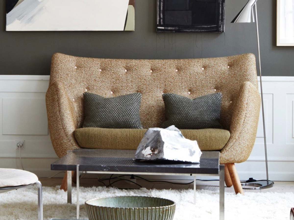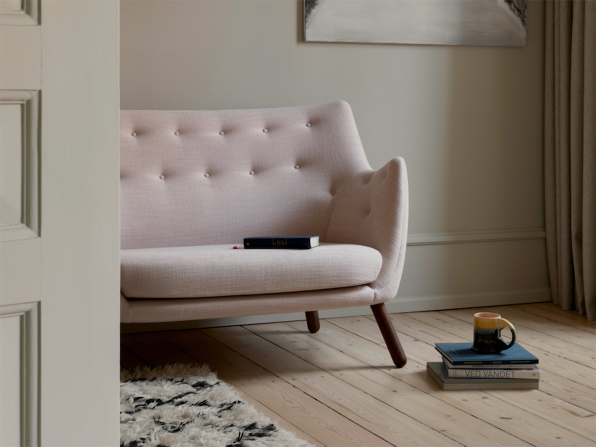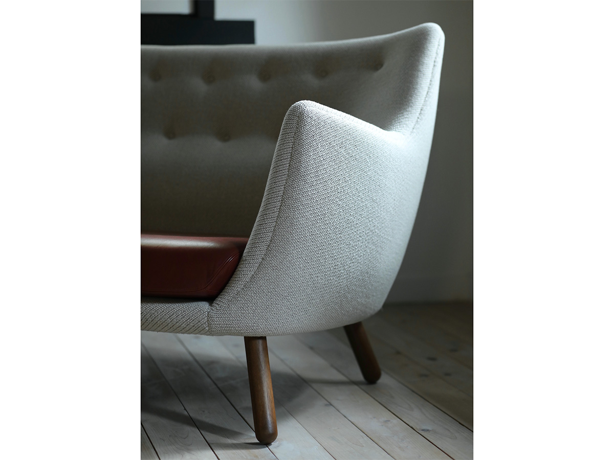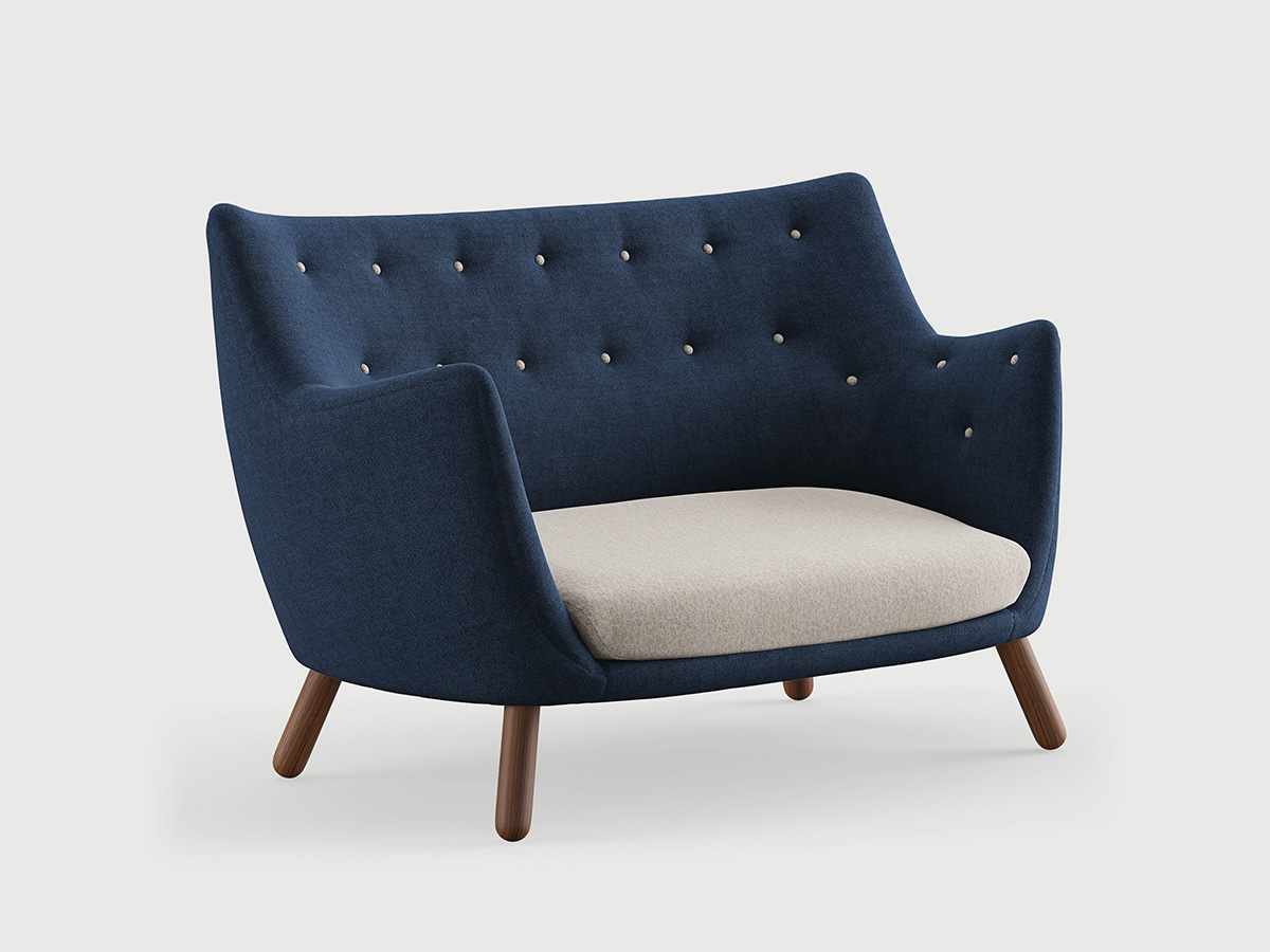 Il divanetto Poet Sofa di House of Finn Juhl, col suo aspetto che appare oggi delicatamente retrò, è una delle creazioni più importanti del grande design danese. Venne disegnato da Finn Juhl nel 1941 ed era originariamente pensato per essere posizionato nella casa del designer, che per le sue forme trasse ispirazione dall’arte surrealista. In questo divanetto, perfetto anche per salotti di piccole dimensioni, si ritrovano diversi elementi ricorrenti della poetica di Finn Juhl: curve avvolgenti, piccoli ma robusti piedini in legno inclinati, bottoncini di fissaggio del rivestimento enfatizzati fino a diventare un elemento decorativo. Curiosa è la storia di come il Poet Sofa prese il suo nome: un collaboratore di Finn Juhl, il grande ebanista Niels Vodder, decise di regalarne un esemplare alla figlia, che era sposata con il famoso poeta Frank Jæger. Jæger fu usato come ispirazione di una fortunata striscia umoristica pubblicata su un importante quotidiano, realizzata dal fumettista Jørgen Mogensen, suo caro amico, che lo ritraeva spesso sul suo divano di Finn Juhl, le cui forme divennero così immediatamente riconoscibili al grande pubblico.