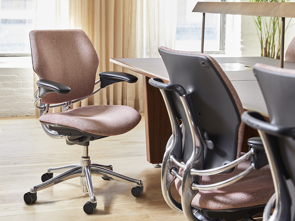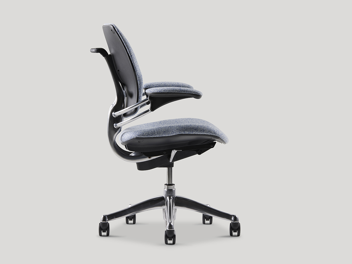 Una seduta priva di leve, manopole e altri meccanismi che potrebbero infastidire non solo lo sguardo, ma anche il suo utilizzo nella quotidianità. La linea di Freedom predilige un sostegno ergonomico basato sulla pura fisica mista a uno spiccato senso di eleganza che contraddistingue tutti i prodotti di Humanscale. Ogni parte di questa poltrona nasce per accogliere con apparente semplicità il corpo, offrendo un valido sostegno durante le ore di lavoro nel caso in cui si scelga di collocarlo all’interno dell’ufficio, di uno studio o di spazi home office. Ogni modello si adatta ai punti di pressione individuali, stimolando un movimento salubre per tutto il giorno. I braccioli sono fissati al retro della poltrona e si muovono in sincro con il corpo nelle fasi di appoggio e sollevamento.