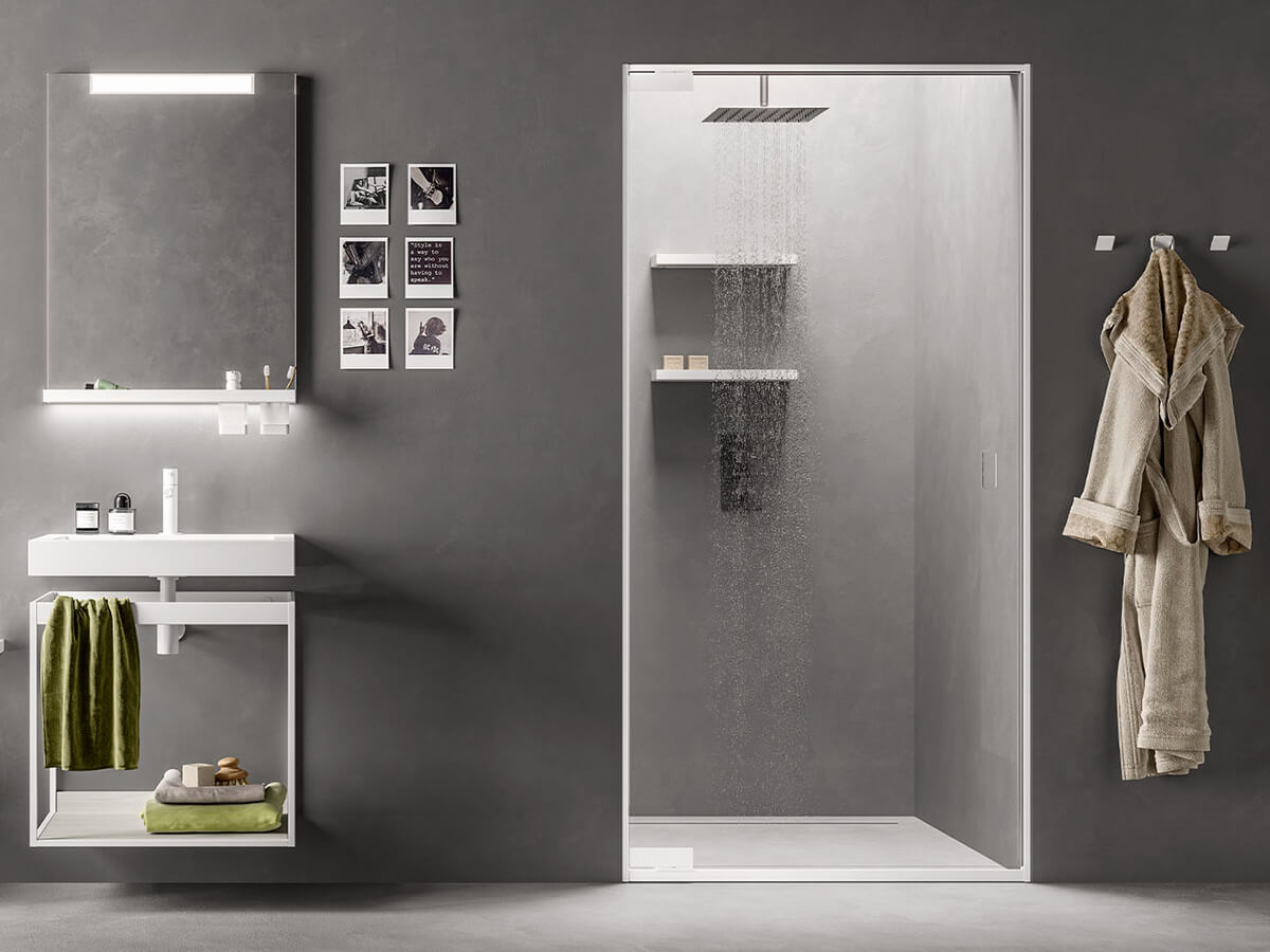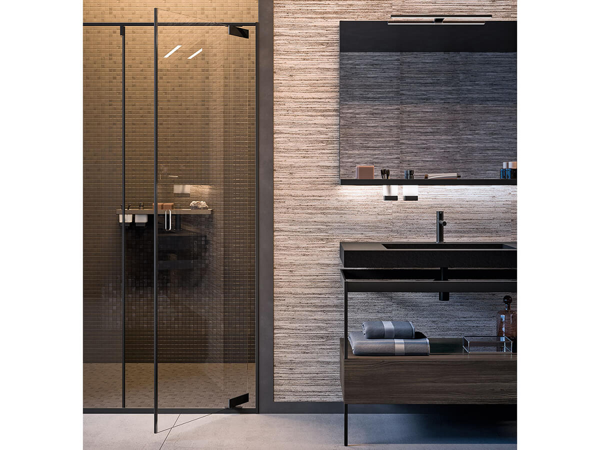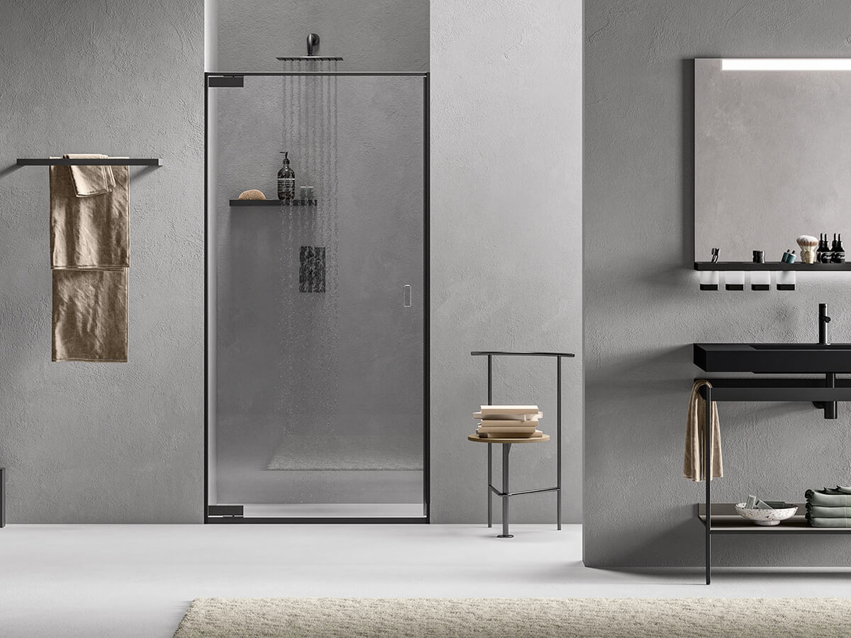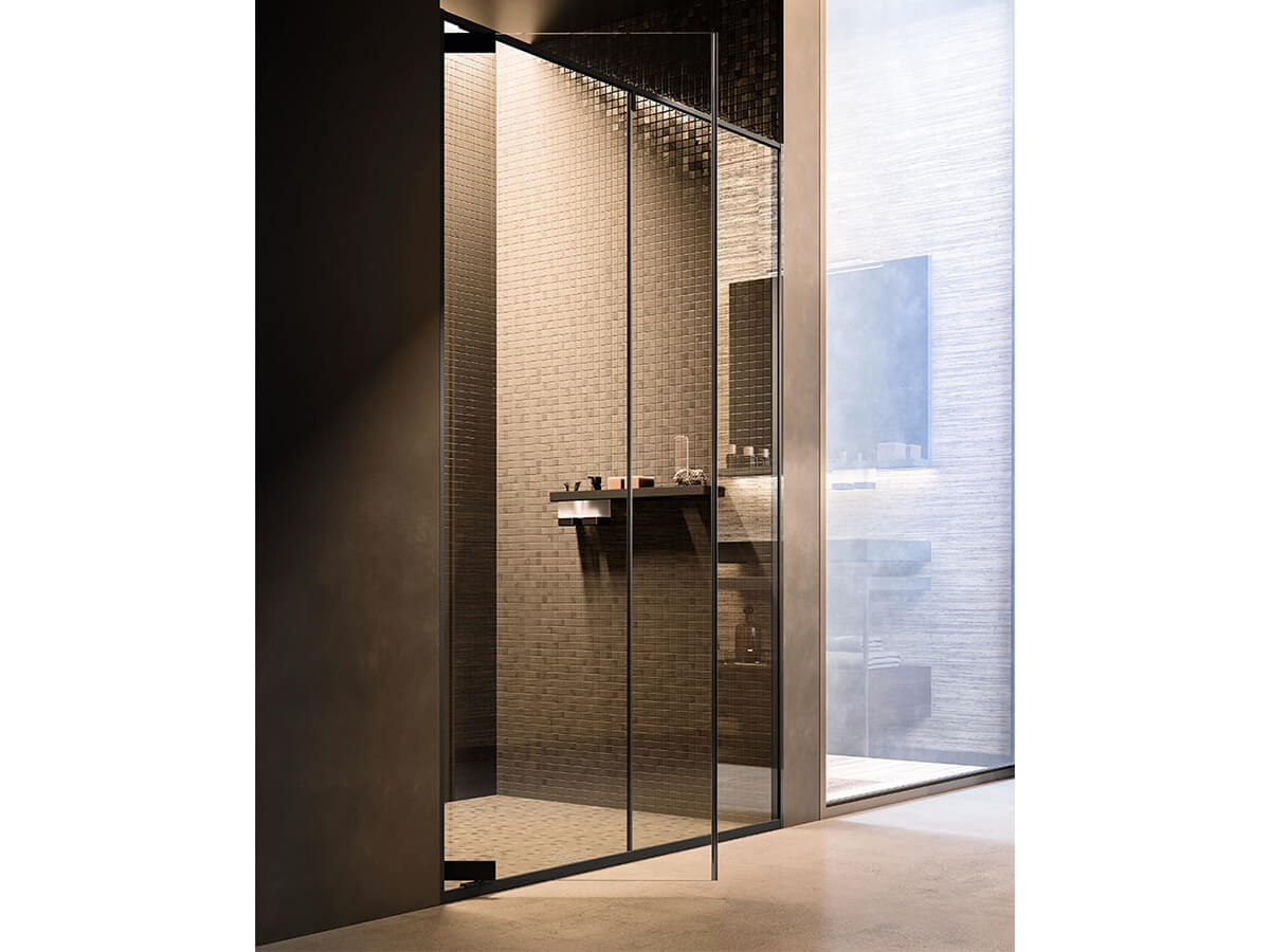 Firmata dal rinomato architetto e designer Matteo Thun in collaborazione con Antonio Roriguez, la doccia Indissima di Inda presenta un telaio di sostegno sottile e minimale ma fortemente caratterizzante, che diventa quasi una cornice dalla forte funzione espressiva. Al telaio è fissato anche un meccanismo di apertura a bilico che permette all’anta di muoversi in maniera fluida e pratica, garantendo un comodo ingresso nella doccia. Indissima è disponibile in diverse composizioni, angolari o in nicchia, in cui l’anta può essere affiancata da altre pareti in vetro fisse caratterizzate anch’esse segno grafico del telaio.