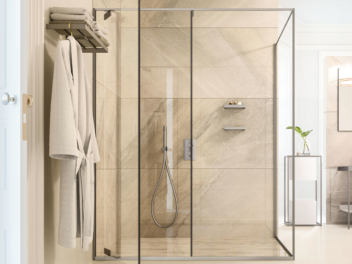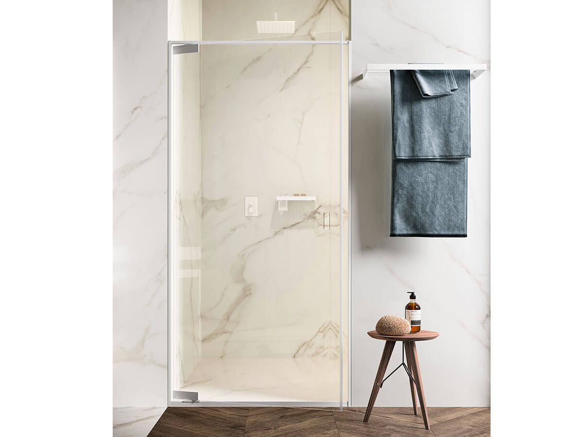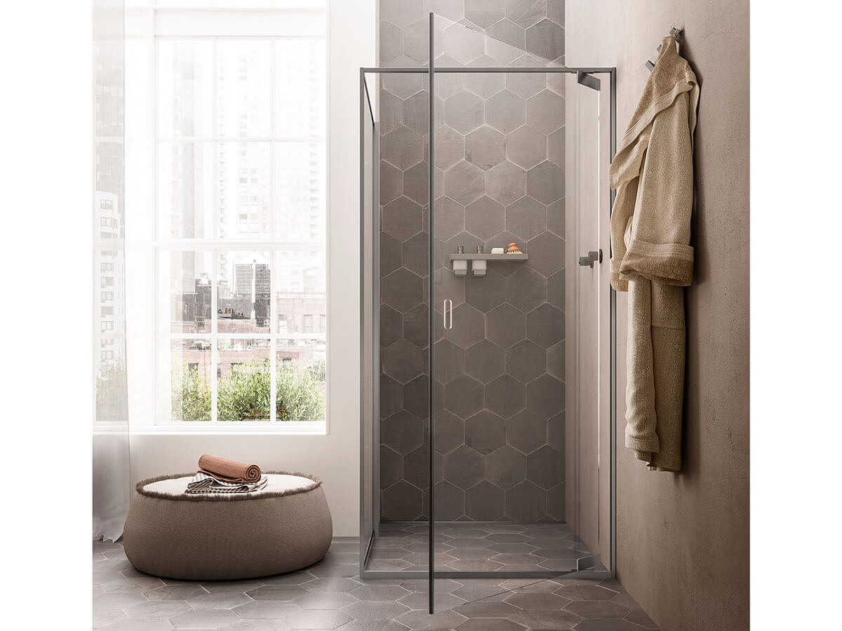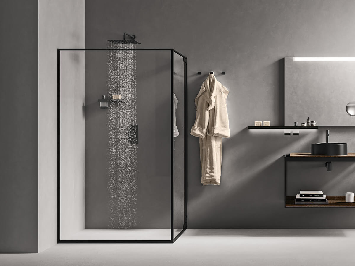 Firmata dal rinomato architetto e designer Matteo Thun in collaborazione con Antonio Roriguez, la doccia Indissima di Inda presenta un telaio di sostegno sottile e minimale ma fortemente caratterizzante, che diventa quasi una cornice dalla forte funzione espressiva. Al telaio è fissato anche un meccanismo di apertura a bilico che permette all’anta di muoversi in maniera fluida e pratica, garantendo un comodo ingresso nella doccia. Indissima è disponibile in diverse composizioni, angolari o in nicchia, in cui l’anta può essere affiancata da altre pareti in vetro fisse caratterizzate anch’esse segno grafico del telaio.