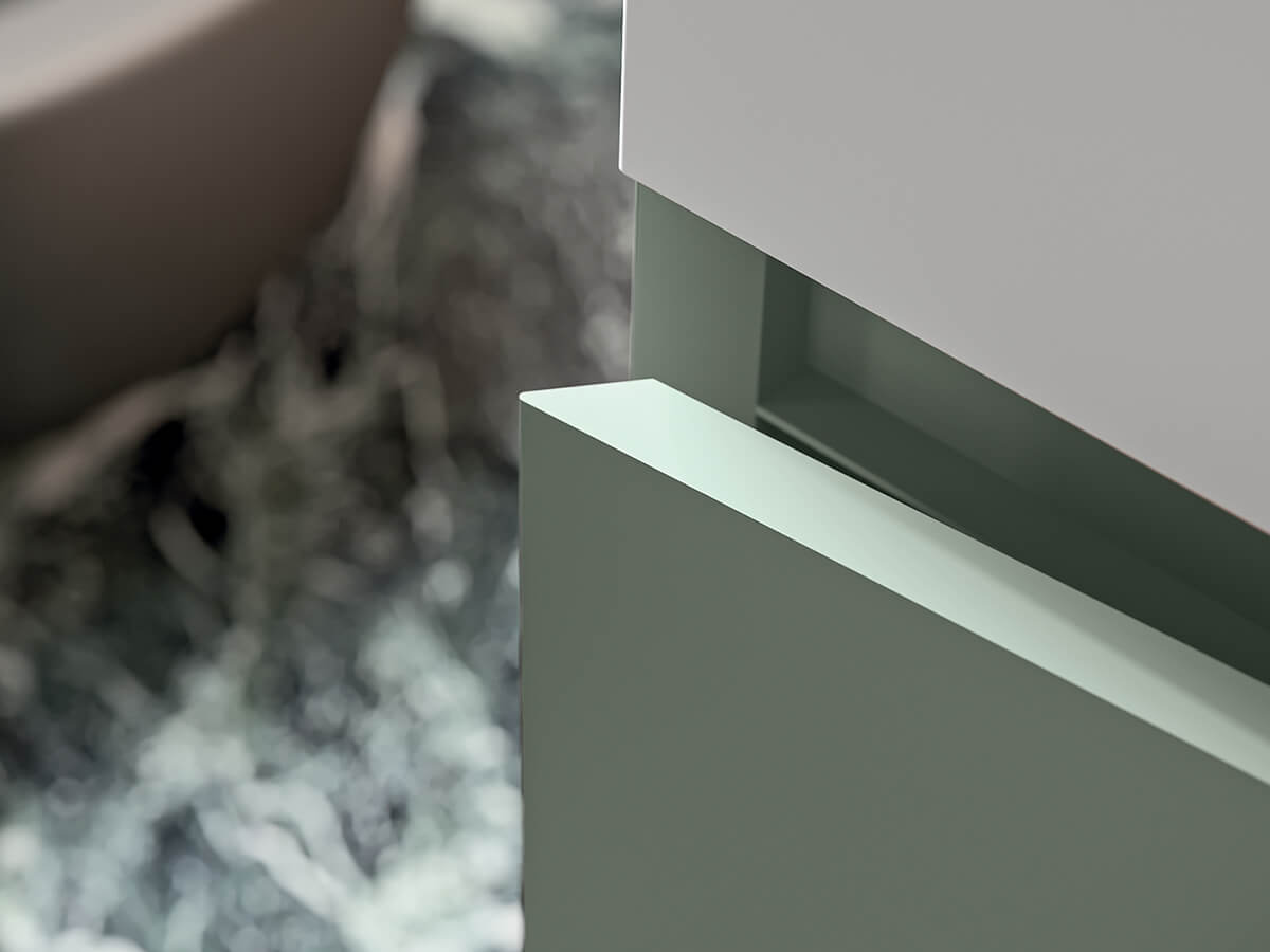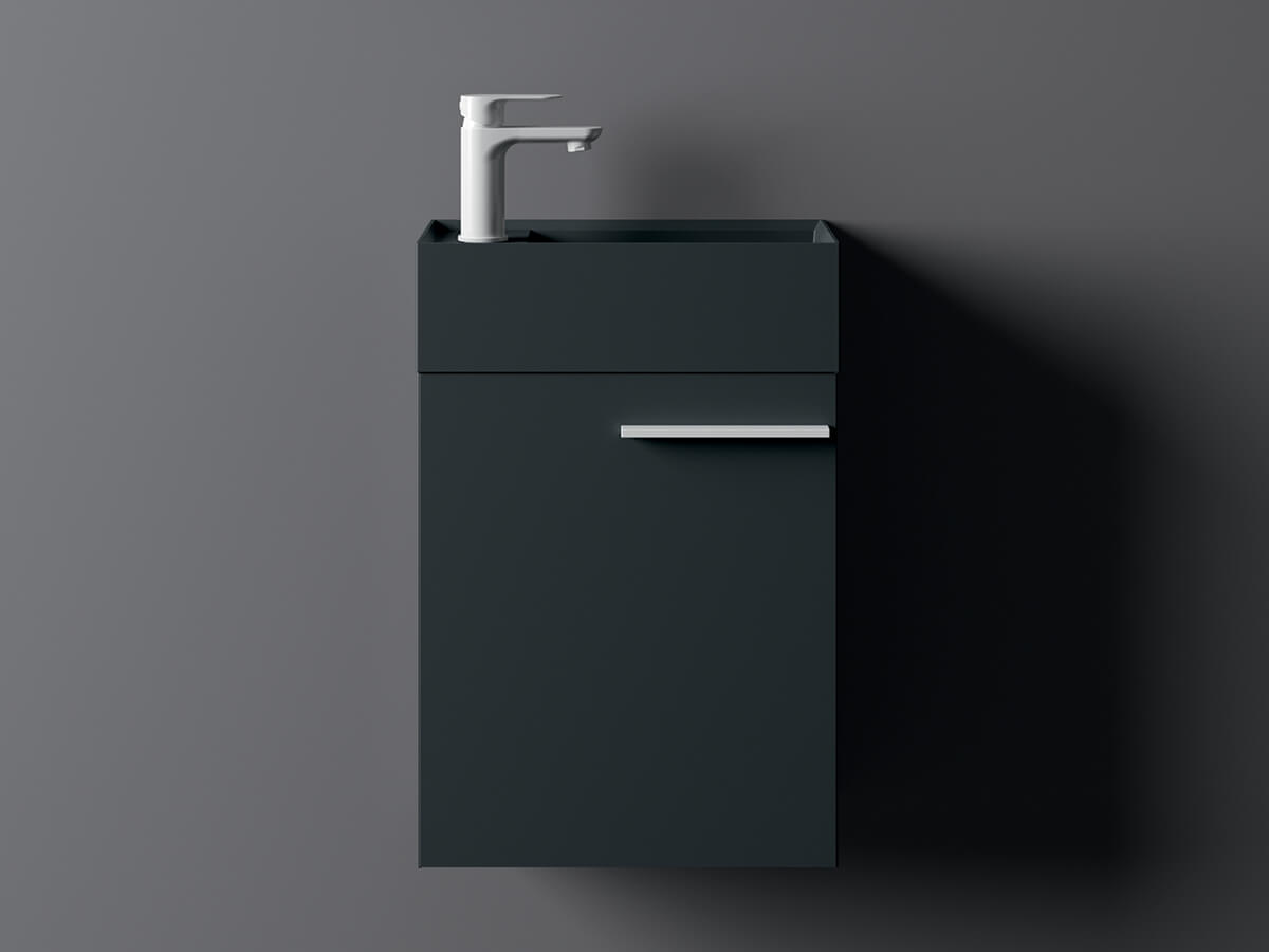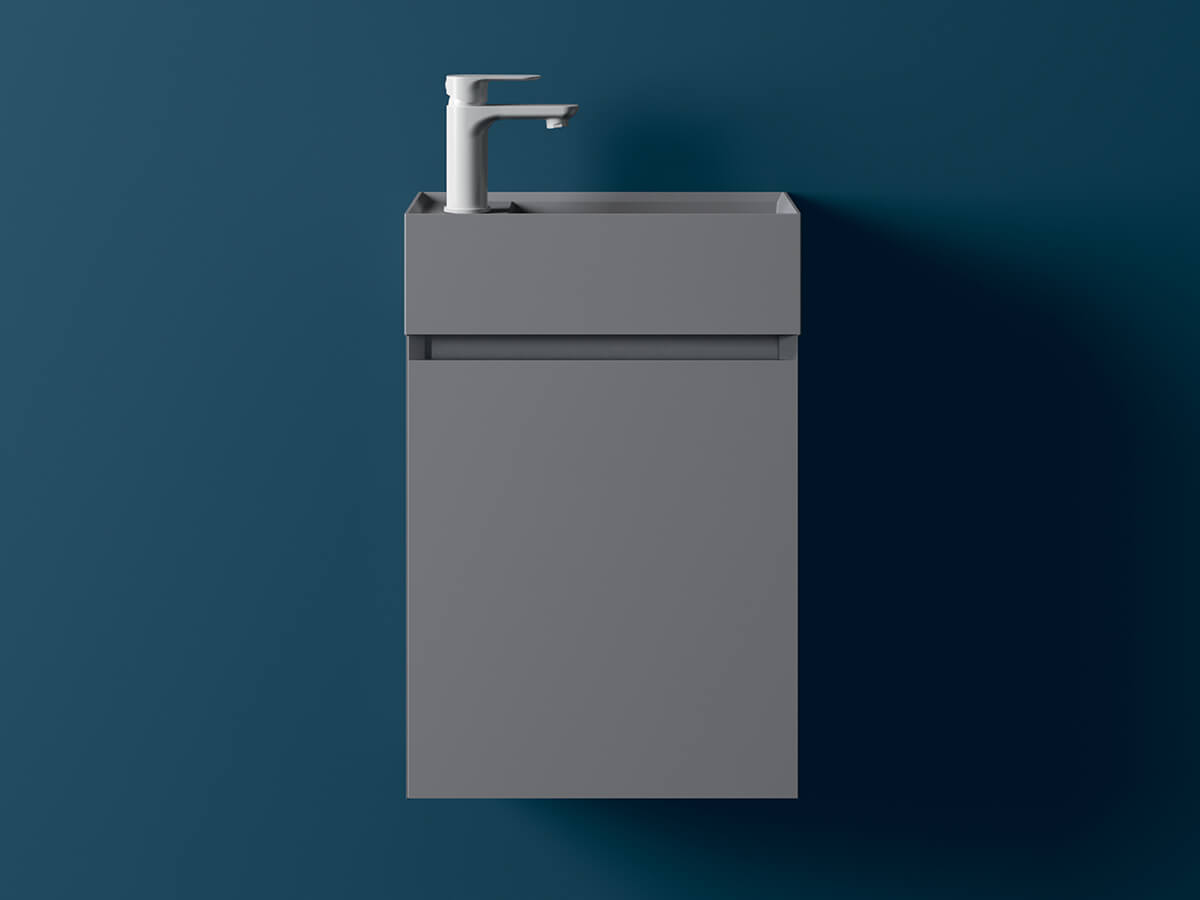 Lilliput 45 è un lavamani monoblocco sospeso comodo e pratico, capace di coniugare la tipica qualità delle collezioni Inda con un’estetica smart che gli permette di tornare molto utile in diverse situazioni progettuali. La sua forma è fissa: nella parte inferiore porta un capiente contenitore rettangolare (con anta apribile con maniglia oppure tramite una gola a seconda della configurazione scelta), mentre nella parte superiore trova posto il lavabo integrato. La finitura è laccata opaca oppure lucida, con una selezione fra oltre 30 colori, e permette una scelta fra eleganti composizioni monocromatiche o il contrasto di un lavabo in Mineralguss bianco lucido.