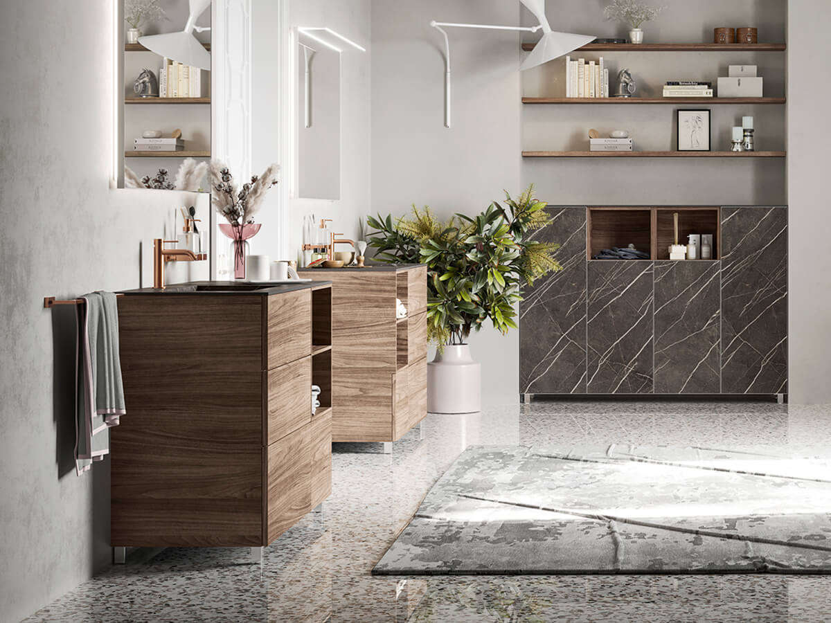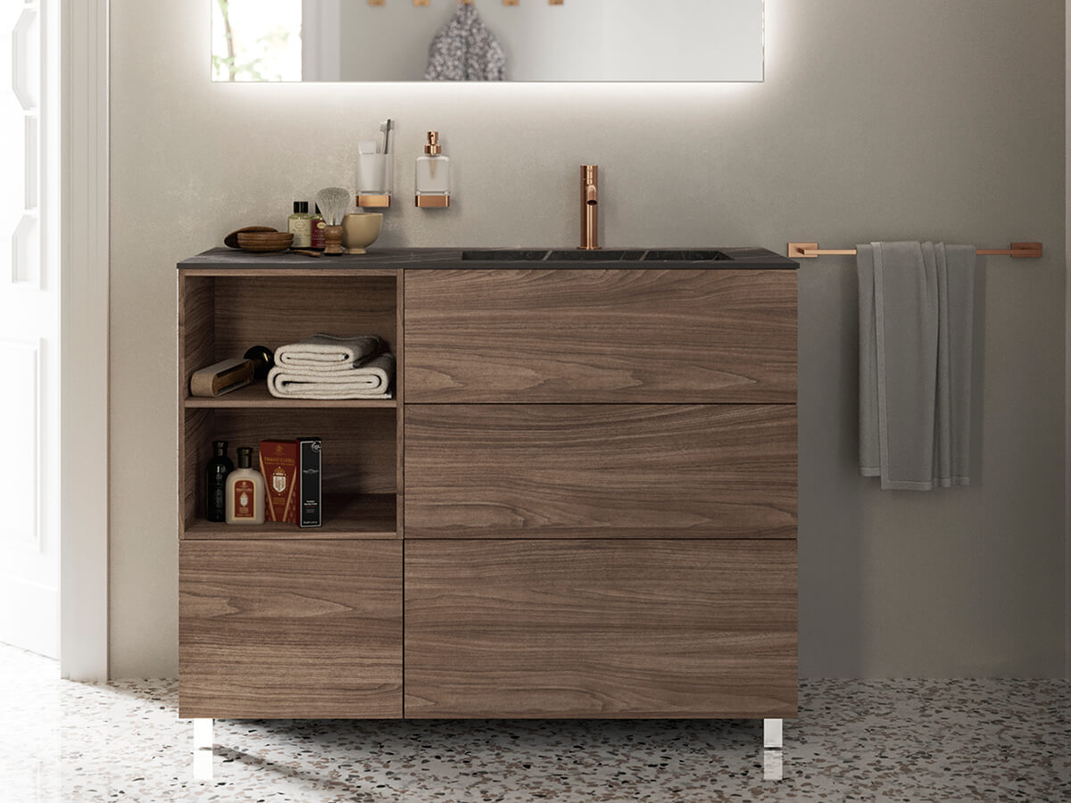 Il mobile bagno Progetto di Inda è la sua collezione più tradizionale e versatile, una linea di contenitori e piani accostabili nelle composizioni più disparate per realizzare un ambiente bagno sempre unico e personale. Ricchissima è la selezione di finiture: gres opaco, legni rari, laccature lucide o opache e anche laminato HPL, per proposte più accessibili anche dal punto di vista del prezzo. Nella sua versione Push Open la serie Progetto si caratterizza per l’assenza di maniglie: le ante di basi e pensili possono essere aperte con una semplice pressione della mano, in maniera pratica e intuitiva. Progetto Push Open può dare vita a una serie di proposte sempre nuove: dal classico contenitore sospeso completo di lavabo (integrato o soprapiano) fino a solidi monoblocco poggiati a terra o persino capienti madie da bagno prive di lavabo, da usare a completamento di un ambiente coordinato.