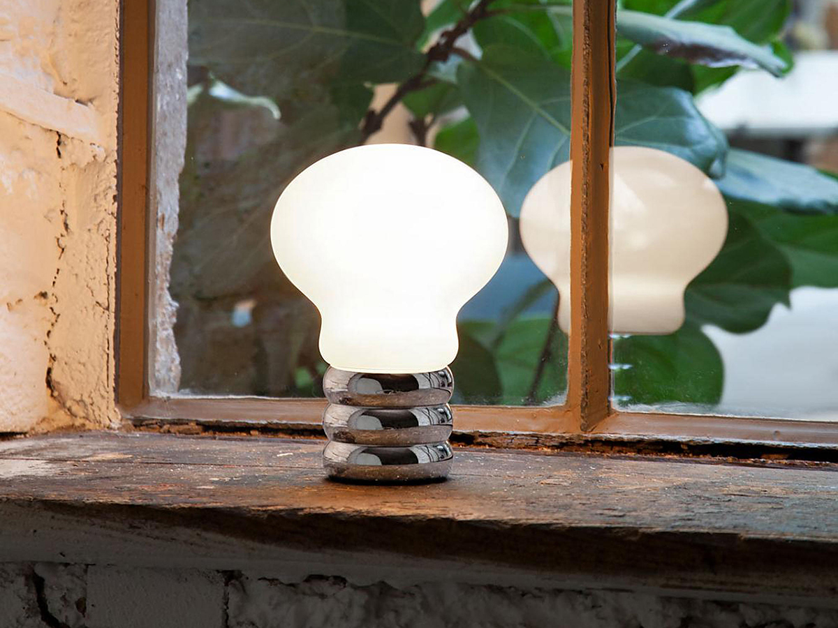 Questa lampada esprime la suggestione del design fine a se stesso, dove concetto e sua espressione si uniscono finalmente così da creare qualcosa di immediato, sincero, estremamente puro. Bulb è una lampada da tavolo la cui forma ricorda in modo impeccabile il bulbo delle lampade, ripreso in tutto e per tutto così da poter offrire la massima corrispondenza con l’origine. Proprio grazie alla semplicità delle sue forme, Bulb si colloca molto bene in qualunque contesto, sia i più formali che i meno formali, aderendo perfettamente alle aspettative che gravitano su di sé. Ingo Maurer dimostra qui come sempre una sapienza concettuale difficilmente imitabile, dove purezza e forma vengono elevati fino alla loro massima espressione.