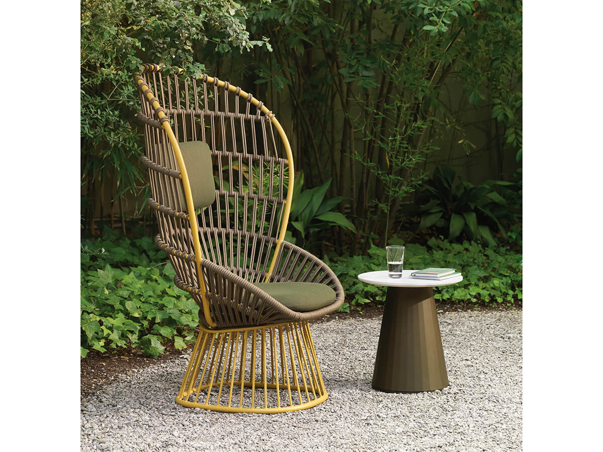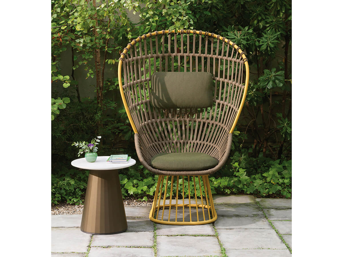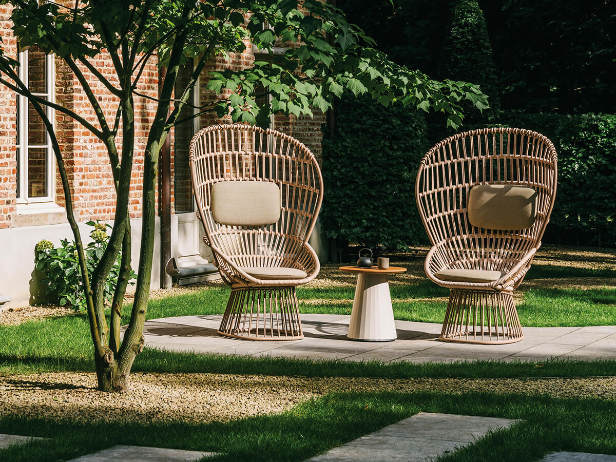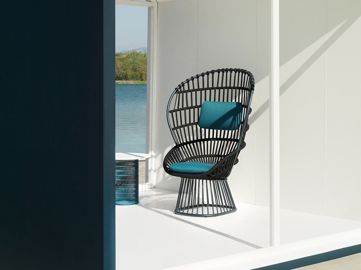 Una poltrona dal design squisitamente retrò, capace di unire passato e presente in una soluzione, di grande suggestione. Cala trae ispirazione dall’iconica Emmanuelle, nota per l’ampio schienale a coda di pavone e la seduta più stretta, ideale per ospitare il corpo. Da questa trae la presenza spaziale maestosa, con superfici trasparenti e leggere che ben si collocano in un contesto più moderno e meno formale. L’intreccio aperto della corda crea una finestra reticolata che offre privacy visiva e allo stesso tempo un collegamento con gli elementi naturali. Cala può essere utilizzata sia come poltroncina da pranzo che come punto relax, garantendo in entrambi i casi la massima resa. Disponibile in numerose colorazioni, è l’idea per chi desideri un arredo di gusto.