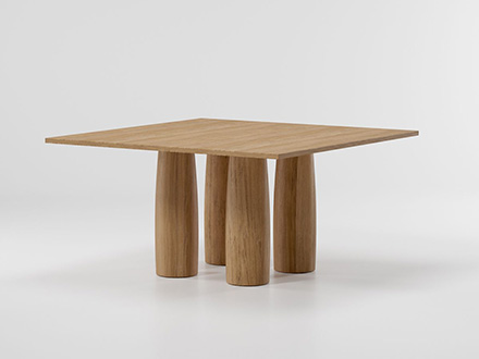 Kettal ripropone in chiave contemporanea il tavolo da pranzo Il Colonnato su progetto dell’architetto e designer Mario Bellini. Le gambe, il cui numero varia in base alle dimensioni del tavolo e all’effetto ricercato, richiamano la forma bombata delle classiche colonne e sono sormontate da un piano rotondo, quadrato o rettangolare. Grazie alle nuove tecnologie di lavorazione e ai nuovi materiali più leggeri è possibile scegliere tra l’originale versione in marmo oppure optare per quella in teak o in cemento, disponibile in due varianti di colore. Questo tavolo, utilizzabile anche in ambienti outdoor, presenta una forte personalità e crea con il gioco di pieni e vuoti della base, un impatto davvero suggestivo.
