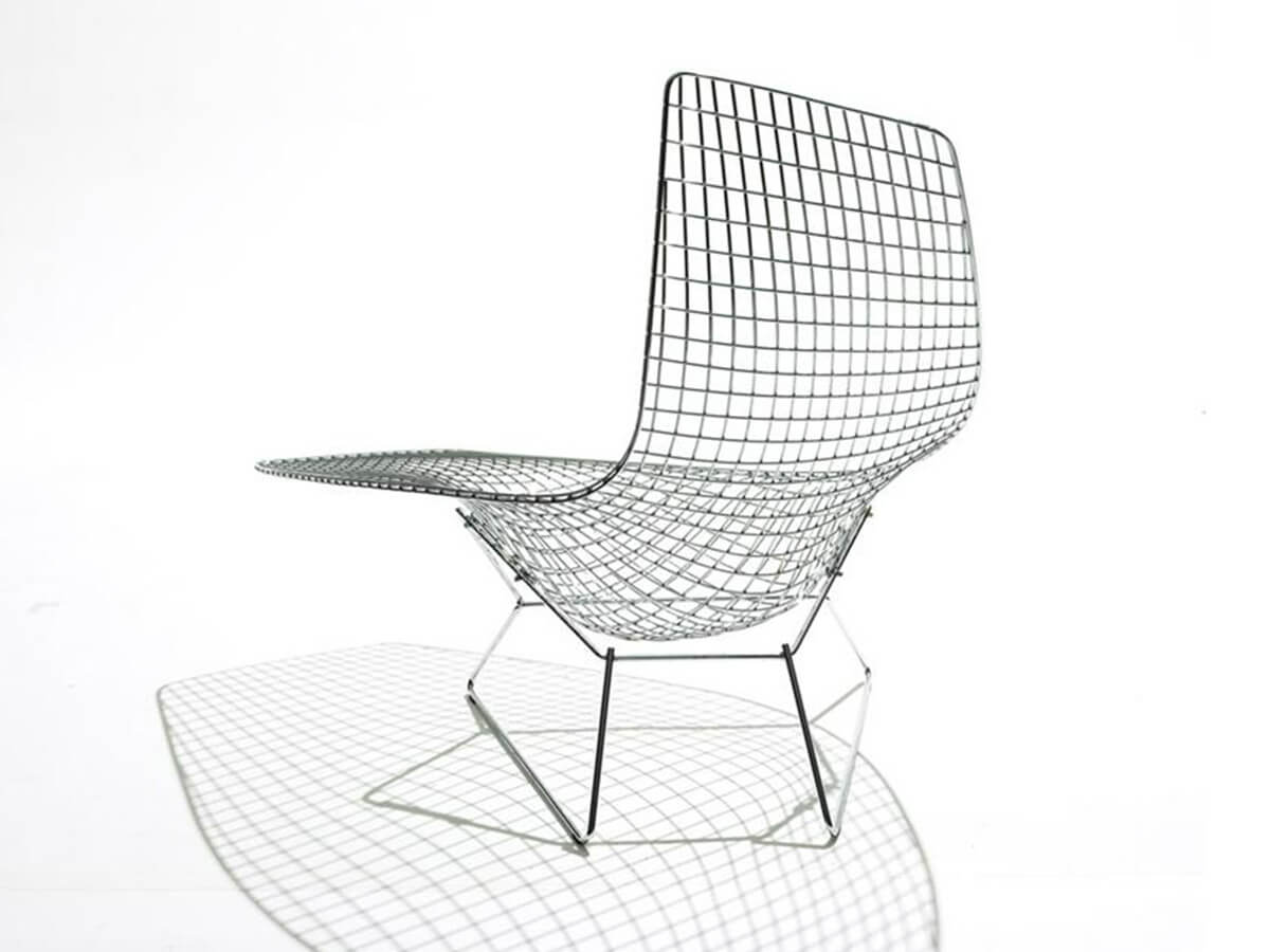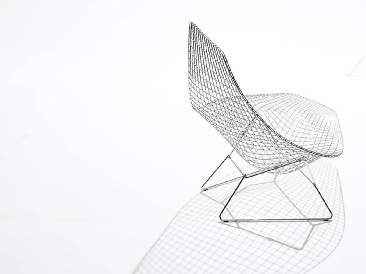 Realizzata in tondino d’acciaio con finitura cromata lucida o in Rilsan, l’Asymmetric Chaise è di certo la più scultorea e artistica fra le opere del designer Harry Bertoia. Frutto dell’intuizione del suo creatore di utilizzare un materiale allora industriale per dar vita a opere di design, rientra oggi fra le più note creazioni dell’azienda Knoll, disponibile in diverse finiture e soluzioni a seconda del gusto. Diversamente dagli altri modelli della serie, il progetto di Asymmetric rimase sostanzialmente congelato dal 1952 fino al 2005 quando l’azienda decise di riportarlo alla luce e iniziare la produzione in serie. Oggi rientra a pieno titolo fra i progetti più suggestivi ed evocativi del nostro secolo.