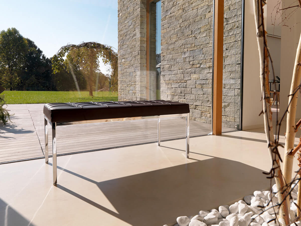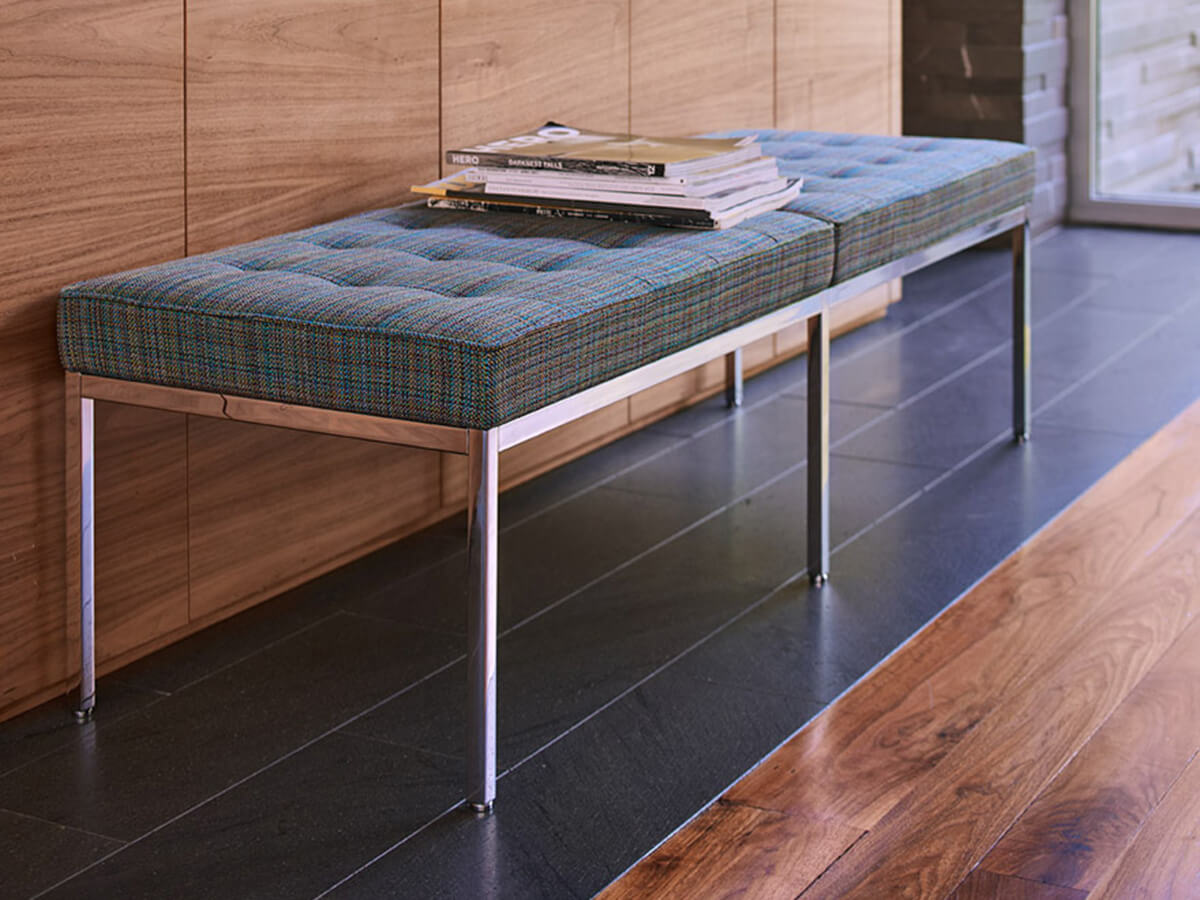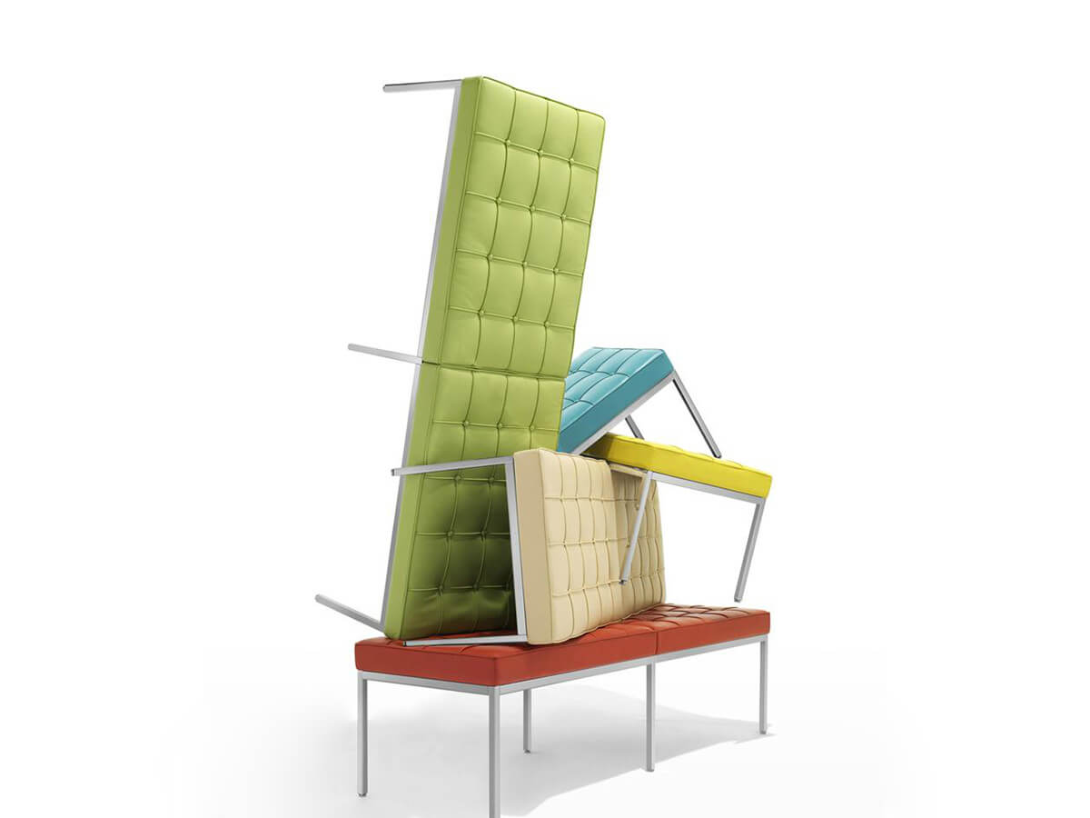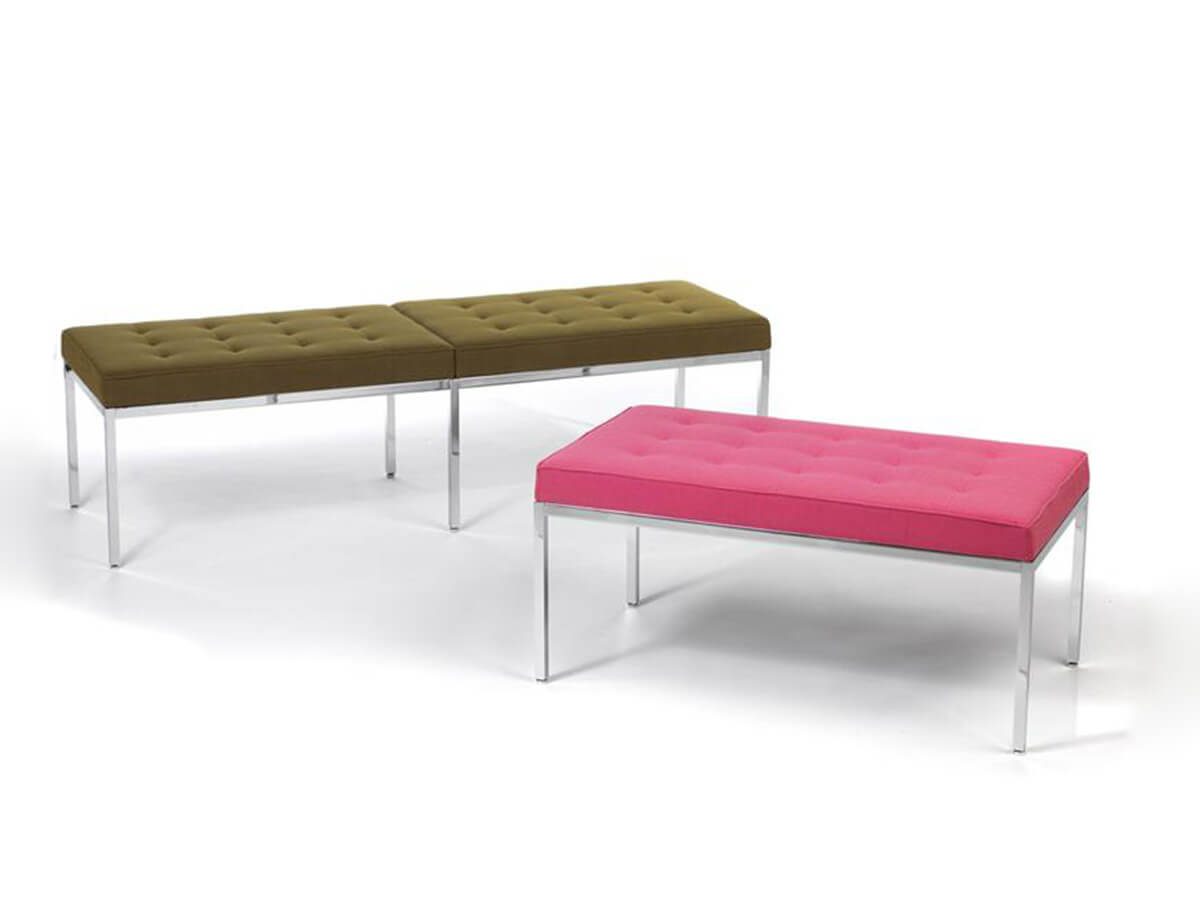 La panca Florence Knoll è un esempio di design moderno unito a un gusto squisitamente retrò. Quattro gambe in metallo laccato lucido sostengono la seduta imbottita in poliuretano disponibile con rivestimento in pelle o tessuto. Le caratteristiche cuciture a riquadri sono disponibili con o senza bottoni, a seconda del gusto e finitura scelta. L’estrema regolarità geometrica di questa panca la rende un elemento d’arredo perfetto per ambienti eterogenei, dalla camera da letto alla zona giorno. Come molti altri arredi voluti da Florence Knoll, anche questa panca si fa portavoce di un funzionalismo assoluto, esempio di perfezionismo estetico e geometrico.