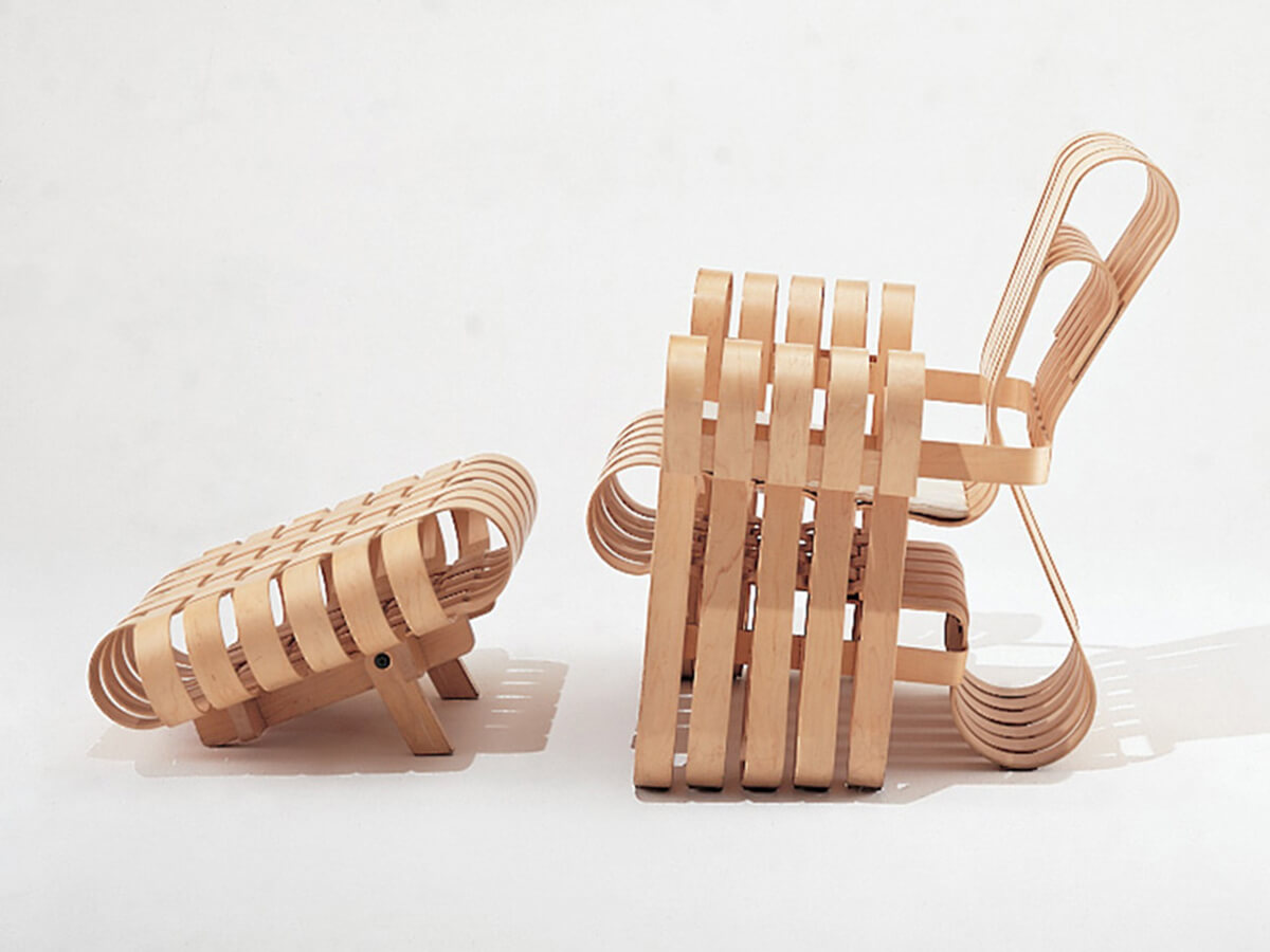Power Play nasce dall’idea di Frank Gehry di dar vita a una collezione d’arredo ispirata alle cassette delle mele. Sotto questa egida è nata quindi una collezione di sedie, poltroncine, poltrone, tavolini e altro ancora tutti rigorosamente distinti per eleganza e stile non convenzionali. Il design si struttura dall’unione di strisce d’acero naturale incollate fra loro senza l’ausilio di supporti esterni. In un completo assortimento di prodotti e dimensioni, la poltrona di Gehry è dotata di un poggiapiedi con gambe pieghevoli che se aperte, gli conferiscono una posizione inclinata. Power Play si colloca bene negli ambienti living della casa, ma può comunque arredare altri spazi a seconda del gusto.