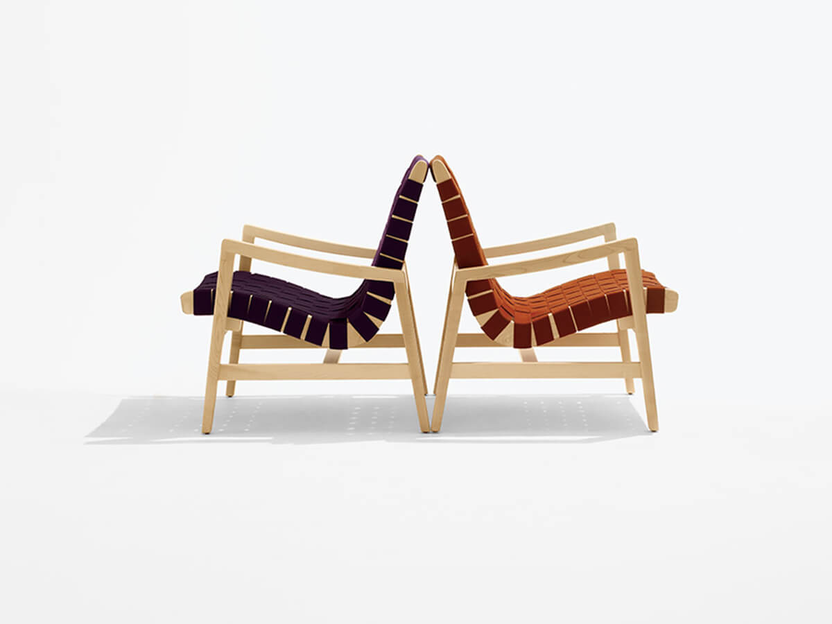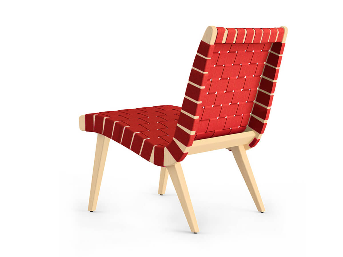 La poltrona Risom Lounge Chair nasce dall’idea di Jens Risom di riutilizzare le cinghie dei paracadute dismessi per creare un intreccio a supporto di schienale e seduta. Da questa intuizione non convenzionale prese forma una delle molte e popolari lounge chair di Knoll. Originariamente prodotta esclusivamente in legno d’acero, oggi è acquistabile in numerose finiture e varianti volte a soddisfare le esigenze più difficili. Risom fa parte di una fortunata collezione comprendente poltrone, sedie, poltroncine, tavoli e contenitori studiati appositamente per essere prodotti localmente, servendosi di legni e materiali della zona e a costi relativamente irrisori.