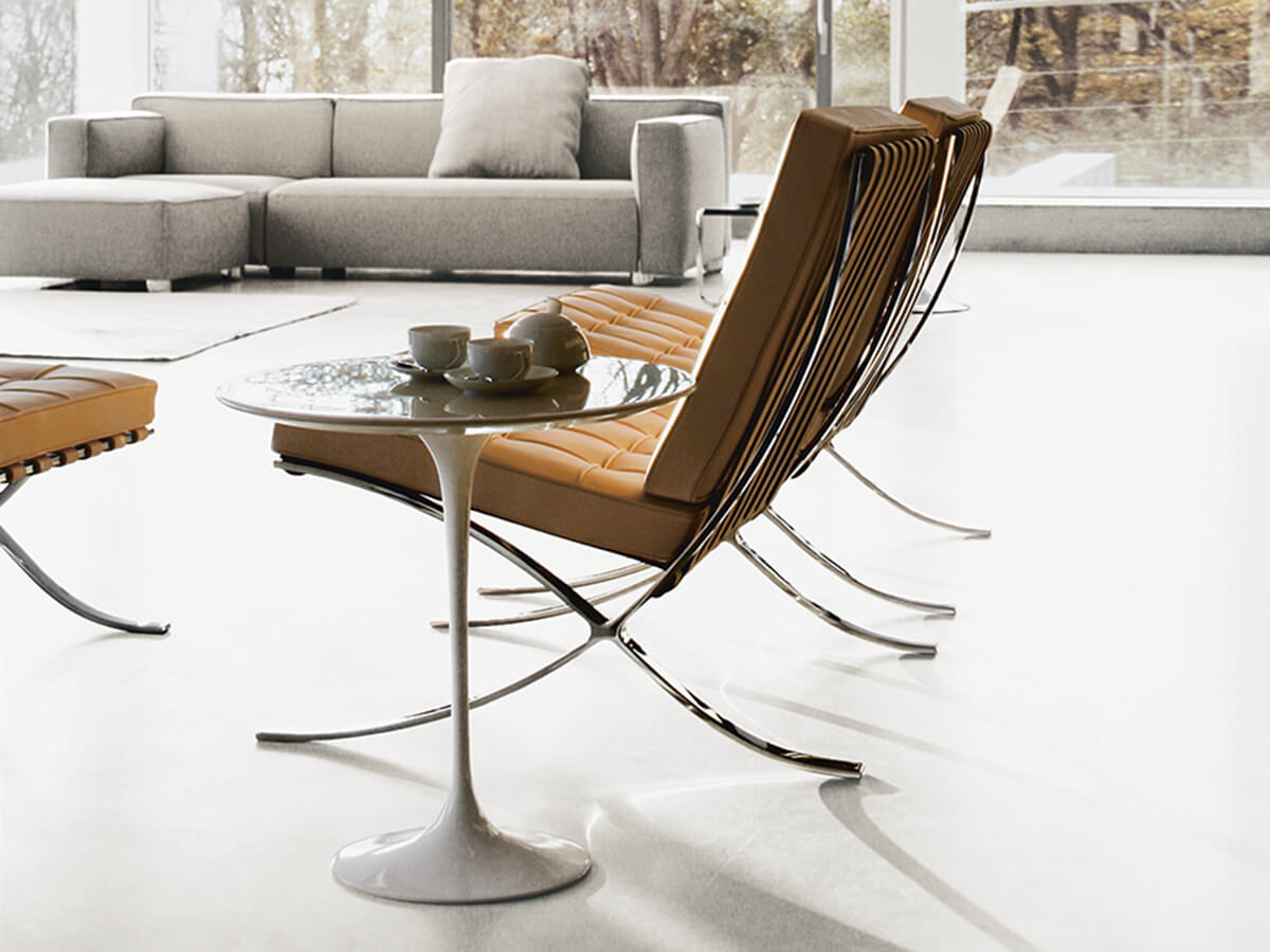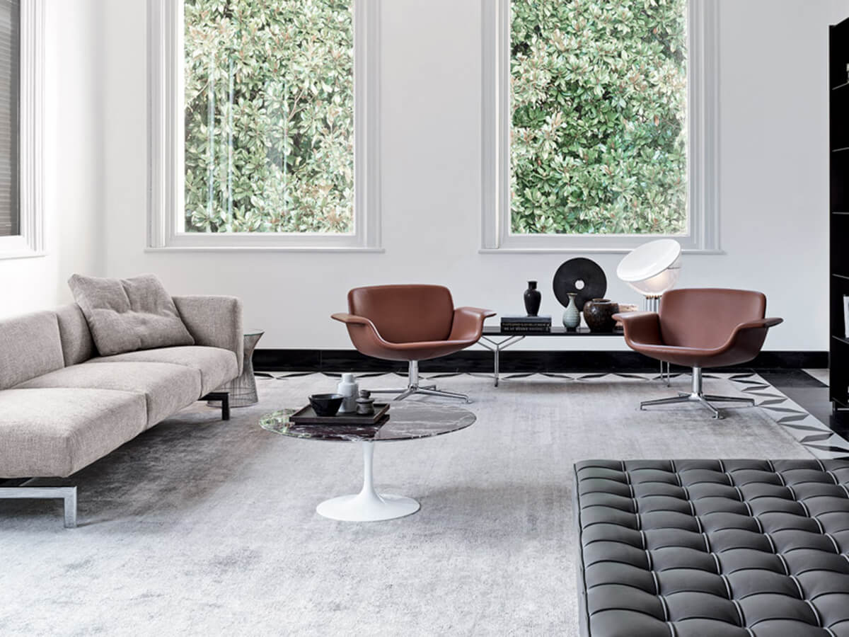 La collezione Saarinen firmata dall’omonimo designer Eero Saarinen raccoglie numerosi pezzi per l’arredo della casa, spaziando dalle sedute a una vasta serie di tavoli e tavolini perfetti per la zona giorno e per l’area conviviale della cucina. Elemento cardine di ogni elemento è la caratteristica struttura a gamba sola capace non solo di snellire, ma donare al contempo una pulizia di forme altrimenti irraggiungibile. Disponibili in diverse finiture e colori, la collezione riesce tuttavia a esprimere al meglio la propria purezza nell’originario bianco dove più si possono ben apprezzare le scelte stilistiche contemporanee fatte dal creatore. Un’eleganza senza tempo, capace di perdurare malgrado i mutamenti di gusto delle diverse generazioni.