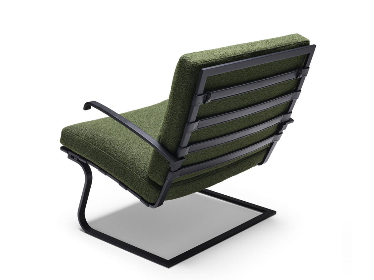 *Prezzo valido per la versione con braccioli - struttura in acciaio verniciato onyx ultra opaco e cinghie in cuoio nero - rivestimento in tessuto cat. G (cod. 254ABXBL).