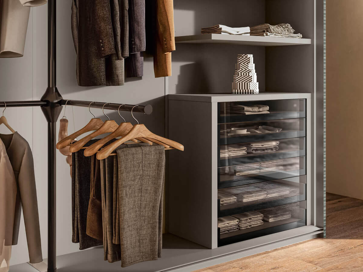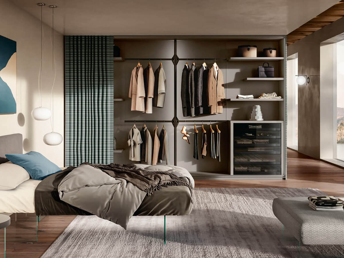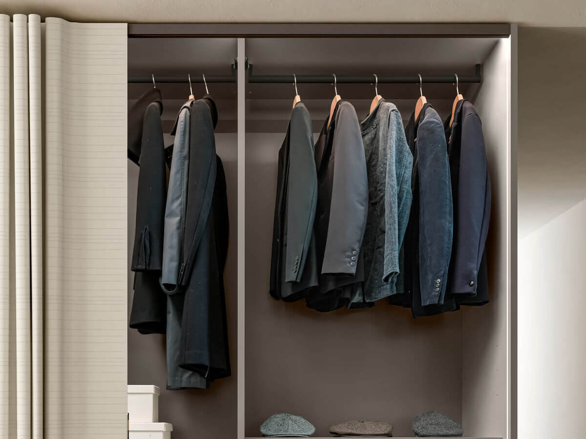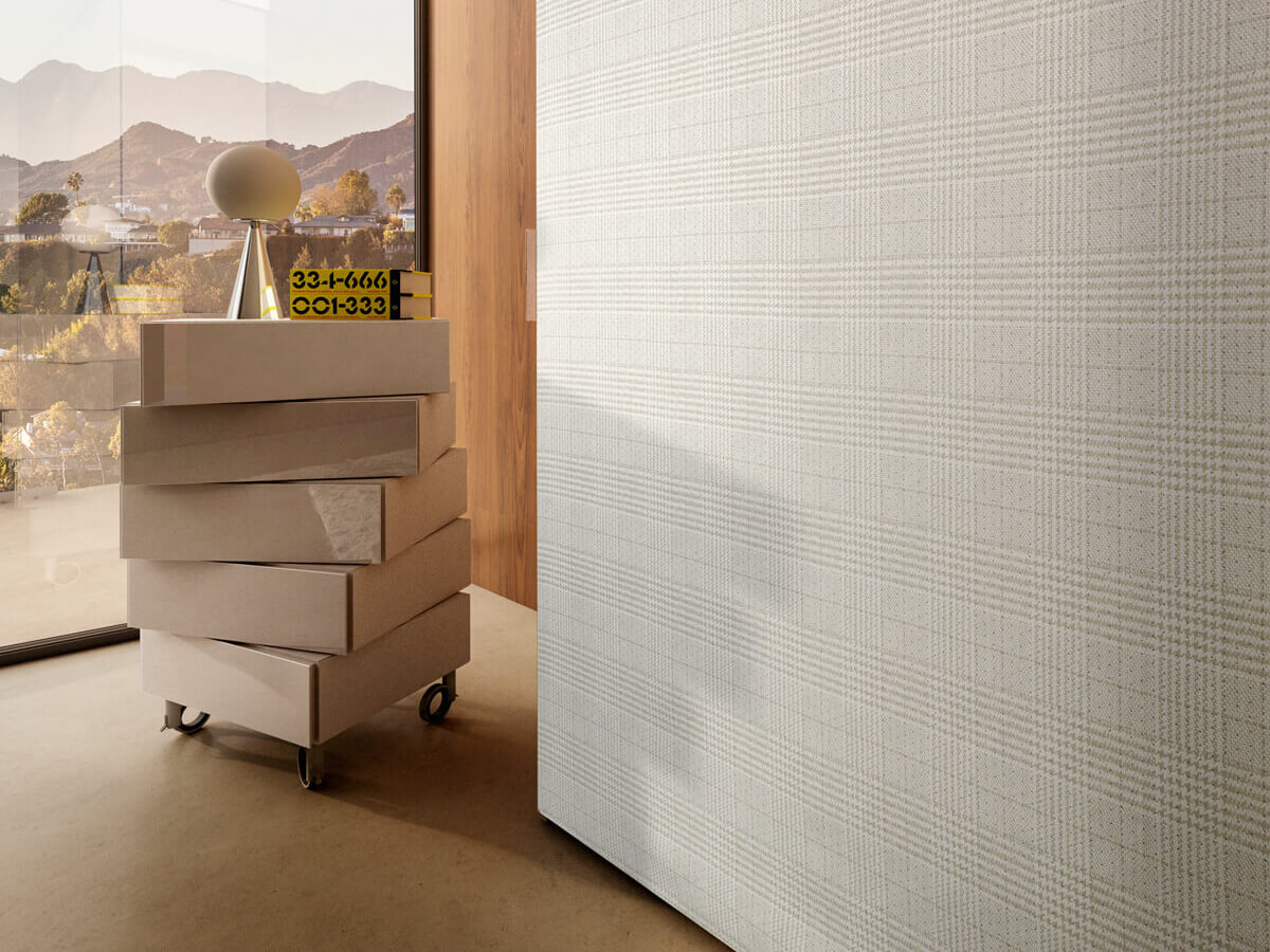 L’armadio Et Voilà di Lago è protagonista di una tecnologia sorprendente e innovativa. Al posto delle ante presenta infatti un grande tessuto teso, delicato a raffinato al tatto, apribile a scorrimento con un semplice gesto come piccolo trucco di magia grazie all’ingegnoso sistema di chiusura magnetica, silenziosa e autoregolabile. La grande cura per i dettagli tecnologici si estende anche alla trama del tessuto, appositamente studiata per bloccare il passaggio della polvere e risultare fonoassorbente. Et Voilà si mimetizza così completamente nell’ambiente circostante, assumendo da chiuso l’aspetto di una parete tessile decorativa ed eliminando totalmente la percezione del suo ingombro.