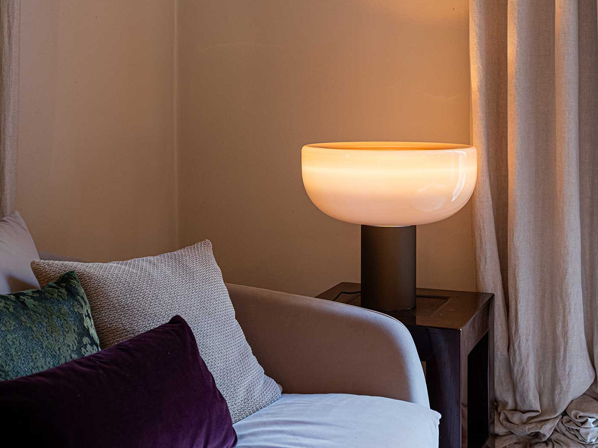 Dal duo creativo Renato Toso e Giovanna Noti Massari nasce Aella, un’elegante lampada da tavolo che unisce la preziosa lavorazione del vetro alla capacità di modellare il metallo. Aella incarna una visione estremamente astratta del “tornado”, qui visibile nella concavità presente al centro del diffusore, che catalizza lo sguardo e diventa vero punto centrale dell’intera composizione. La luce esce come una fiamma luminosa dalla base sottostante e qui si diffonde uniformemente creando un gioco ottico di estrema bellezza. Aella è disponibile in diverse colorazioni per meglio adattarsi agli ambienti della casa, dai più ai meno formali. Leucos mette a disposizione tre diverse dimensioni aggiungendovi anche una versione a sospensione che combina differenti innesti fra base e diffusore.