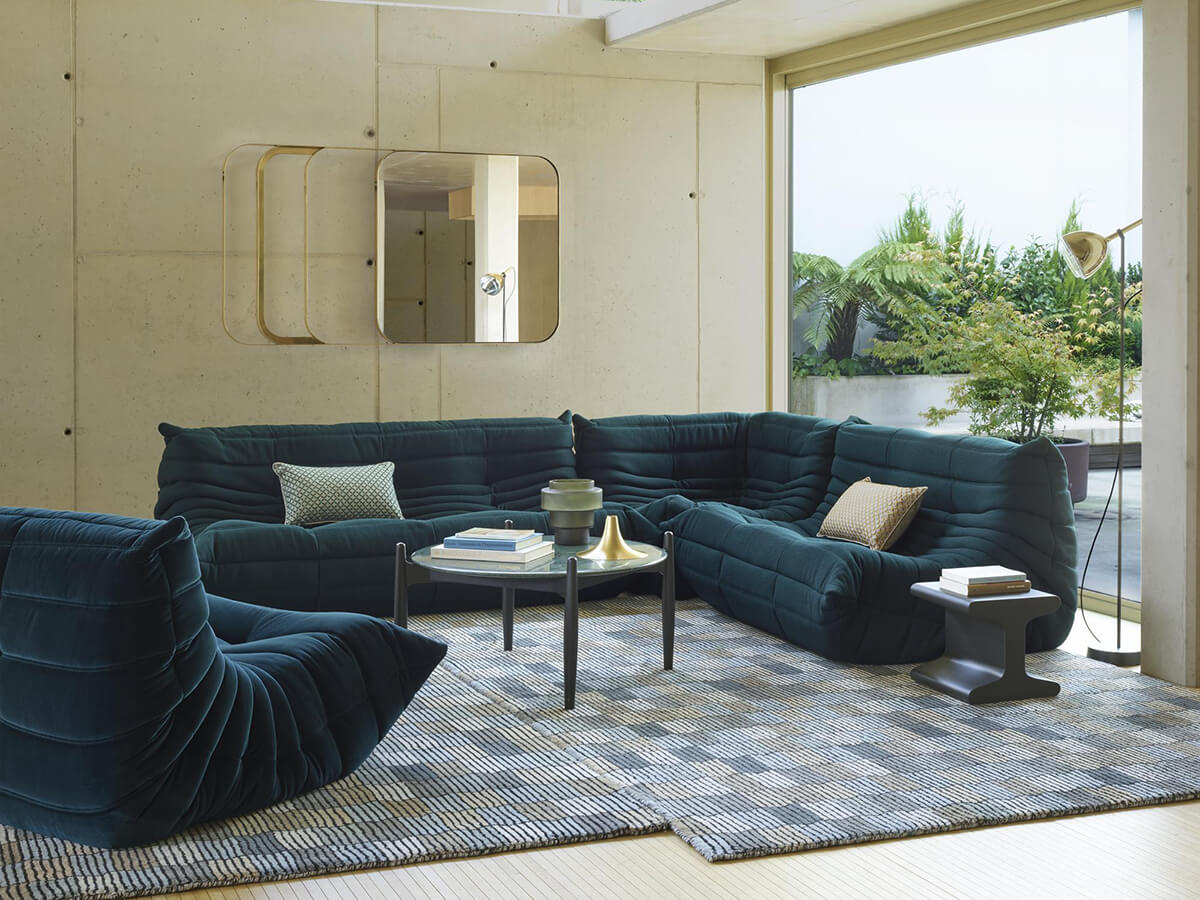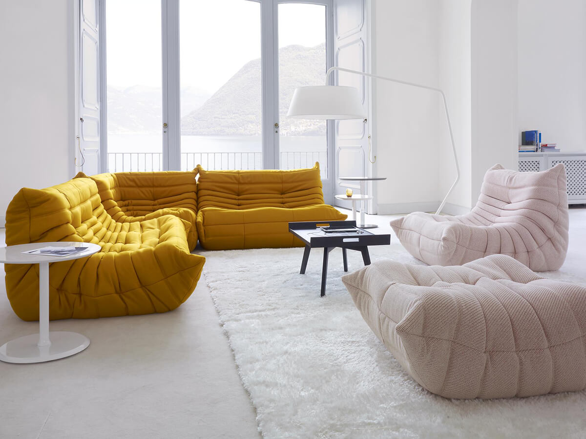 Una linea di imbottiti accattivante, capace con le sue forme morbide e inusuali di attrarre l’attenzione degli appassionati di design di tutto il mondo, dando vita a un vero e proprio trend di gusto. La collezione Togo di Ligne Roset comprende numerose proposte fra cui pouf, poltrone, divani angolari, a due e tre posti e altro ancora, in un completo set-up che ben si accorda alle esigenze del nostro tempo. La linea nasce nel 1973 da Michel Ducaroy e si compone di una struttura in schiuma di poliuretano, imbottitura in poliuretano espanso e rivestimento in tessuto, a sua volta disponibile in numerose colorazioni. Comodo e pratico, Togo offre la soluzione ideale per chi desideri arredare con gusto e ironia, senza prendersi troppo sul serio.