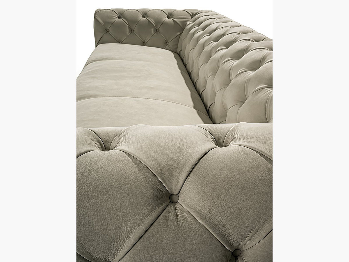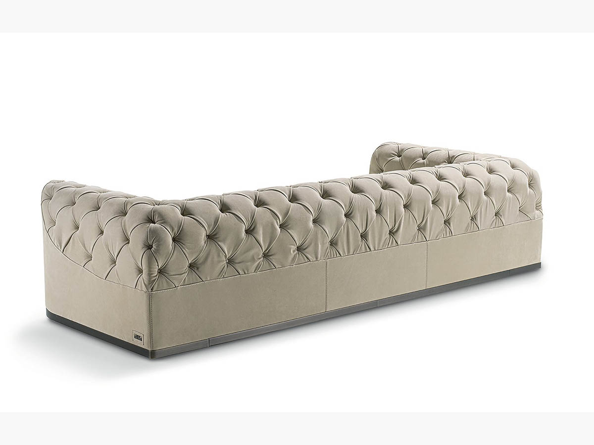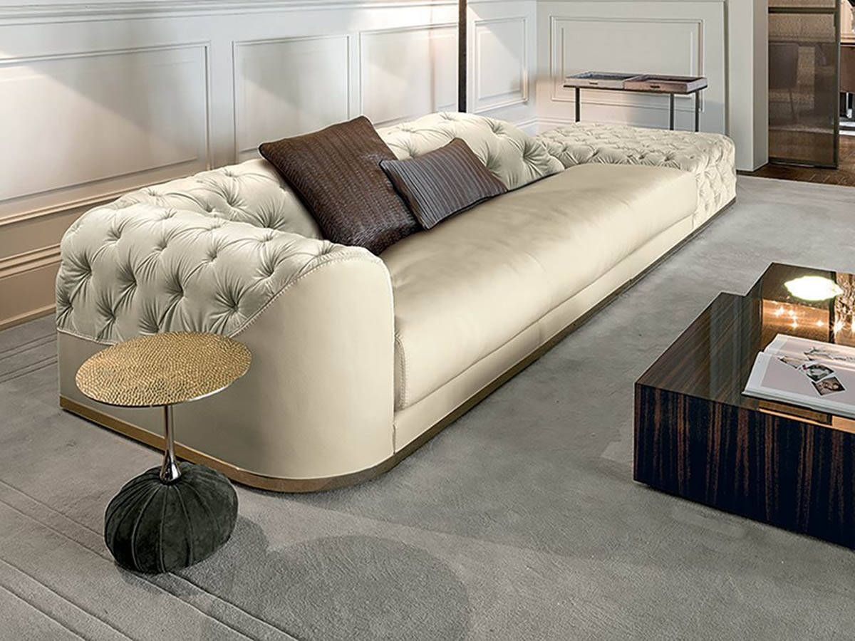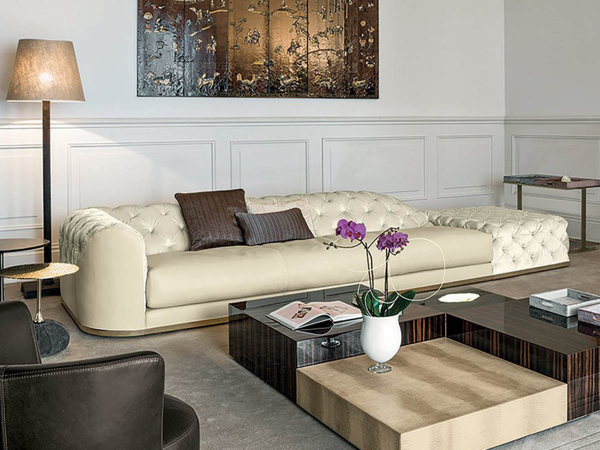 Un omaggio al tradizionale modello Chesterfield che ha saputo ispirare un’epoca. Longhi crea Milton, un imbottito che coniuga diversi stilemi e vede braccioli e schienale risaltare per la preziosa lavorazione in capitonné. La seduta monoblocco è generosa e liscia, volutamente esente da abbellimenti per meglio far risaltare la parte superiore. Le proporzioni di Milton rispecchiano quelle del suo progenitore ma aggiungono un tocco di modernità. Longhi presenta questo divano in numerose varianti di colore e finiture, rispettando sia il tradizionale rivestimento in pelle ma aggiungendovi anche il tessuto, pratico da gestire ed egualmente durevole. Le forme di Milton sono morbide e arrotondate per accostarsi al gusto più contemporaneo nell’arredo dello spazio living.