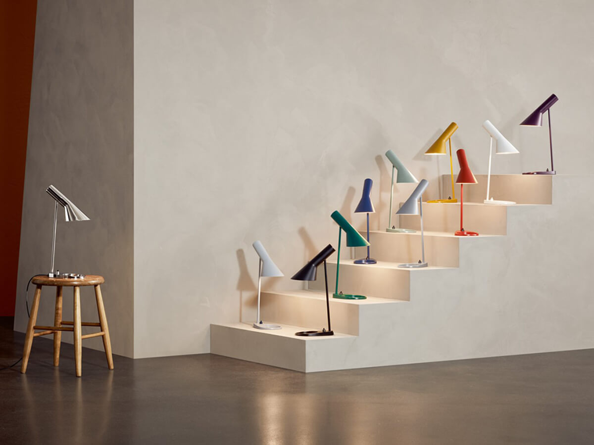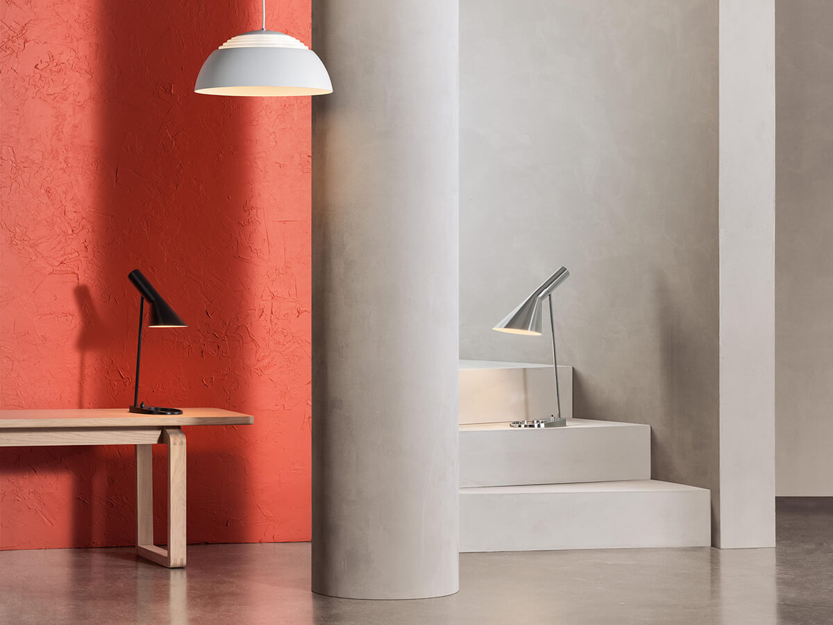 Il design puro e senza tempo della lampada da tavolo AJ, progettata dall’architetto Arne Jacobsen e prodotta dal marchio Louis Poulsen, unisce lo spirito minimalista con eccellenti qualità di illuminazione. Il paralume in acciaio, disponibile in diverse finiture di colore o nell’originario acciaio inossidabile lucidato, è orientabile e dipinto di bianco all’interno per garantire una luce morbida e confortevole. La base forata, in zinco pressofuso o in acciaio inossidabile, accoglie l’interruttore di accensione/spegnimento e il cavo di alimentazione. La lampada da tavolo AJ dona una nota vintage in puro stile scandinavo che ben si adatta a qualsiasi tipo di arredamento.