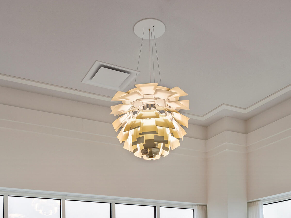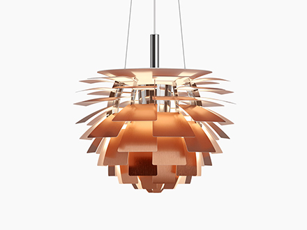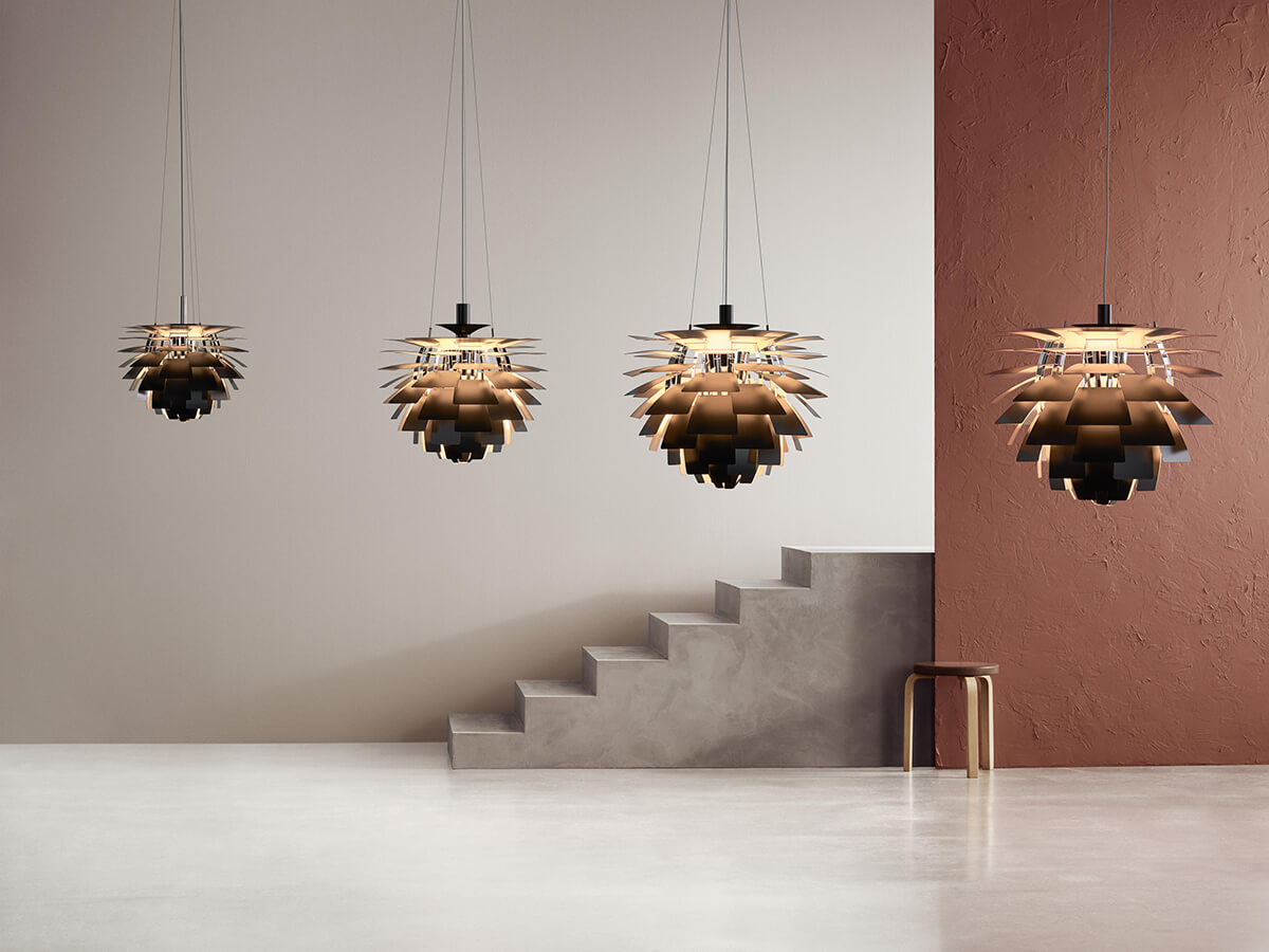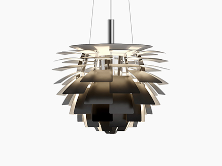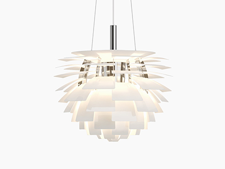 Creata da Poul Henningsen, PH Artichoke è uno dei classici del design, nonché uno dei comprovati capolavori del genere. La forza di questa lampada è data dalla presenza di 72 foglie distribuite in 12 file che creano un effetto “pigna”, “fontana” e altro ancora, a seconda dell’immaginario di chi guarda. Grazie al suo particolare design, la fonte di luce della lampada non è visibile, ma si intravede fra le varie sfoglie risultando così particolarmente gradevole e modulata. Originariamente creata per un ristorante di Copenaghen, è divenuta nel tempo un caposaldo di settore, spiccando in ambienti diversi e situazioni eterogenee.
