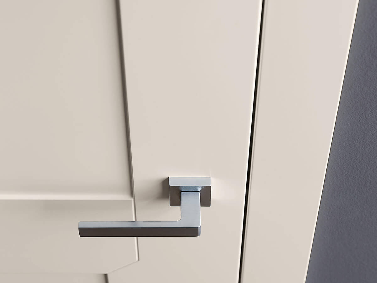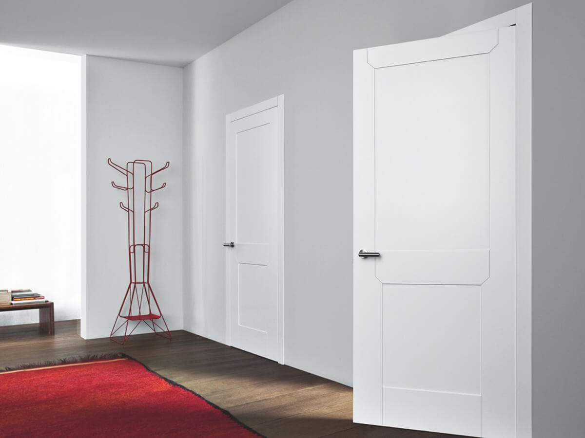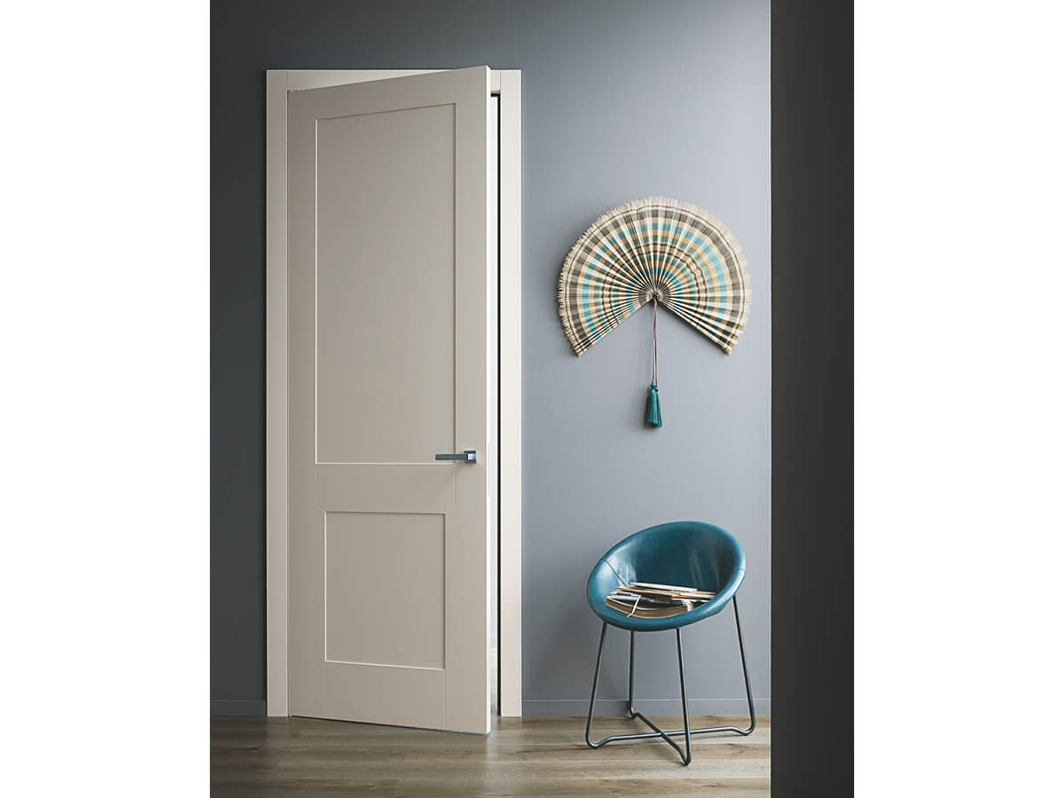 La porta San Siro di Lualdi si richiama alle forme un po’ retrò di una tradizione tipicamente milanese. È valorizzata anche dalla prestigiosa firma di un architetto che ha fatto la storia della città, quel Luigi Caccia Dominioni che, con i suoi palazzi, contribuì a plasmare l’immagine della città nell’immediato Dopoguerra e che lasciò anche un forte segno nel mondo del design con la fondazione di Azucena. Apparentemente molto classica, la porta San Siro svela però una lieve dissonanza nel disegno delle sue fasce laterali, tocco d’autore capace di infondere uno spirito moderno in un oggetto piuttosto tradizionale. L’anta è incorniciata da un ampio coprifilo e può essere personalizzata attraverso la selezione di diversi colori di laccatura opaca.