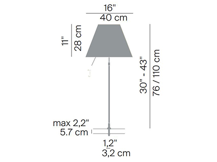Una lampada dal design classico e atemporale, capace di soddisfare le esigenze compositive di ambienti eterogenei. Costanza presenta quel caratteristico design della “lampada da tavolo” o “lampada comodino” più comunemente pensata, con un diffusore conico e piccolo stelo a sostegno della lampadina interna. Una lampada, insomma, semplice, che non manca mai di stupire. Costanza è disponibile in diverse versioni, fra cui da tavolo e da terra. Il diffusore in policarbonato è sostenuto dalla struttura in alluminio su due soli punti di appoggio. Luceplan rende disponibili numerosi colori e sfumature per meglio conciliare la personalizzazione. Caratteristiche tecniche per la versione classica: disponibile con interruttore on/off oppure con dimmer sensoriale