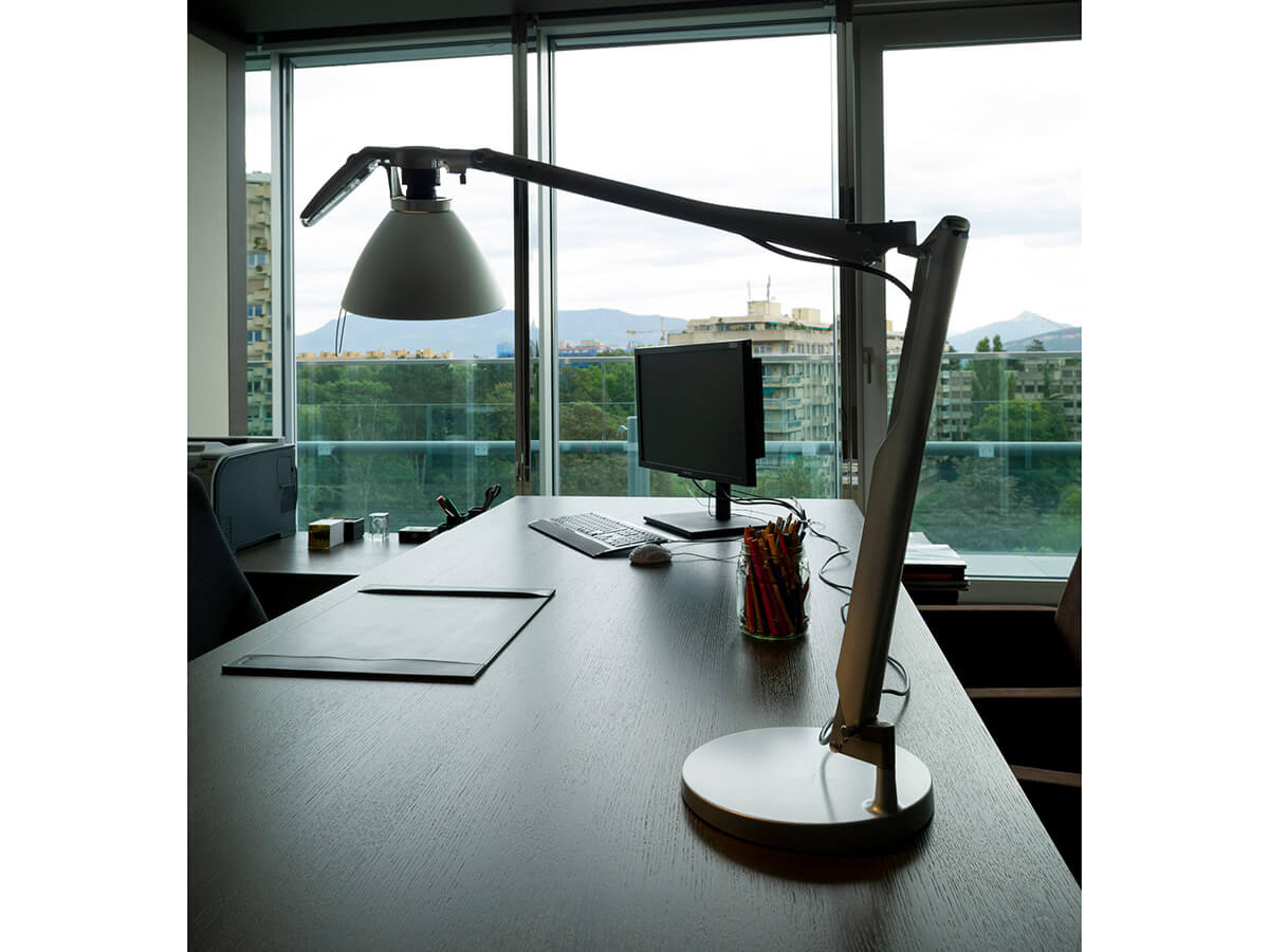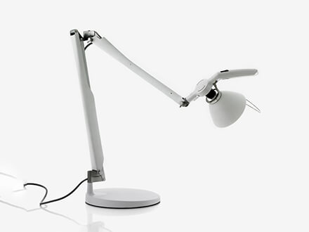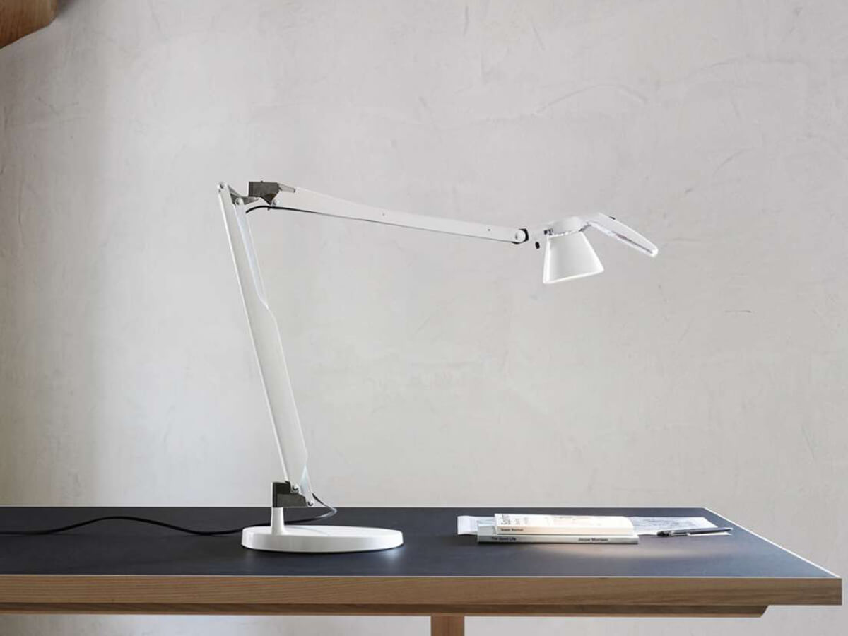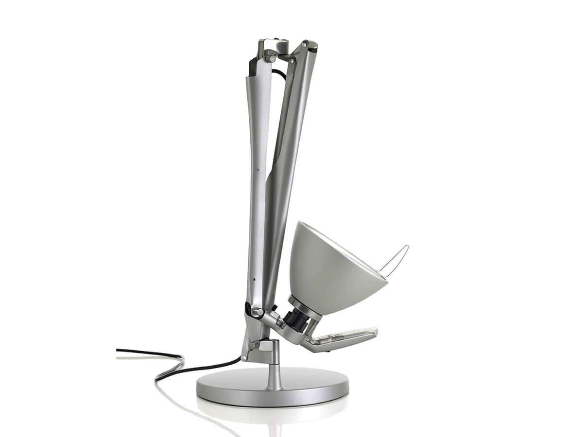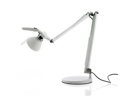Luceplan riesce ancora una volta a stupire per l’ingegnosità e la bellezza conferite a un elemento d’arredo luminoso, ideale per qualunque ambiente della casa, dai più ai meno formali. Fortebraccio fissa nuovi parametri di efficienza per quel settore di lampade utili nell’home office ma anche per piccole scrivanie e comodini. Lo snodo centrale permette ai due bracci di ruotare indipendentemente sull’asse orizzontale e verticale, garantendo così grande fluidità di movimento anche in posizioni estremamente complicate e inconsuete. L’impugnatura in policarbonato consente inoltre di manovrare in modo estremamente semplice, senza rischiare ustioni o scomodità di alcun genere.