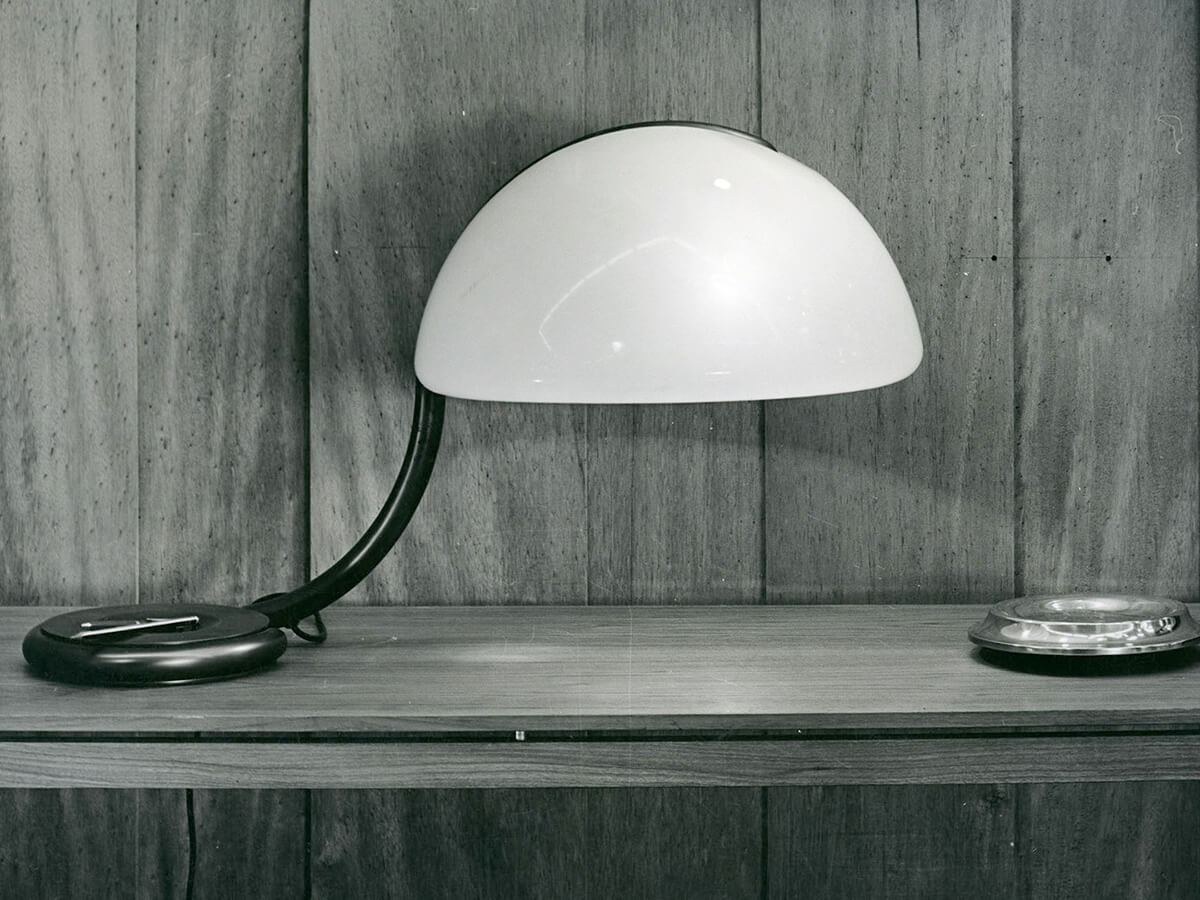 Elio Martinelli (1922-2004) è un designer e imprenditore italiano, fondatore del brand Martinelli Luce. Originario di Lucca, città nella quale svolse per tutta la vita la sua attività, Elio Martinelli era un autodidatta: la sua formazione è infatti rivolta principalmente al mondo dell’arte ed era culminata nel 1947 in una laurea in scenografia all’Accademia delle Belle Arti di Firenze. Pochi anni dopo dovette prendere le redini del negozio di illuminazione di famiglia, succedendo al padre prematuramente scomparso. Il suo animo creativo lo spinse però ad affiancare a questa attività anche le creazioni di lampade realizzate direttamente da lui, le quali prendevano inizialmente vita in un piccolo scantinato nel centro di Lucca. La Martinelli Luce raggiunge il suo pieno sviluppo negli anni ’60 quando attraverso importanti investimenti sarà una delle prime aziende italiane a sperimentare l’uso di materiali plastici per la realizzazione di lampade, dando vita a modelli tuttora iconici come Serpente (1965) e Cobra (1968), entrambi firmati dallo stesso Elio Martinelli. La partecipazione alla rassegna Eurodomus di Genova del 1966, patrocinata da Gio Ponti, conferisce infine all’azienda una notorietà nazionale che le permetterà di lavorare anche con altri importanti architetti e designer, tra i quali spicca Gae Aulenti che affiderà alla Martinelli Luce la produzione in serie della sua lampada Pipistrello, diventata una delle più celebri di tutti i tempi. Elio Martinelli continuerò a disegnare lampade per tutta la vita, affiancato a partire dagli anni ’90 dalla figlia Emiliana che finirà poi per sostituirlo alla guida del brand negli ultimi anni, segnati dalla malattia.