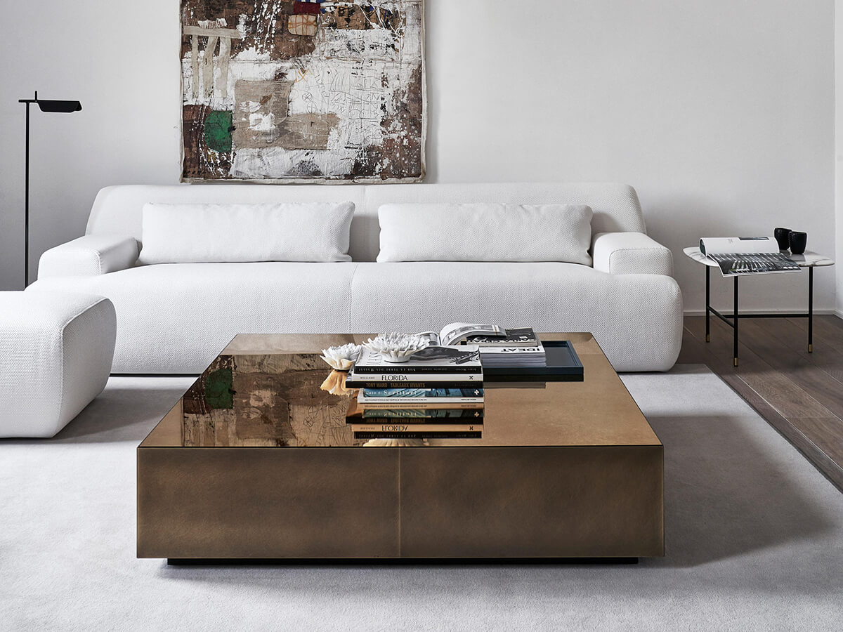 Un esempio di design essenziale, capace di estrapolare dalla materia la sua massima e migliore espressione. Belt esprime la perfezione geometrica oltre alla chiave estetica del tavolino basso. La collezione è disponibile in diverse dimensioni per ciascuna forma. Belt viene realizzato con la fascia perimetrale nelle preziose finiture artigianali dell’ottone bronzato o dell’acciaio platinato, con piani che presentano varie finiture fra cui vetro, specchio, lacca o ancora marmo. La versione Mirror è particolarmente gradevole in quanto rivestita con superfici riflettenti di specchio che ne esaltano il potenziale surreale. Un oggetto che si presta a diverse applicazioni, trovando posto in numerosi ambienti della casa.