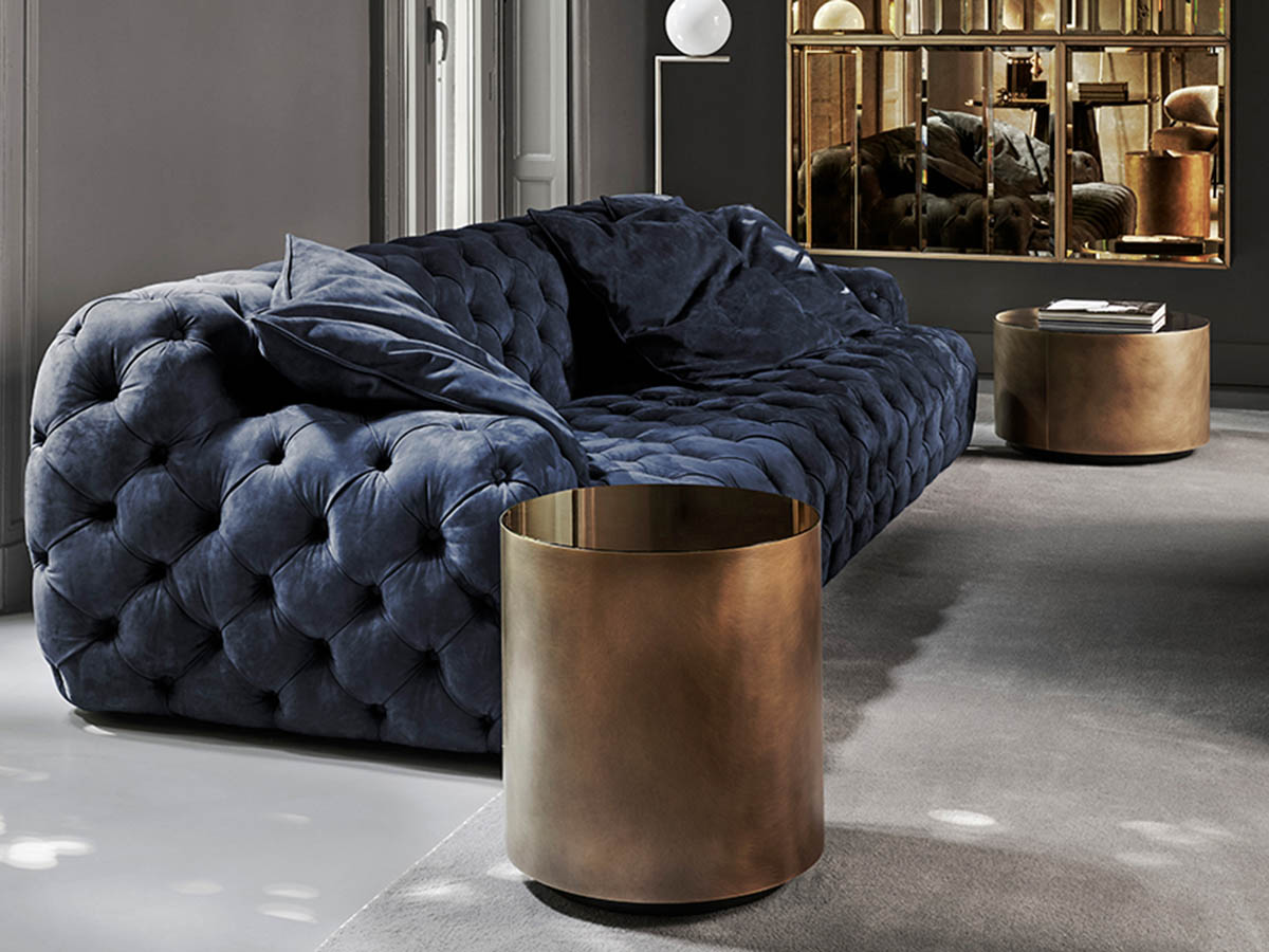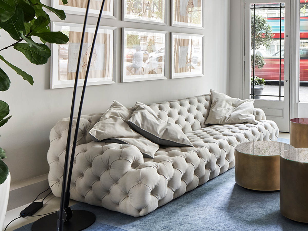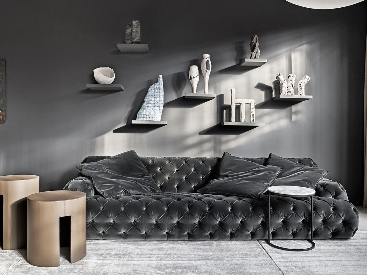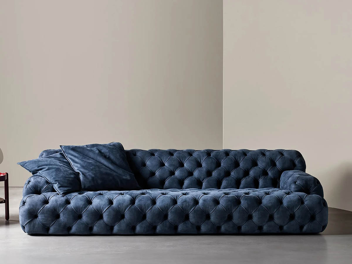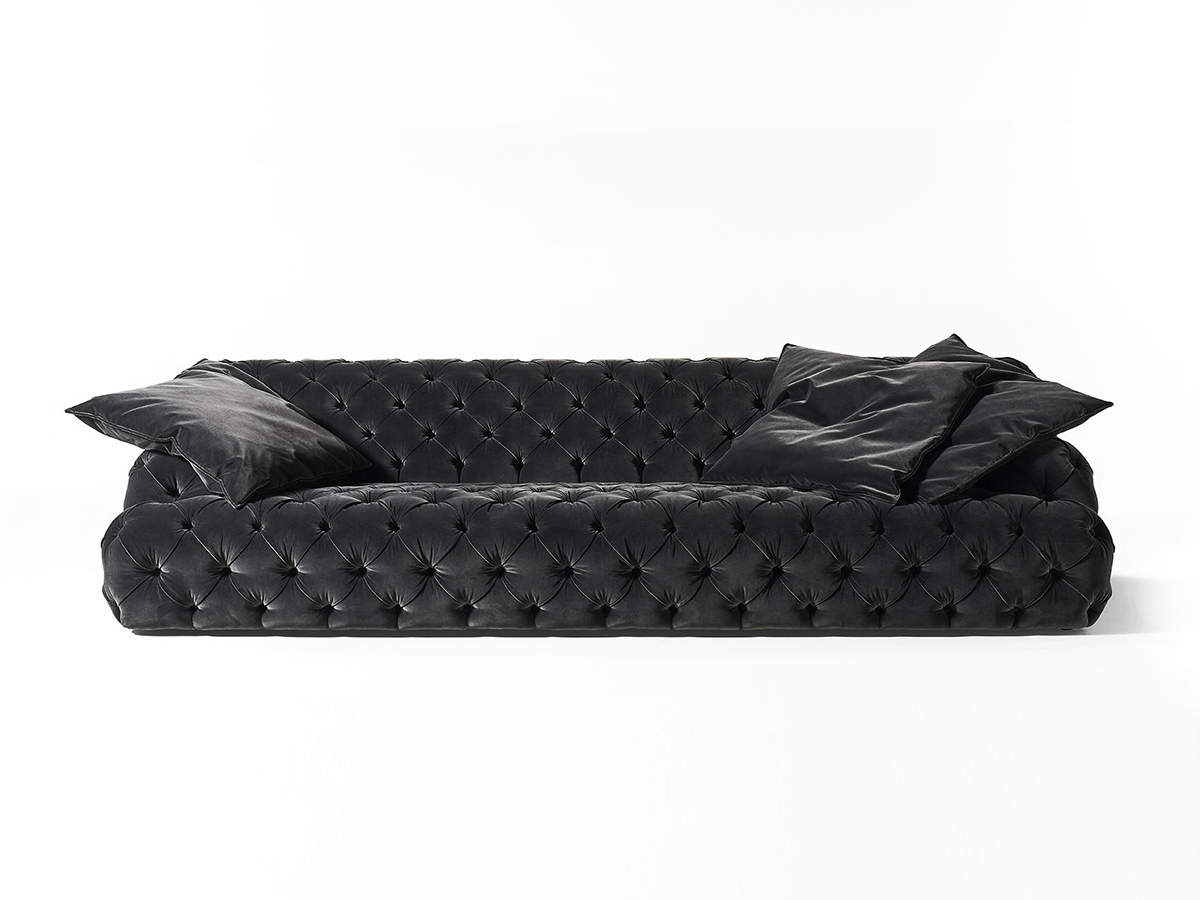 Norton Capitonné è un divano che rende omaggio al tradizionale divano Chesterfield del quale riprende la lavorazione in capitonné presente sia sulla seduta che sui braccioli e lo schienale. I rimandi classici si fermano però qui in quanto Norton non rispecchia le proporzioni originali ma le rivisita in chiave più moderna e accattivante, aggiungendovi anche dei preziosi cuscini e un pouf opzionale, perfetto per creare composizioni a più dimensioni. La finitura utilizzata può essere pelle o tessuto per adattarsi alle necessità di qualunque ambiente.