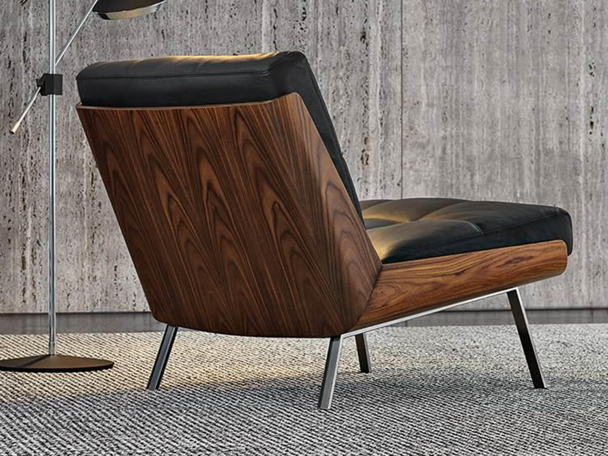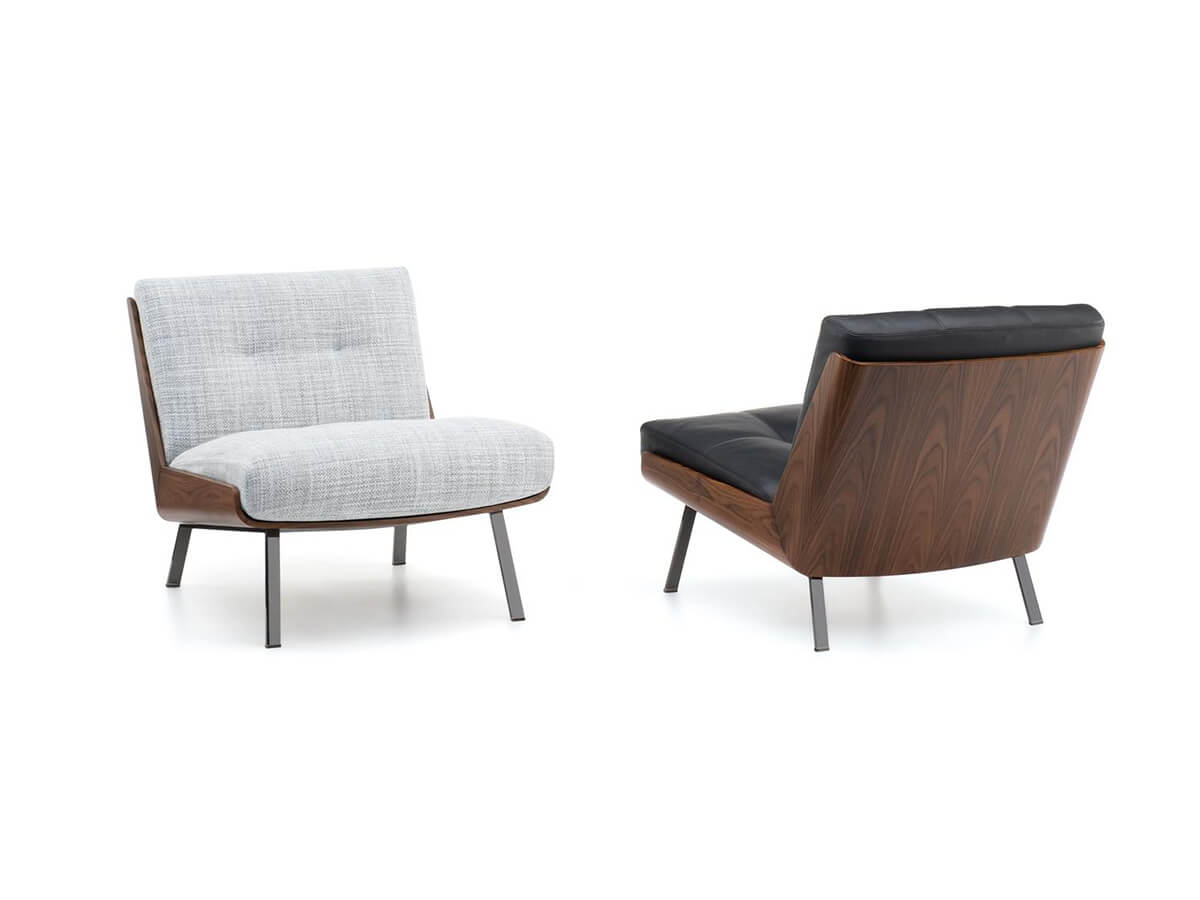 La poltrona Daiki rappresenta un grande omaggio alla passione dell’architetto brasiliano Marcio Kogan allo stile e alla cultura giapponese. La passione per quel mondo si intravede nelle forme nette e modellate al centimetro così da incastrarsi in un armonioso tutt’uno privo di sbavi o eccedenze. La famiglia di poltrone Daiki si caratterizza per una seduta ampia e profonda, correlata o meno da braccioli e poggiapiedi opzionale. La scocca curvata si compone di due elementi a 45° inclinati così da migliore ulteriormente il comfort della seduta. La cuscinatura si innesta perfettamente in questa sede, presentando una trapuntatura con impunture nella versione con rivestimento in pelle.