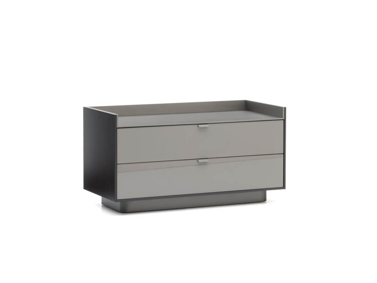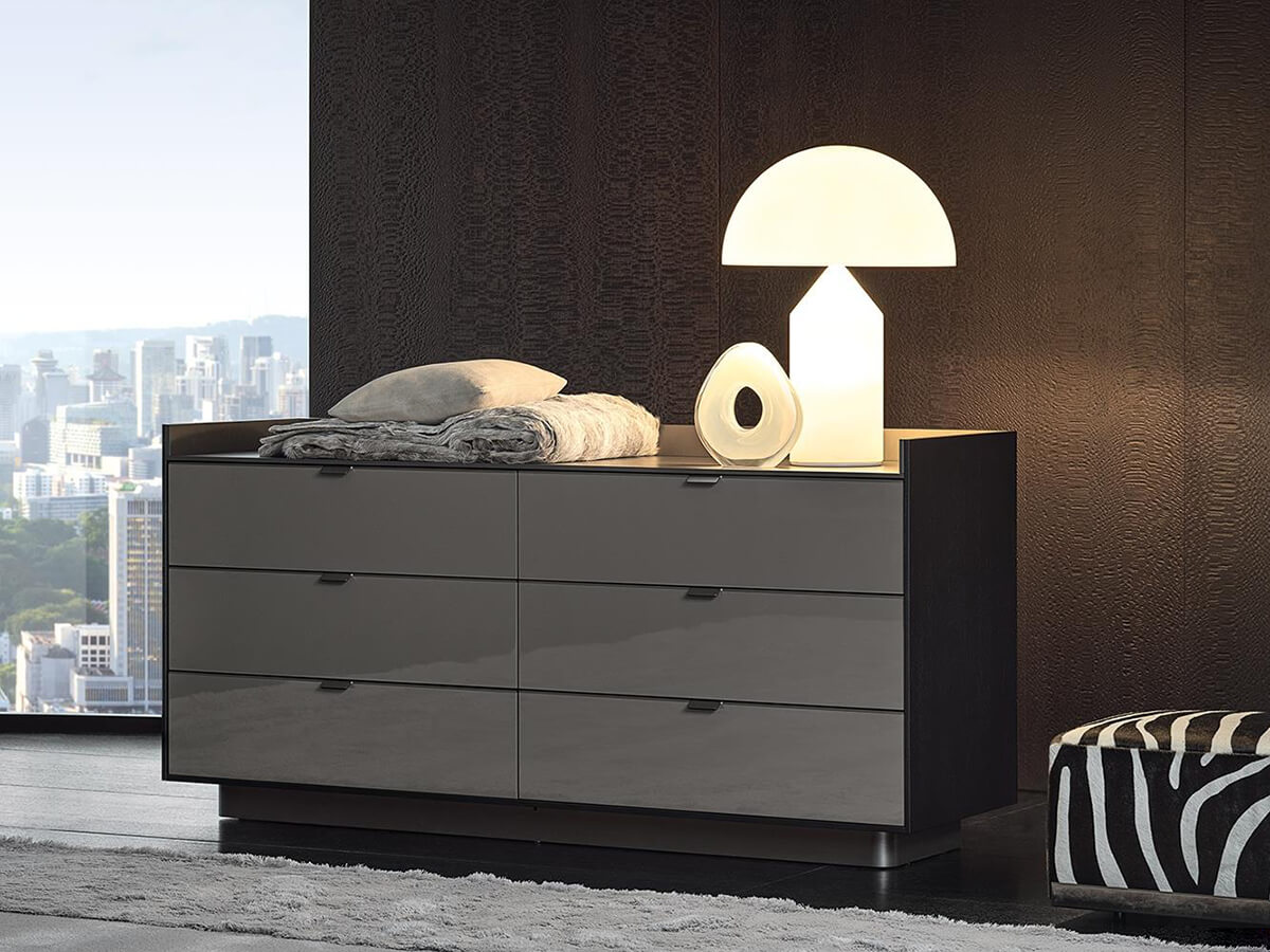 La linea di contenitori Darren comprende una serie di proposte per la zona giorno e per la zona notte, spaziando da comò a comodini e settimanali, per comprendere una vasta gamma di varianti per dimensioni e destinazioni d’uso. Le proposte sono molteplici, ognuna dominata dall’eleganza e maestria artigianale Minotti nel dar vita a pezzi unici nel loro genere, capaci di connotare in ogni ambiente per personalità e presenza scenica. La semplicità formale del contenitore Darren si articola in un corpo centrale in essenza di frassino chiuso su tre lati e foderato in lastre di alluminio satinato appoggiato su una base con medesima finitura. Le ante laccate si aprono grazie a una maniglia ricavata dalla fascia che rifinisce il loro bordo superiore.