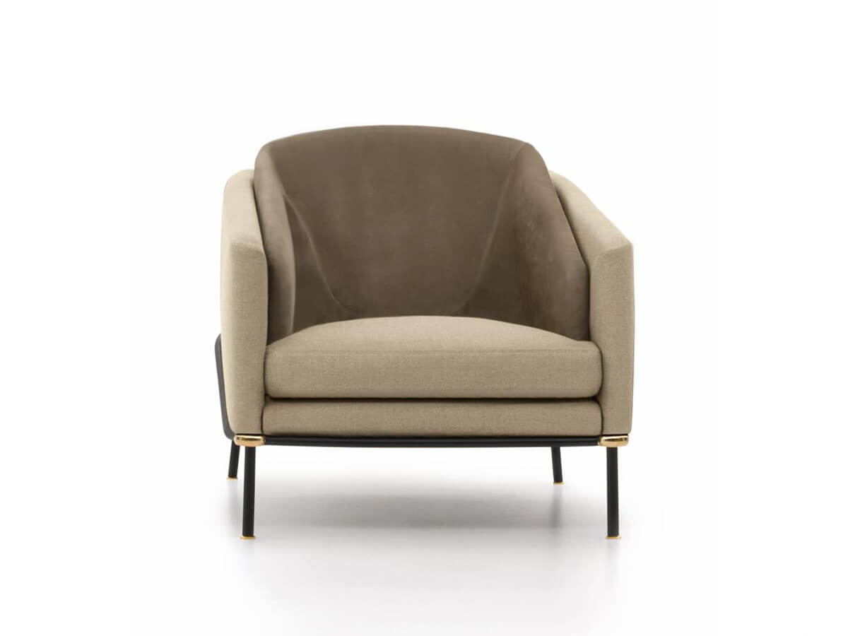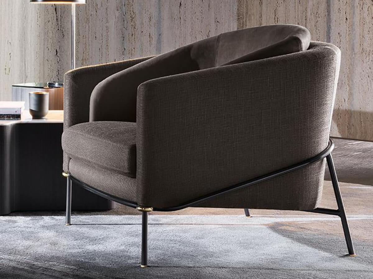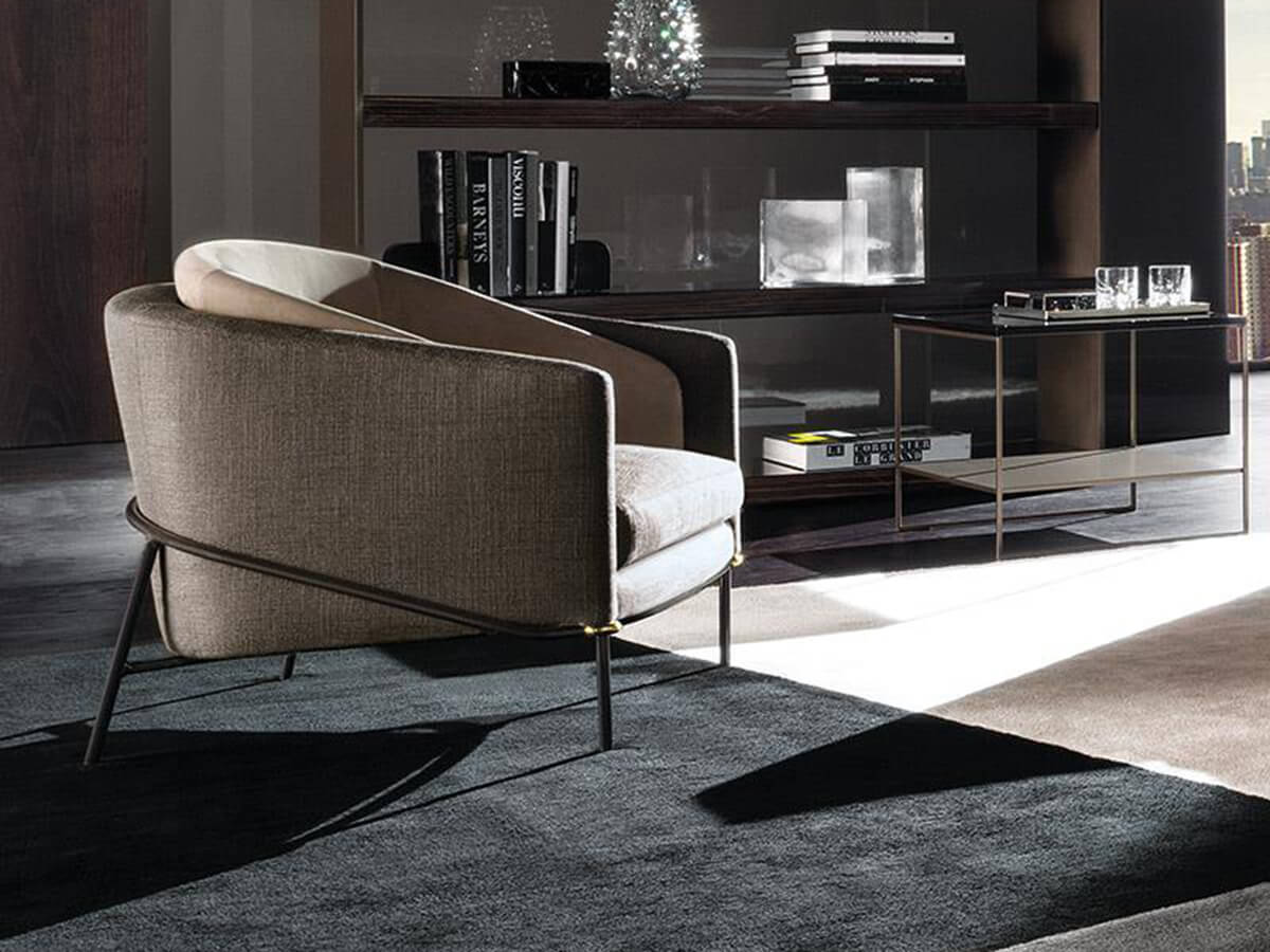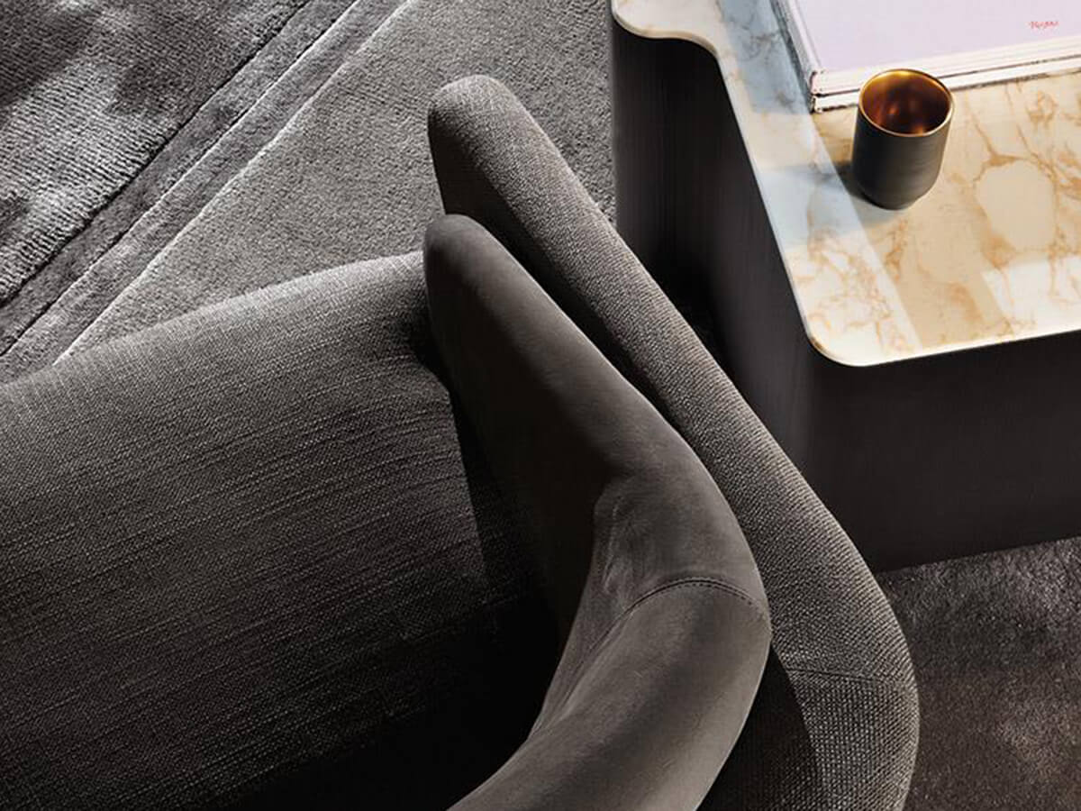 Fil Noir è la poltrona disegnata da Christophe Delcourt e prodotta da Minotti per l’arredo di spazi living di grande finezza estetica. Il Filo è qui il tema conduttore non solo del nome, ma anche della struttura stessa di questo imbottito; un elemento che ne disegna interamente la silhouette e la sostiene al contempo, abbracciando tanto la seduta quanto lo schienale e i braccioli in un tutt’uno superbamente modellato. Il rigore del tubo metallico verniciato si attenua grazie alla scelta di Minotti di inserire anelli metallici a giunzione in prossimità degli angoli. Lo schienale avvolgente in schiuma poliuretanica garantisce massimo comfort per il corpo, ulteriormente incrementato dall’ampio cuscino interno.