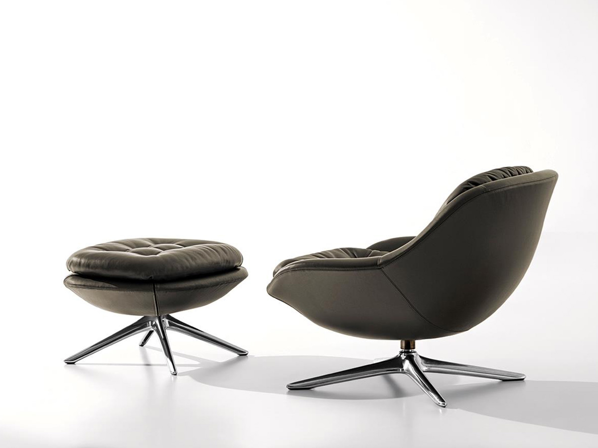 Dalla collaborazione con GamFratesi nasce Kendall, una poltrona avvolgente che unisce la compattezza di una scocca interna alla morbidezza della cuscinatura interna. Kendall poggia su una base girevole a quattro razze in alluminio e si presenta come un solido guscio nel quale alloggiare un cuscino e un materassino impreziosito da impunture tipiche dello stile Minotti. La bellezza dell’insieme si accosta anche all’estrema comodità in quanto Kendall vuole esplicitamente creare uno spazio di puro relax per il corpo, ovunque si decida di inserirla. Minotti la rende disponibile con l’aggiunta di un poggiapiedi e numerose finiture.