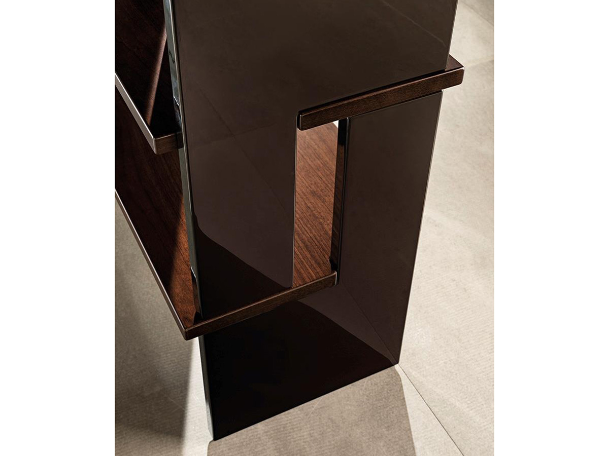 Zoe è una libreria che unisce rigore geometrico a una raffinata sapienza estetica, dando vita a un oggetto che ben si accorda alle esigenze di spazi living, trovando tuttavia posto anche in studi e home office dove si senta il bisogno di un tocco di design. Zoe è un prodotto dal gusto anni ’70, declinato in un linguaggio contemporaneo in un gioco di strutture a più livelli, perfette per creare un vero e proprio sistema modulare. I materiali utilizzati e le finiture scelte sono stati selezionati per creare un gioco di incastri di estrema bellezza, utile ma soprattutto bello esteticamente così da accrescere il valore della struttura nel suo complesso. L’alternarsi di spazi pieni e vuoti rende il tutto più leggero e flessibile, facilmente collocabile.