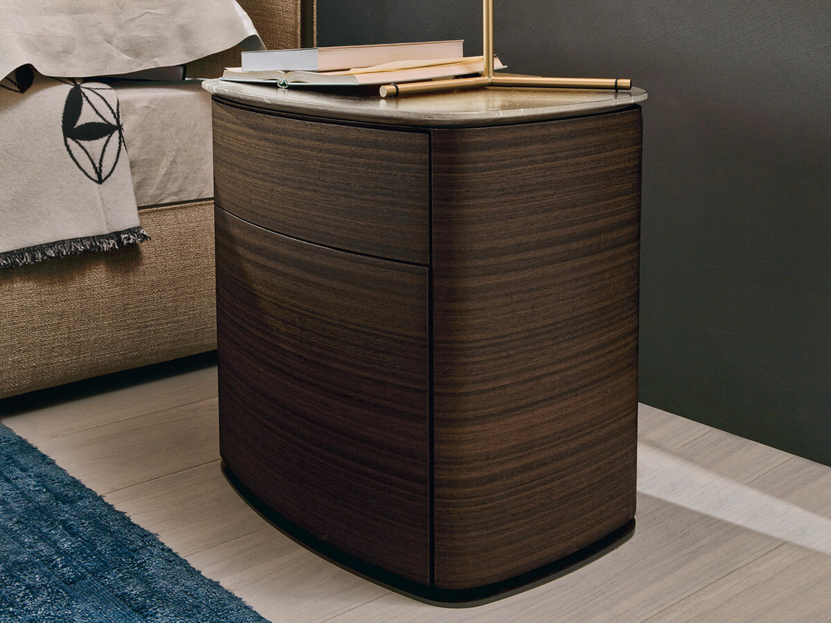 Elemento immancabile nello spazio notte, il comodino è da sempre rappresentante di comodità e familiarità per coloro che vivono la camera da letto come luogo di comfort e relax dopo le fatiche quotidiane. 4040 incarna questo spirito grazie alle sue forme generose, ideale coronamento dell’altrettanto generosa offerta di complementi e mobili Molteni&C per la camera da letto. Struttura e cassetti, in essenza, appoggiano su un basamento metallico. Le apertura possono essere a pressione mentre il top può essere alternativamente in essenza o marmo, a seconda del gusto e dello stile scelto per la casa. Il design di Dante Bonuccelli trova qui degno coronamento sfruttando al meglio le possibilità offerte dal legno.