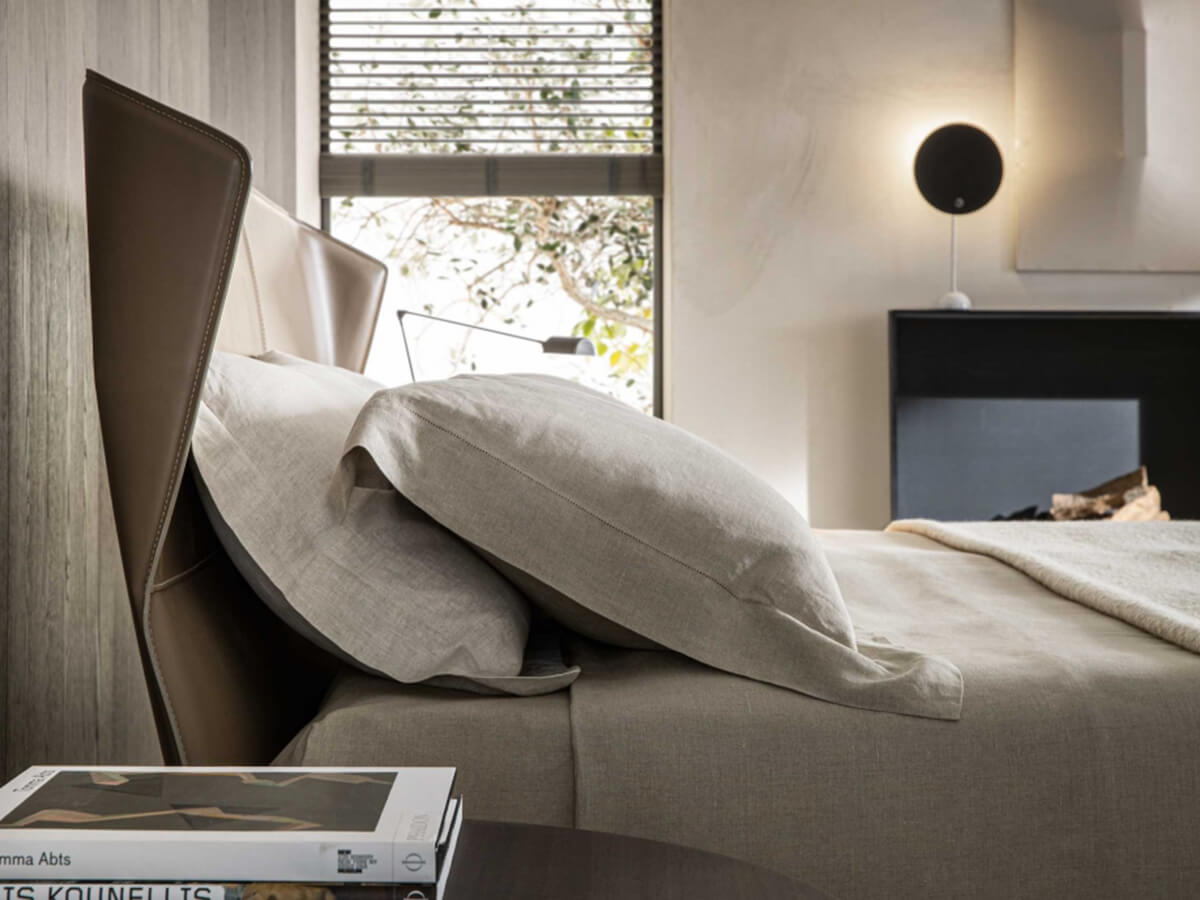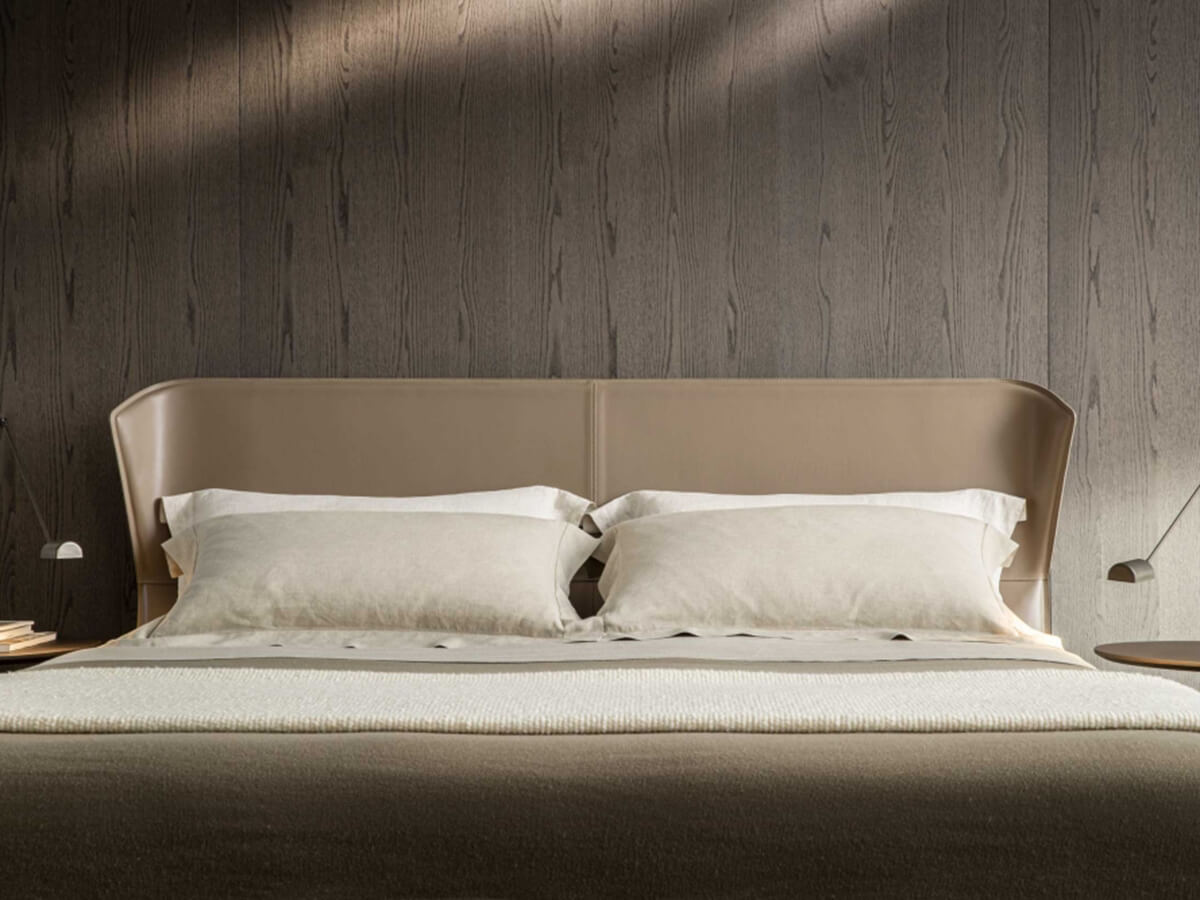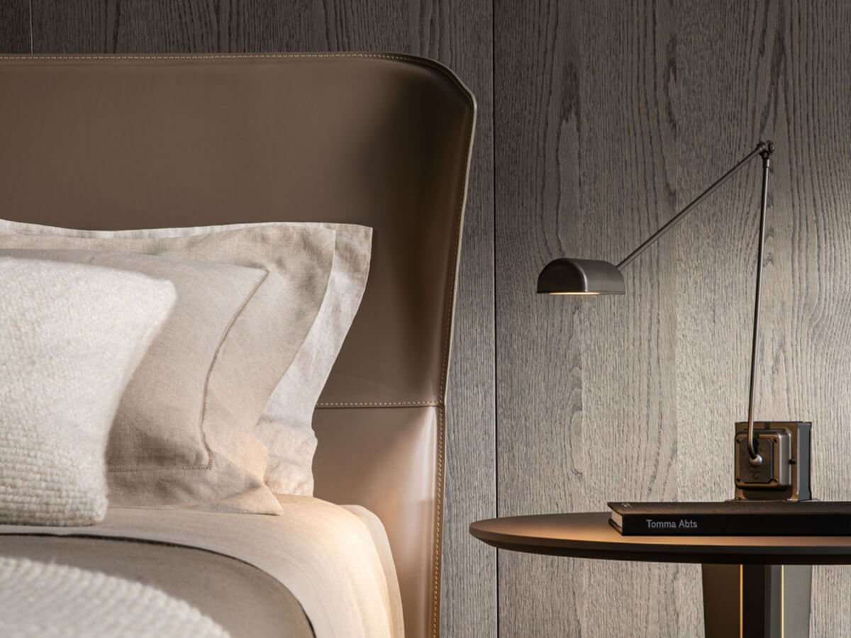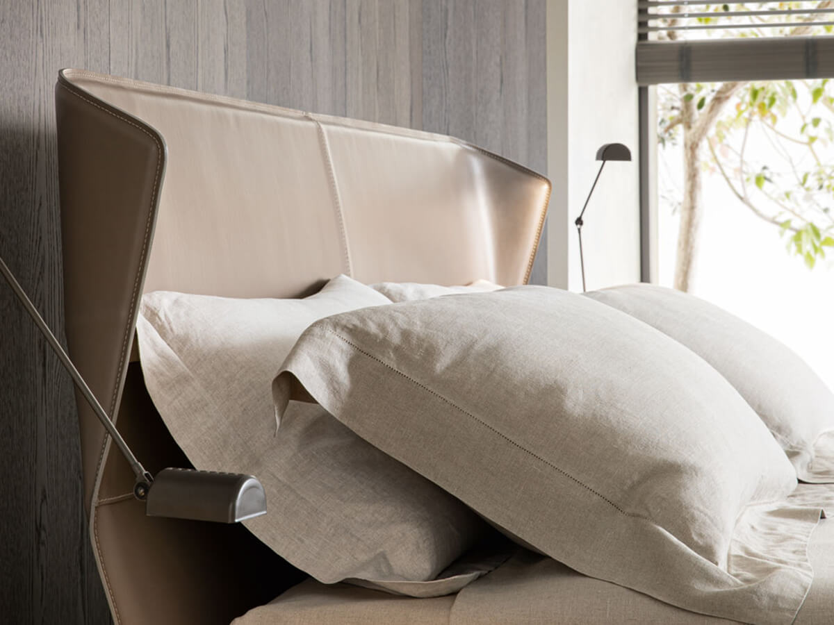 Un elemento d’arredo di grande finezza estetica, capace di arricchire l’ambiente della camera da letto con il suo design di grande effetto. Azul rappresenta un modo di arredare puro e attento ai particolari, dove la scelta dei materiali riveste un ruolo principale al fine di creare un prodotto di qualità. Ogni particolare è stato studiato con cura per creare linee delicate e nette capaci di trasmettere un coinvolgente fascino e suggestione difficilmente eguagliabili. Un progetto di grande personalità contraddistinto dalla testata creata da due fogli di cuoi rigenerato cuciti o in rivestimento in pelle, frutto di lavorazioni raffinate che arricchiscono la struttura nel suo complesso. *Caratteristiche tecniche: rivestimento in cuoio rigenerato completamente sfoderabile