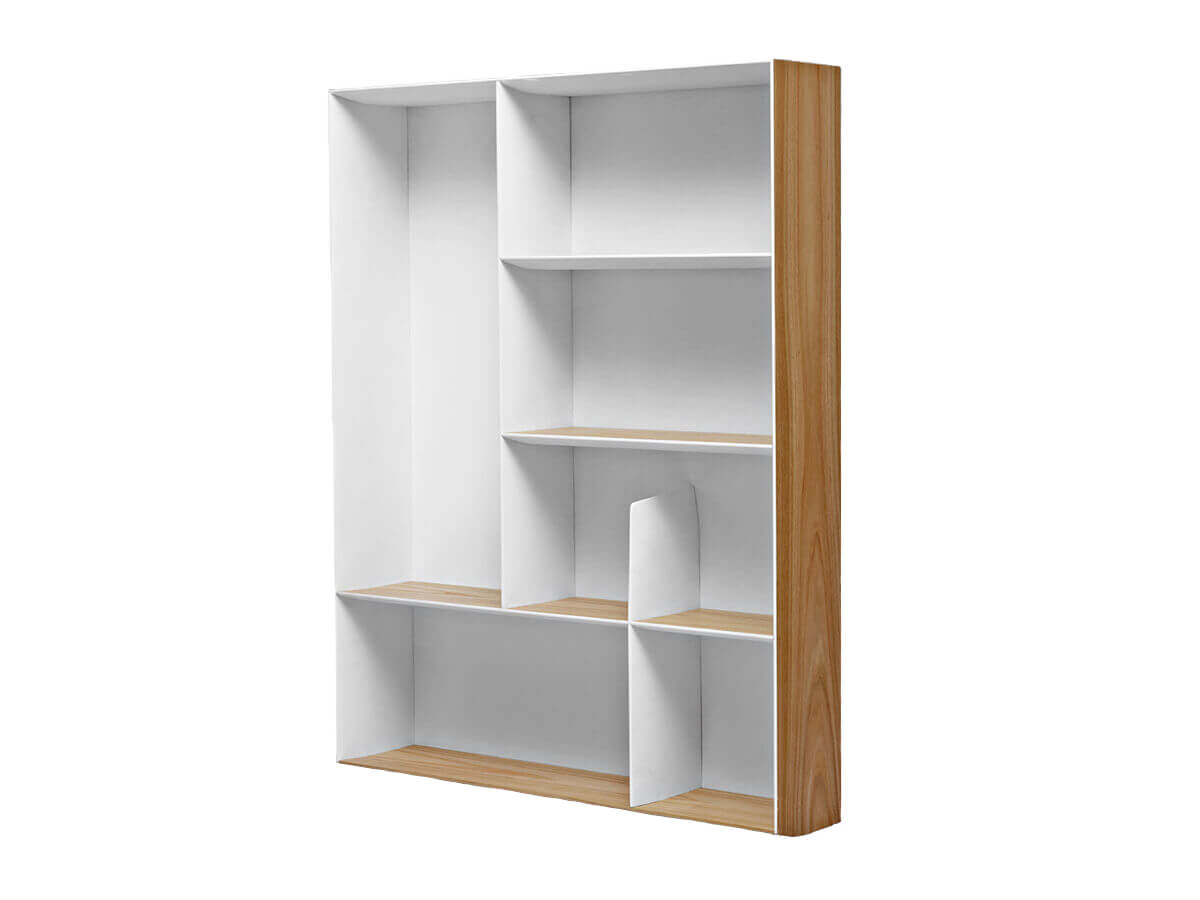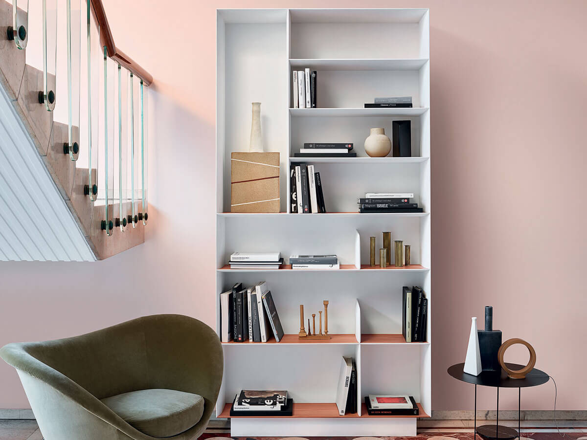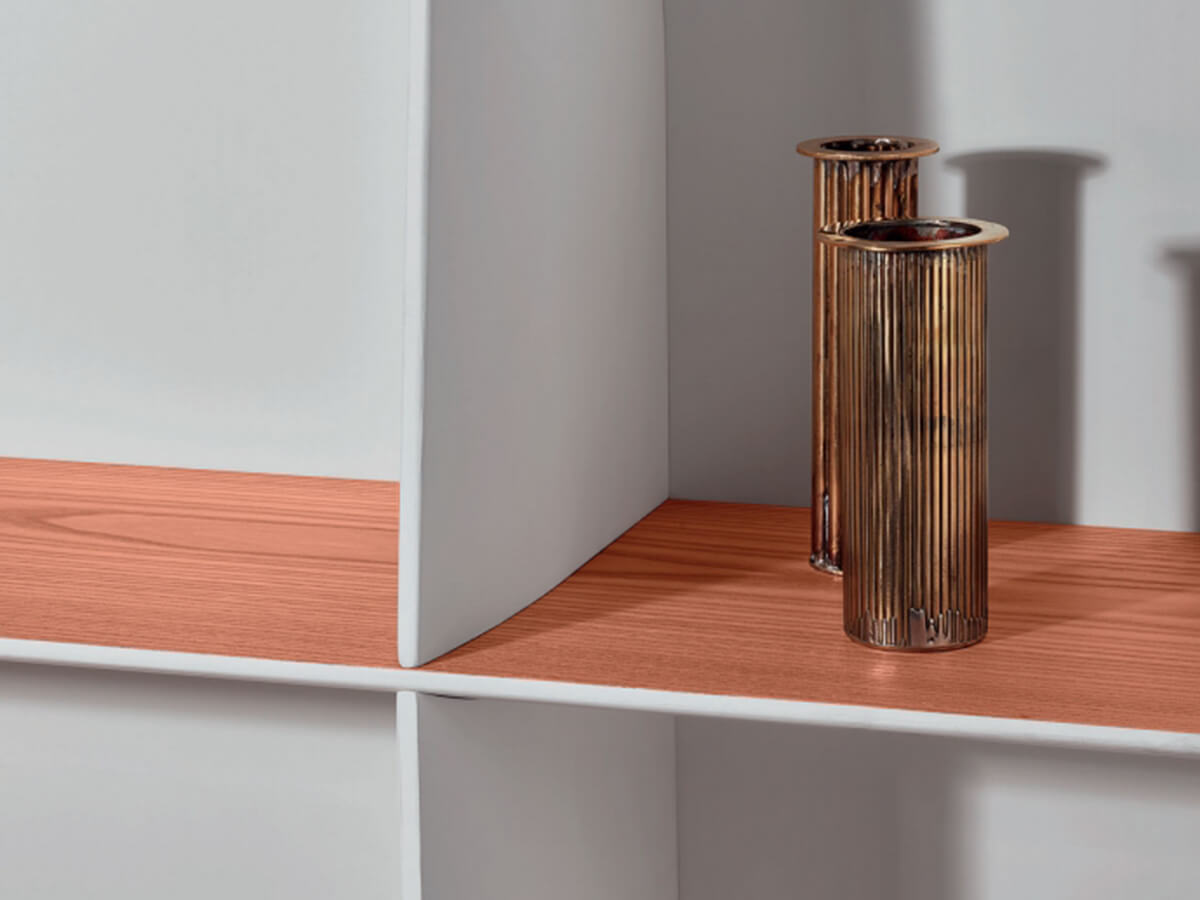 Un elemento di design dal gusto raffinato e contemporaneo, capace di esprimere eleganza e originalità in un’unica soluzione. Progettata nel 1956 da Gio Ponti, la libreria D.357.1 fa parte degli arredi dell’abitazione privata del designer in via Dezza a Milano. Fin dalla sua creazione si è distinta per la purezza delle forme unita all’originale capacità di fondere materiali e colori diversi in un tutt’uno di grande effetto. Ideale per spazi living, si inserisce perfettamente all’interno di studi, camere e spazi pubblici. I multistrati sagomati con rivestimento olmo, in parte con finitura trasparente naturale, in parte verniciato a mano in colore bianco, creano un elegante gioco di spessori, ideale coronamento dello stile senza tempo del suo creatore.