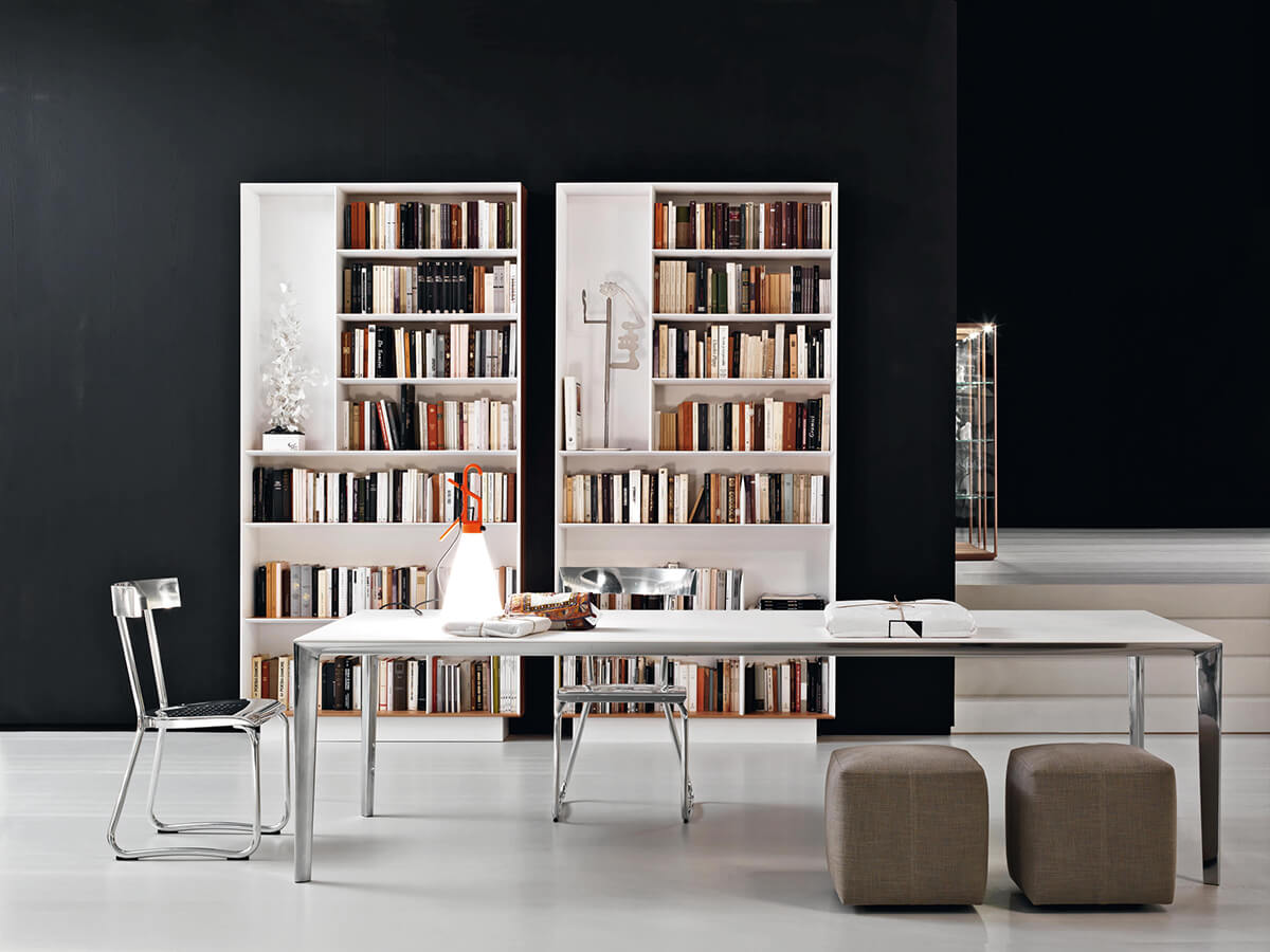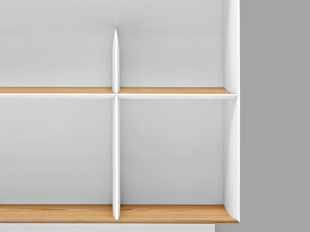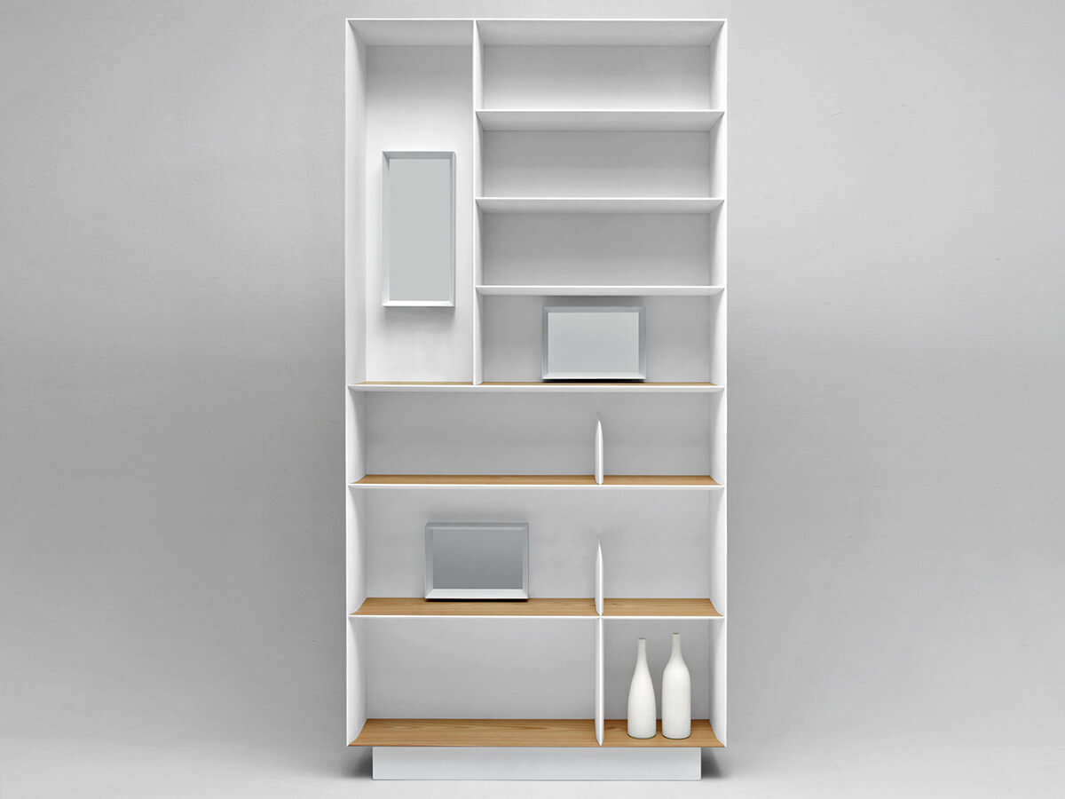 Un elemento di design dal gusto raffinato e contemporaneo, capace di esprimere eleganza e originalità in un’unica soluzione. Progettata nel 1956 da Gio Ponti, la libreria D.357.1 fa parte degli arredi dell’abitazione privata del designer in via Dezza a Milano. Fin dalla sua creazione si è distinta per la purezza delle forme unita all’originale capacità di fondere materiali e colori diversi in un tutt’uno di grande effetto. Ideale per spazi living, si inserisce perfettamente all’interno di studi, camere e spazi pubblici. I multistrati sagomati con rivestimento olmo, in parte con finitura trasparente naturale, in parte verniciato a mano in colore bianco, creano un elegante gioco di spessori, ideale coronamento dello stile senza tempo del suo creatore.