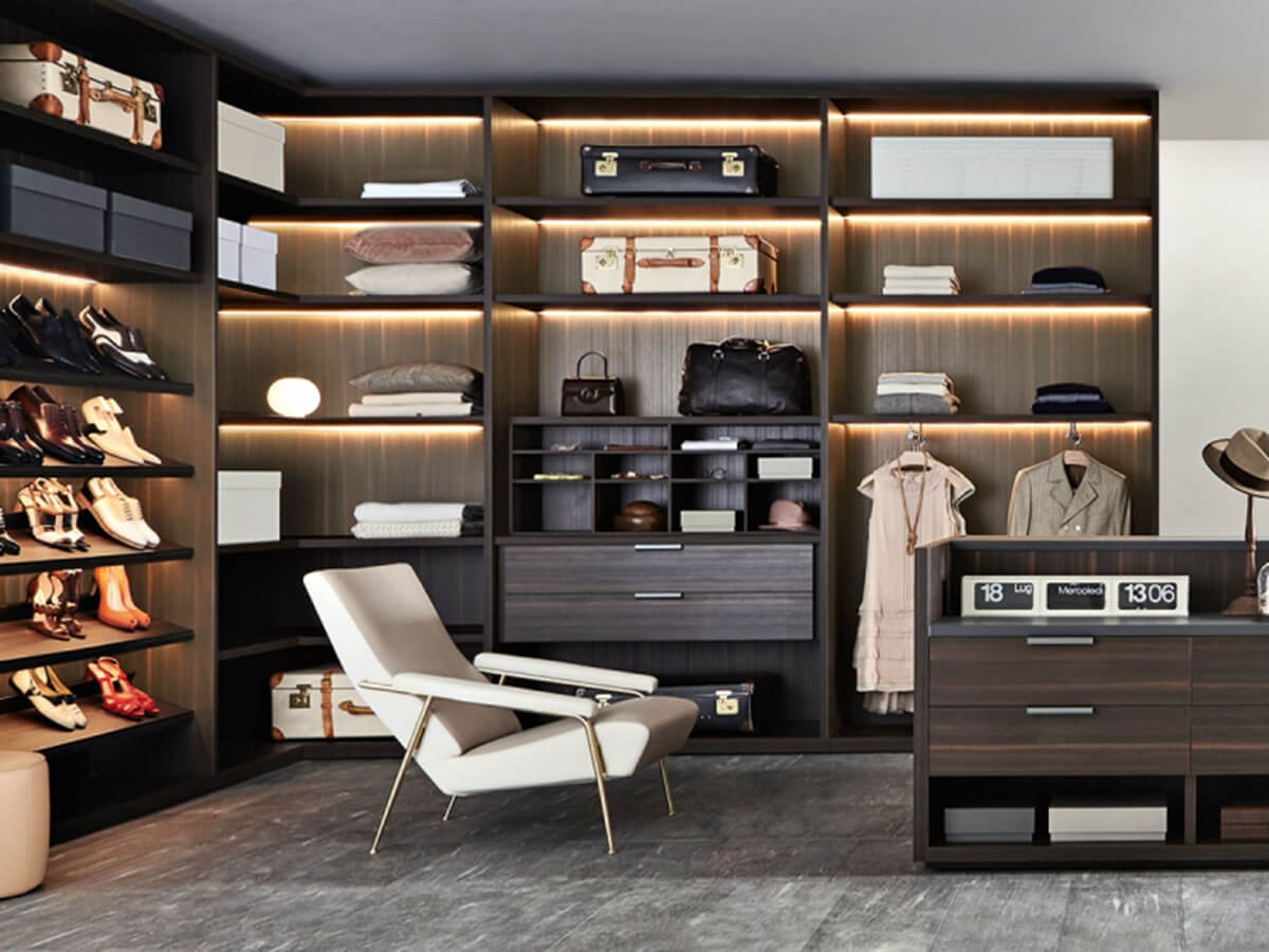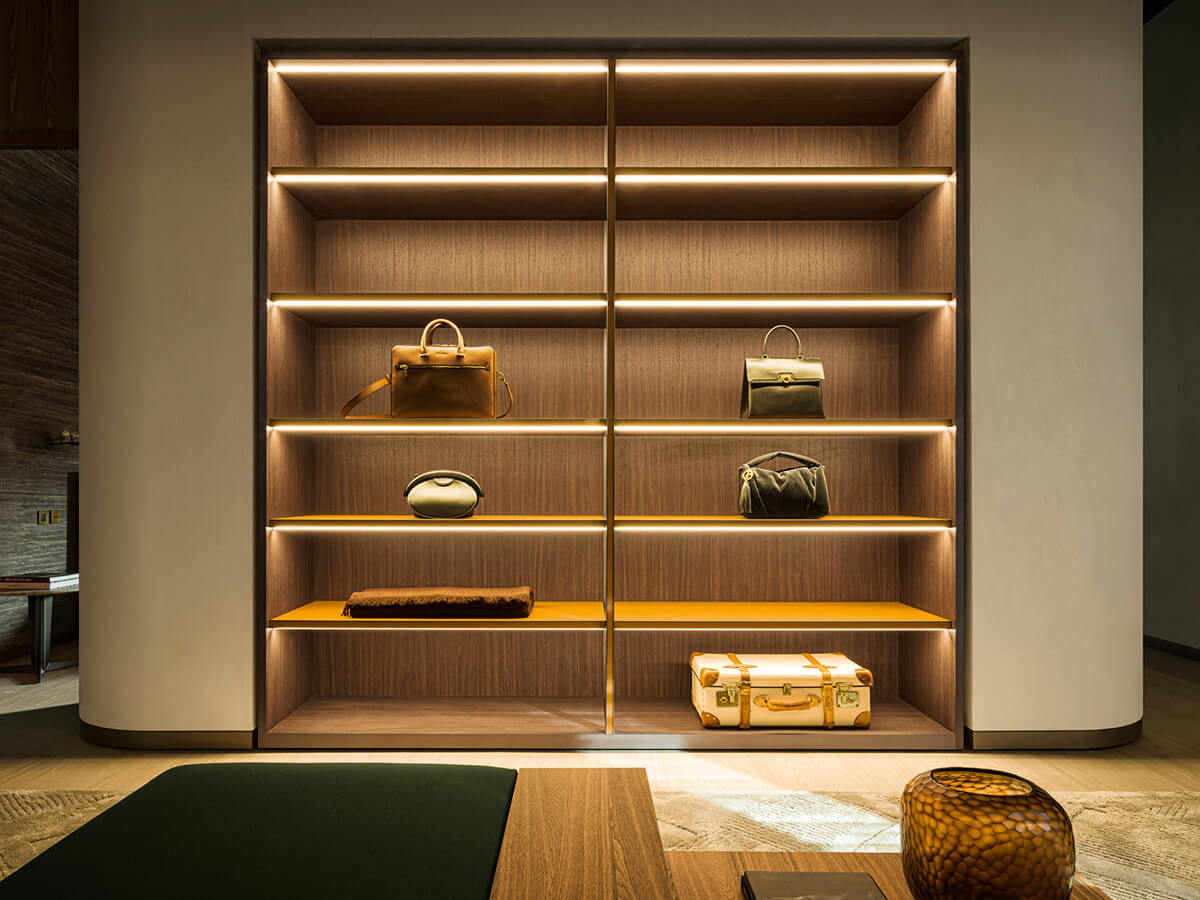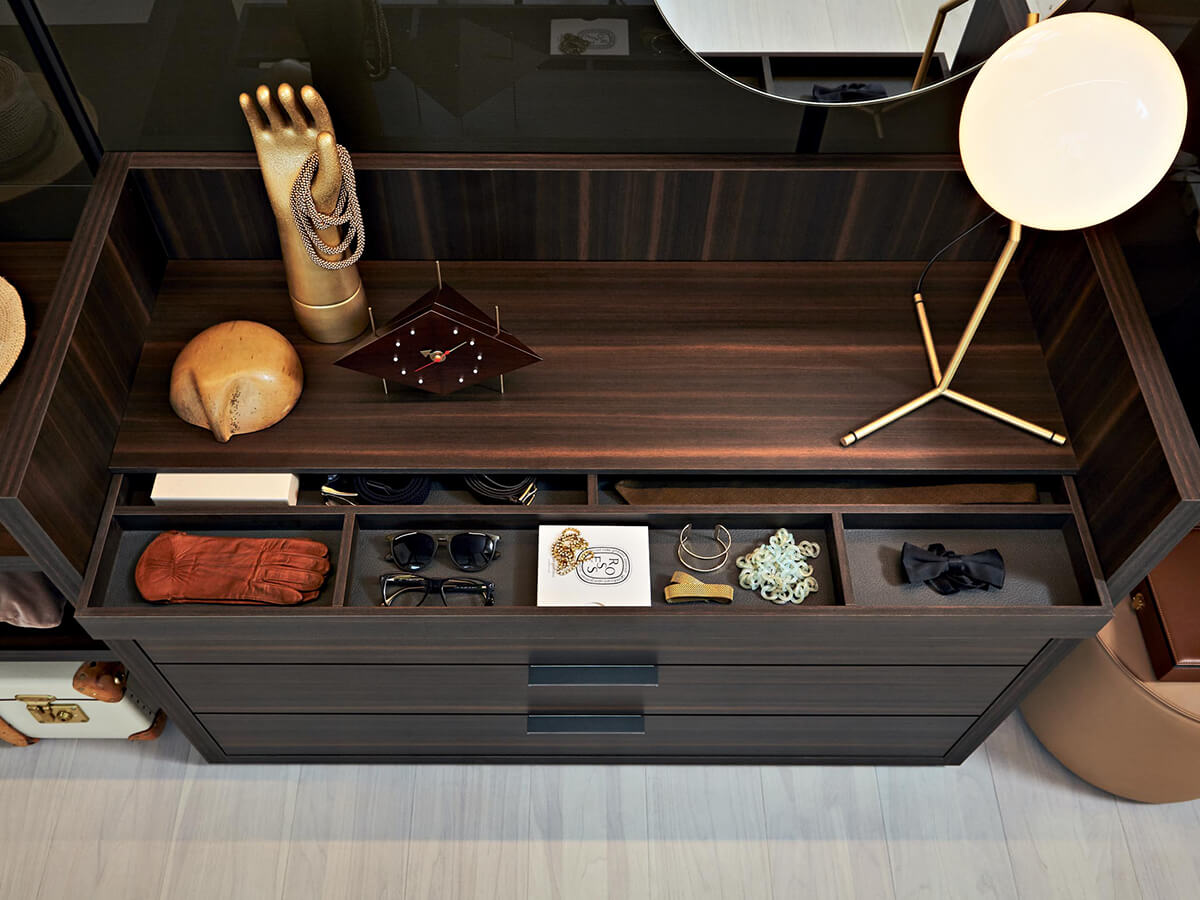 La cabina armadio Gliss Master declina in una sofisticata versione senza ante l’apprezzata collezione Gliss Master, fiore all’occhiello della proposta Molteni & C. per la zona notte: un sistema di armadi che copre la fascia alta di mercato, proponendo finiture pregiate e dettagli costruttivi ricercati, dedicati agli intenditori del design che anche per la zona notte non si vogliono accontentare delle proposte più semplici. Adatta sia per soluzioni lineari che angolari, la cabina Gliss Master dà grande rilievo all’ampia scelta di attrezzature interne, permettendo una personalizzazione capillare: dalle cassettiere sospese ai ripiani portascarpe, dai vassoi estraibili ai vani portaoggetti e cassetti attrezzati con divisori, e molto altro ancora.