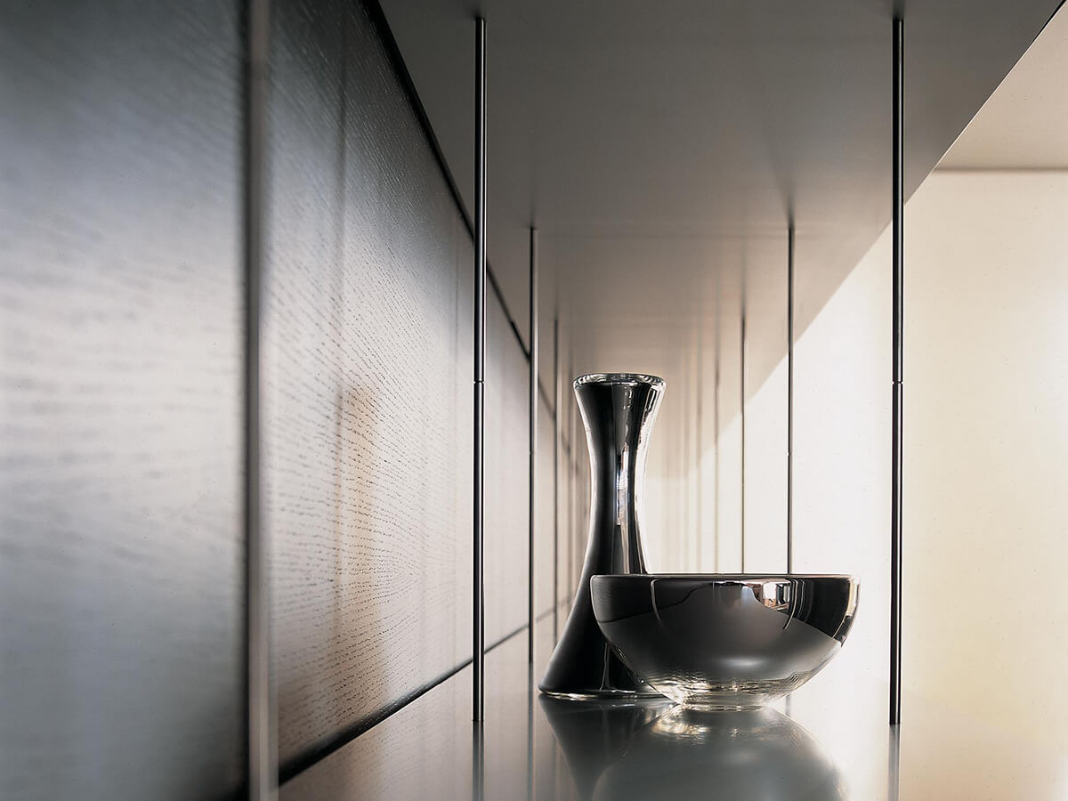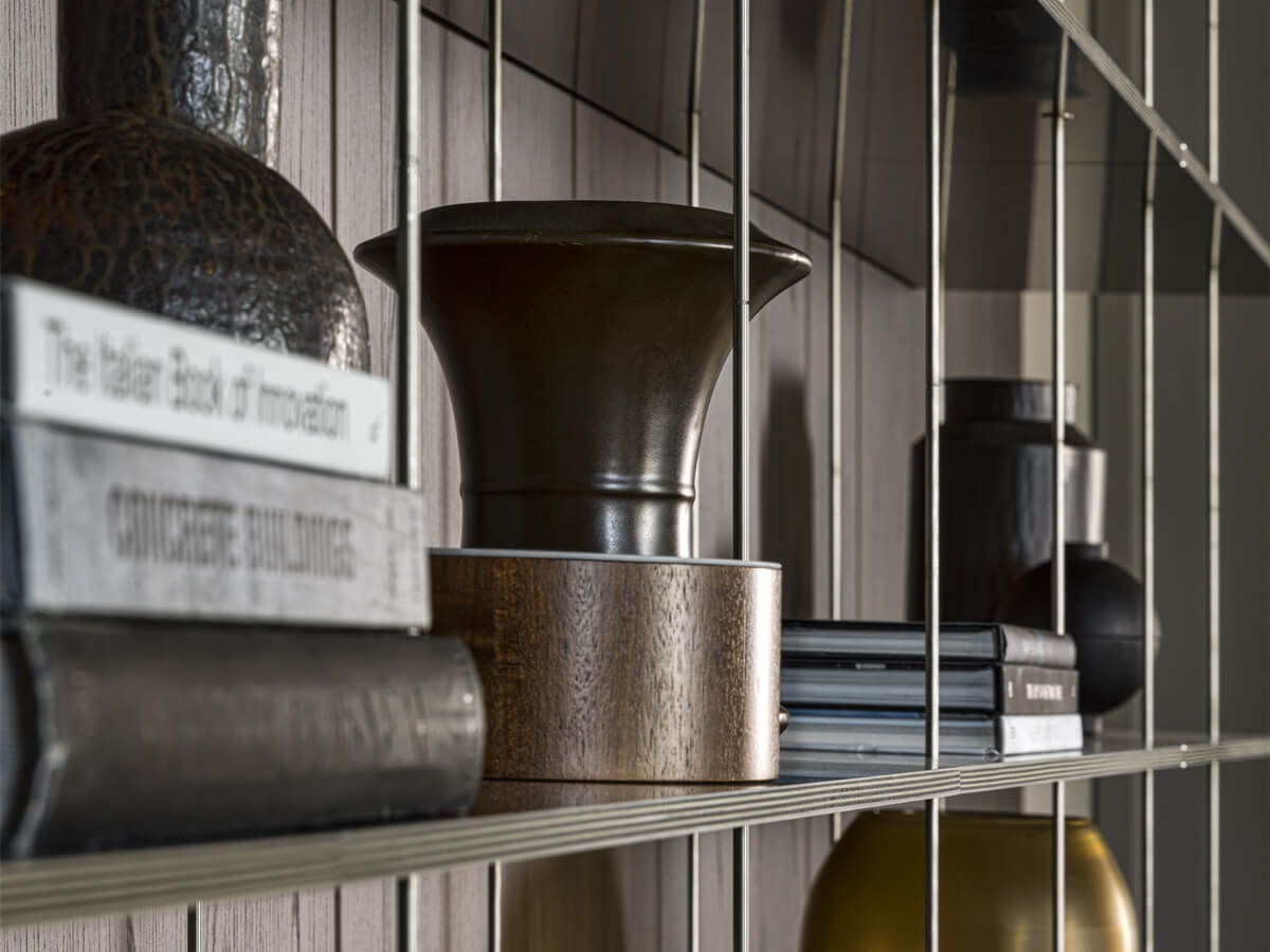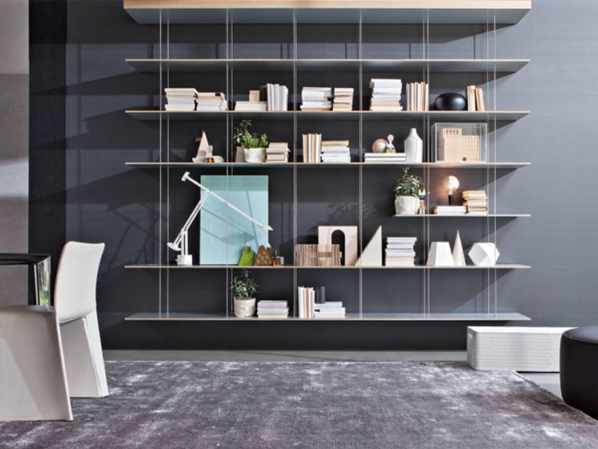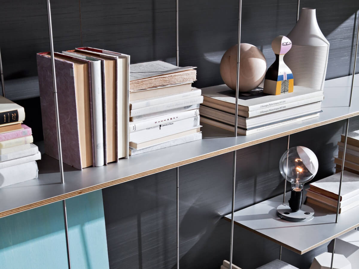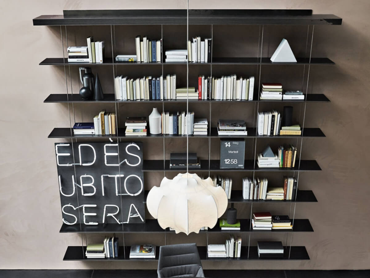 La libreria Graduate di Molteni & C. è firmata dall’archistar francese Jean Nouvel e rappresenta un vero e proprio esercizio di virtuosismo progettuale: si tratta infatti di una leggerissima libreria sospesa in cui l’intera composizione è sorretta dal ripiano superiore, fissato a muro o a soffitto, al quale si agganciano dei sottili tiranti tecnologicamente avanzatissimi che fungono da sostegno per tutti i ripiani inferiori. L’impressione è quella di una “libreria a cascata”, dal segno misurato ed equilibratissimo, premiata con diversi riconoscimenti internazionali come l’ADI Desogn Index, il Red Dot Design Award e il Design Award of the Federal Republic of Germany.