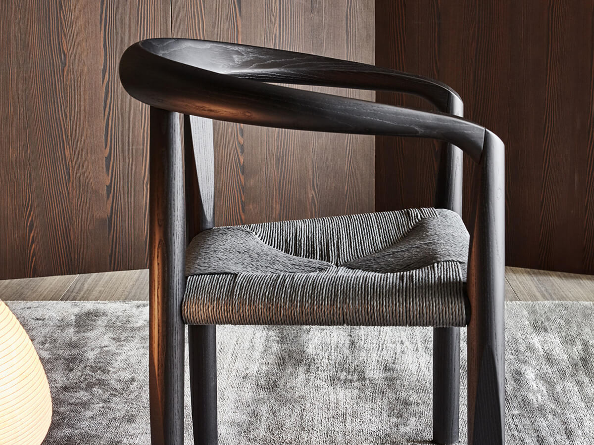Dal genio creativo di Afra e Tobia Scarpa nasce MHC.3.Miss, una seduta incredibilmente elegante ed evocativa, capace di strutturarsi su un continuum di linee morbide che creano ritmi e sintonie. Le gambe sono sottili e leggermente divaricate per favorire stabilità. Quelle anteriori, in particolare, si piegano per trasformarsi prima in braccioli e poi nell’ampio schienale, ritagliato sapientemente per accogliere il corpo e favorire il rilassamento. Le posteriori vi si collegano puntellando la struttura. Il sedile si inserisce tra le linee verticali creando un punto di unione. Questo cuscinetto è imbottito per favorire una sensazione di comfort. Tobia scarpa ha ridisegnato il giunto dei braccioli per renderla più lineare e confortevole.