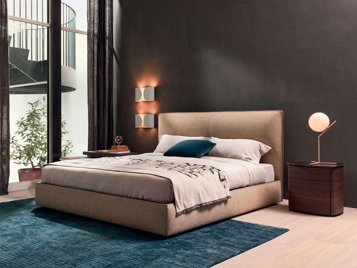 *Prezzo valido per la versione classica senza contenitore per materasso 160x200 cm (non incluso) - rivestimento in tessuto cat. A con bordo in pelle Extra cat. L – rete a doghe inclusa (cod. RLE16 + RF/160).