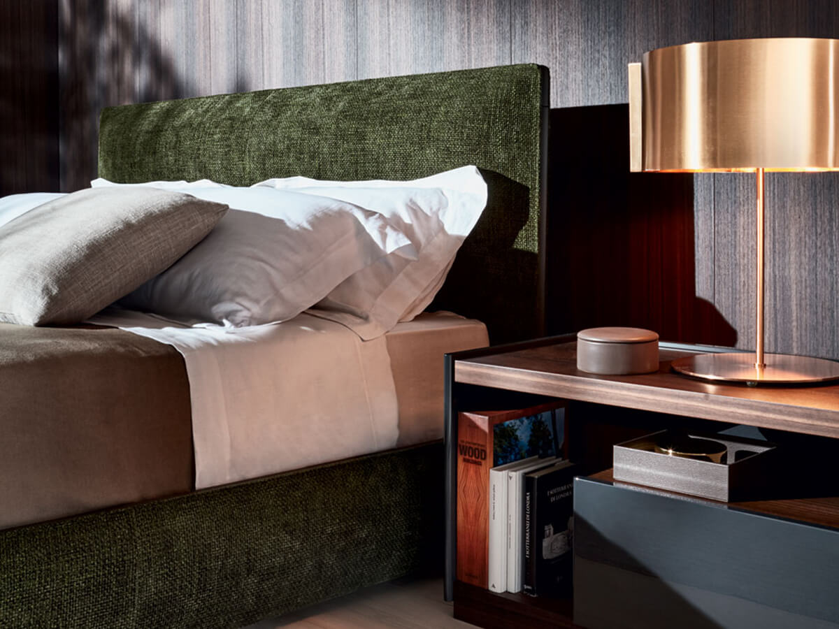 Un letto di grande personalità, capace di spiccare nel panorama di scelte Molteni&C grazie alla sua morbidezza unita al design giovane e moderno unito a materiali naturali, ideale connubio per chi desideri trascorrere piacevoli ore notturne in un ambiente familiare e confezionato su misura. Dal progetto di Vincent Van Duysen, Ribbon si configura in molteplici rivestimenti in tessuto o pelle. La risultante è un modello semplice eppure splendidamente disegnato, ideale per chi desideri arricchire la propria camera da letto con un elemento di spicco. *Caratteristiche tecniche: con rivestimento in tessuto, la finitura del bordo viene realizzata in pelle Extra cat. L; con rivestimento in pelle, la finitura del bordo può essere monocromatica (stessa tipologia/colore pelle) o in pelle Extra cat. L. Le versioni per materassi 160,170 e 180x200cm sono disponibili anche con contenitore