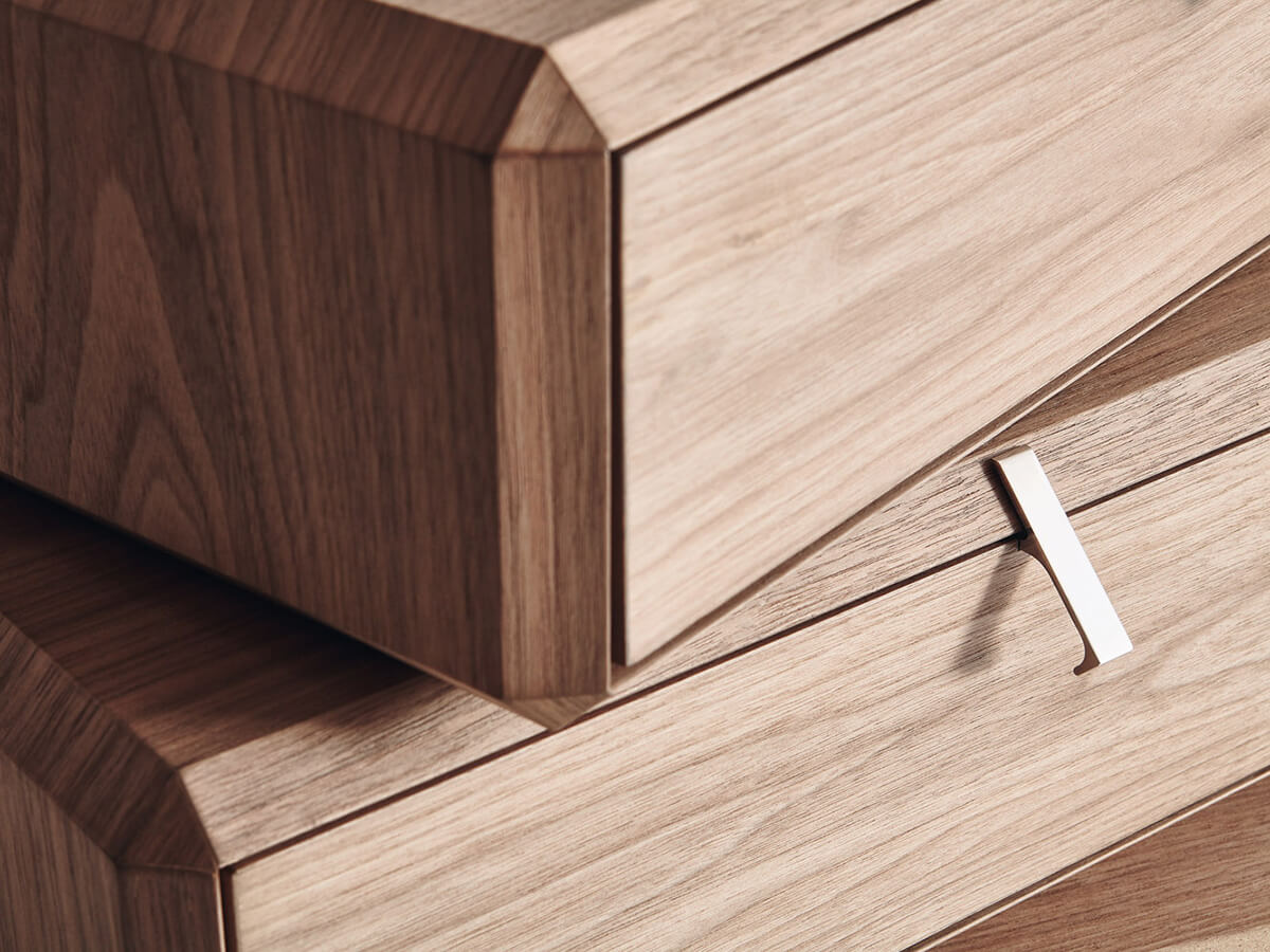 La collezione Teorema si compone di numerosi creazioni volte a offrire una soluzione unica e organica alle richieste più esigenti per l’arredo della casa. Dal gusto di Ron Gilad nascono numerosi contenitori, tavolini e soluzioni uniche che ben si accordano alla zona giorno, pur non trascurando spazi più intimi come quelli della zona notte. Questo mobile nasce come elemento solido e fortemente sfaccettato, capace di conferire personalità grazie alla presenza di finiture di pregio come noce canaletto ed eucalipto intagliati con precisione micrometrica così da creare angoli inaspettati e soluzioni di estrema bellezza. Teorema si presenta con come elemento singolo o composto da più elementi liberamente collocabili così da creare soluzioni personalizzate in qualunque situazione.