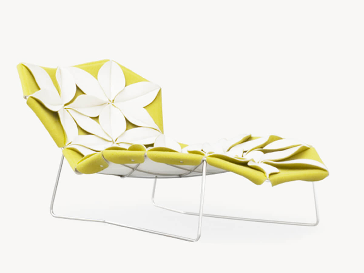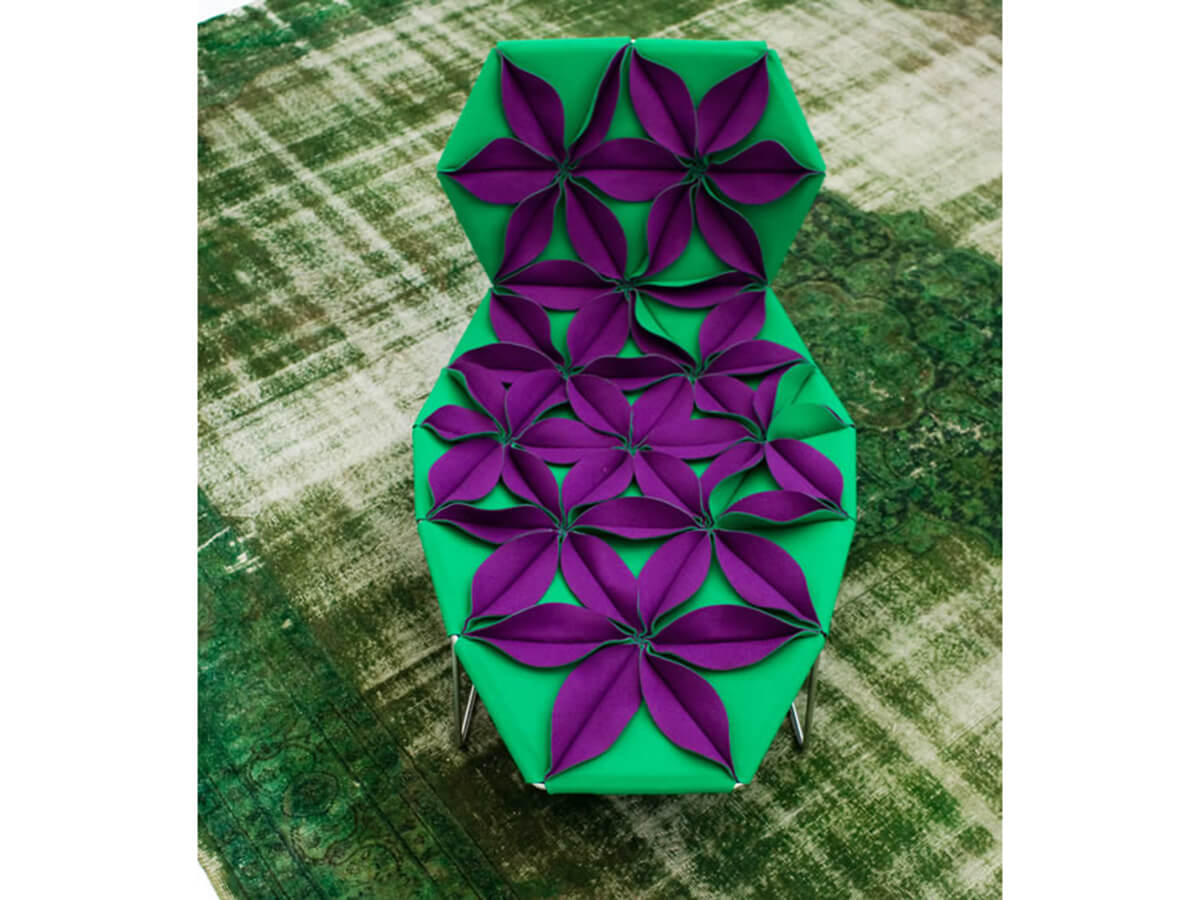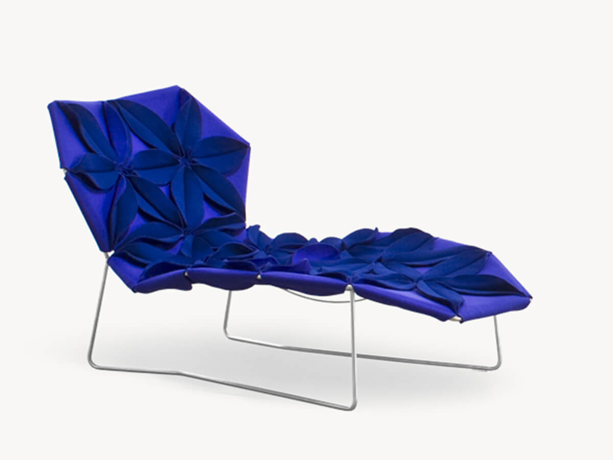 La poltrona Antibodi di Moroso si presenta come una fresca e gioiosa esplosione floreale, un prodotto accattivante e alla moda, frutto della fantasia della designer Patricia Urquiola. La seduta e lo schienale di Antibodi non hanno imbottitura e sono impreziositi da grandi cuciture in rilievo a forma di petali, realizzate in feltro e panno e fissate alla struttura in metallo. La poltrona Antibodi è realizzabile sia con il pattern floreale rivolto verso l’alto, donandole così un aspetto più scenografico e accogliente, sia con le decorazioni tenute verso il basso e sullo schienale, configurazione che valorizza il retro della poltrona e dona alla seduta un più uniforme effetto matelassé. Il prodotto è disponibile anche in versione chaise longue, con un vero e proprio “tappeto floreale” che ne accompagna tutta la superficie di seduta.