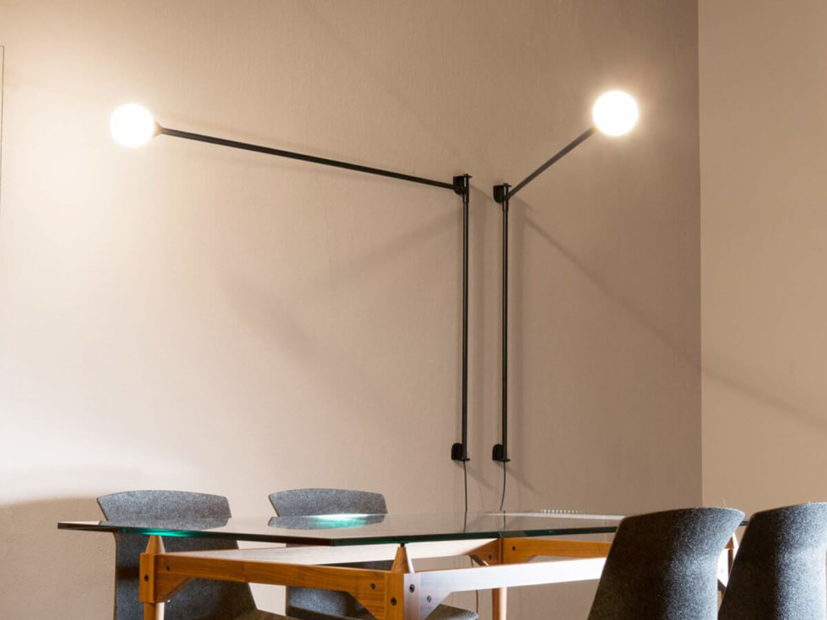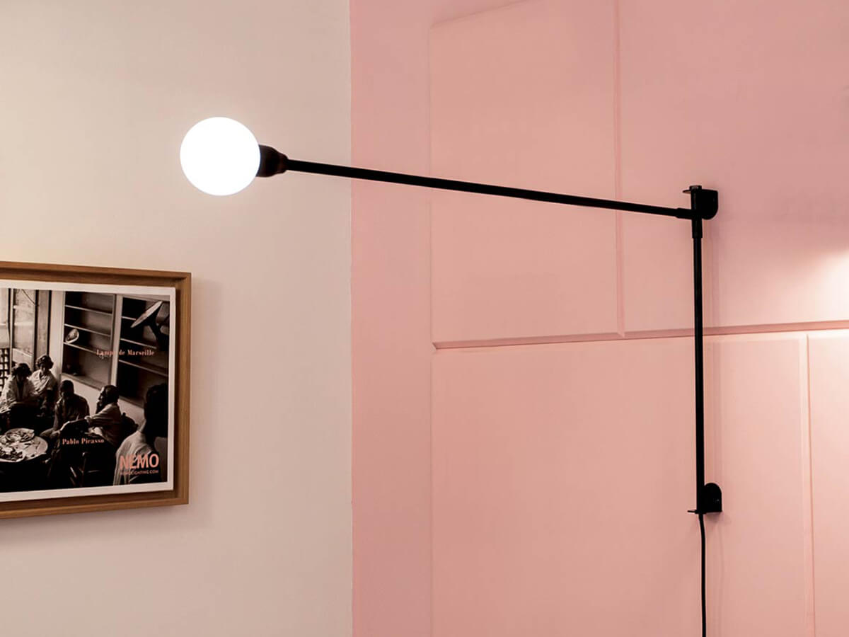 Charlotte Perriand ha tratto dal mondo della nautica l’ispirazione per la lampada a parete Potence Pivotante di Nemo: la sua forma riprende infatti quella del boma, ossia la trave di sostegno della randa nella vela di una barca. Potence Pivotante nasce nel 1938, un periodo nel quale Perriand lavorava a stretto contatto con il designer Jean Prouvé, che oltre dieci anni dopo ne riprenderà le forme per dare vita alla sua lampada più celebre, la Potence, oggi riedita da Vitra. Minimalista e quasi spartana, Potence Pivotante ha la forma di una L inverta, in cui uno dei bracci è fissato lungo la parete mentre l’altro si allunga nello spazio e può ruotare di 180°.